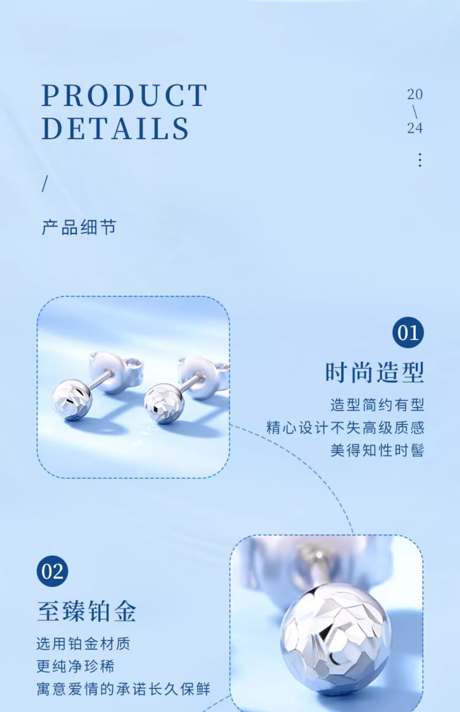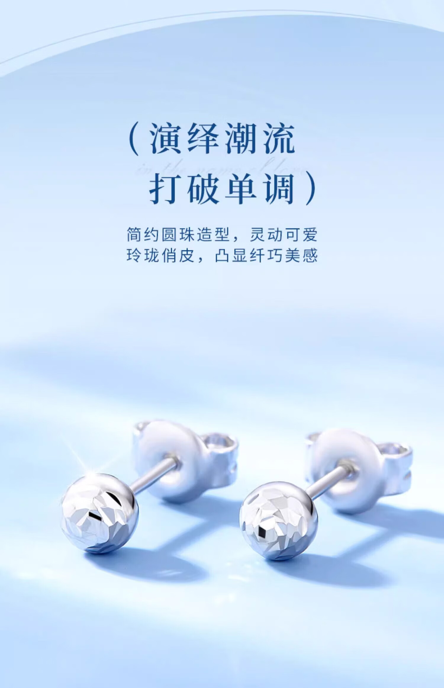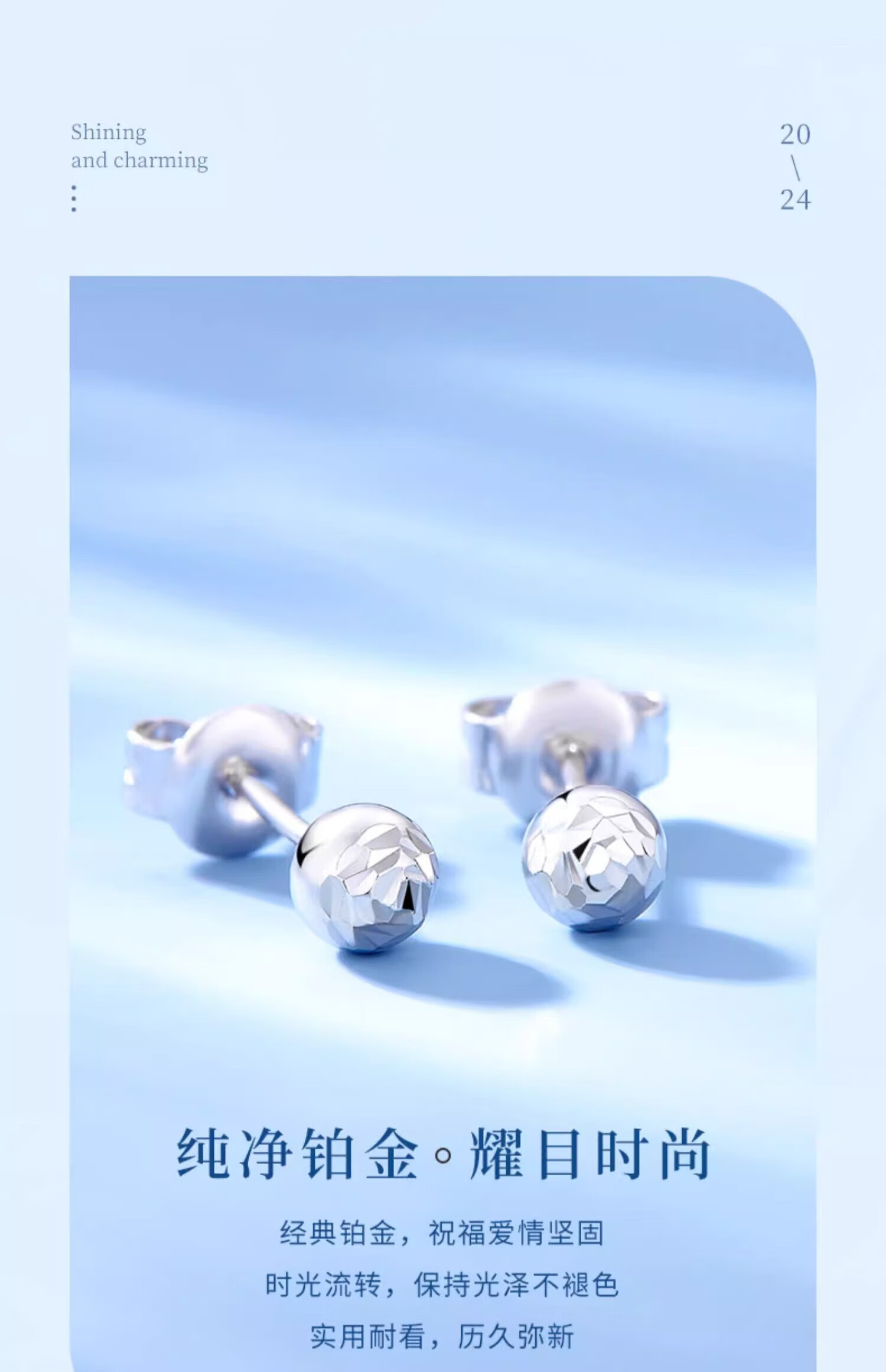 Lao Fengxiang pt950 platinum earrings for women, platinum modern light ball earrings, earrings, Valentine's Day birthday gift for girlfriend, platinum star ball earrings, about 2.2g, brand gift box