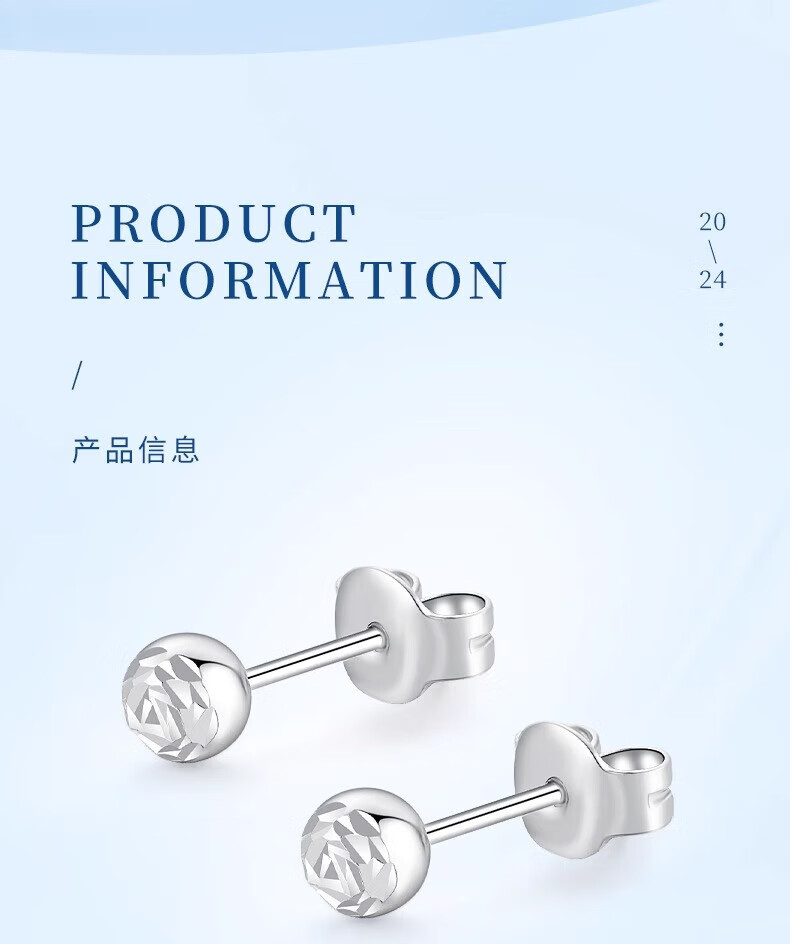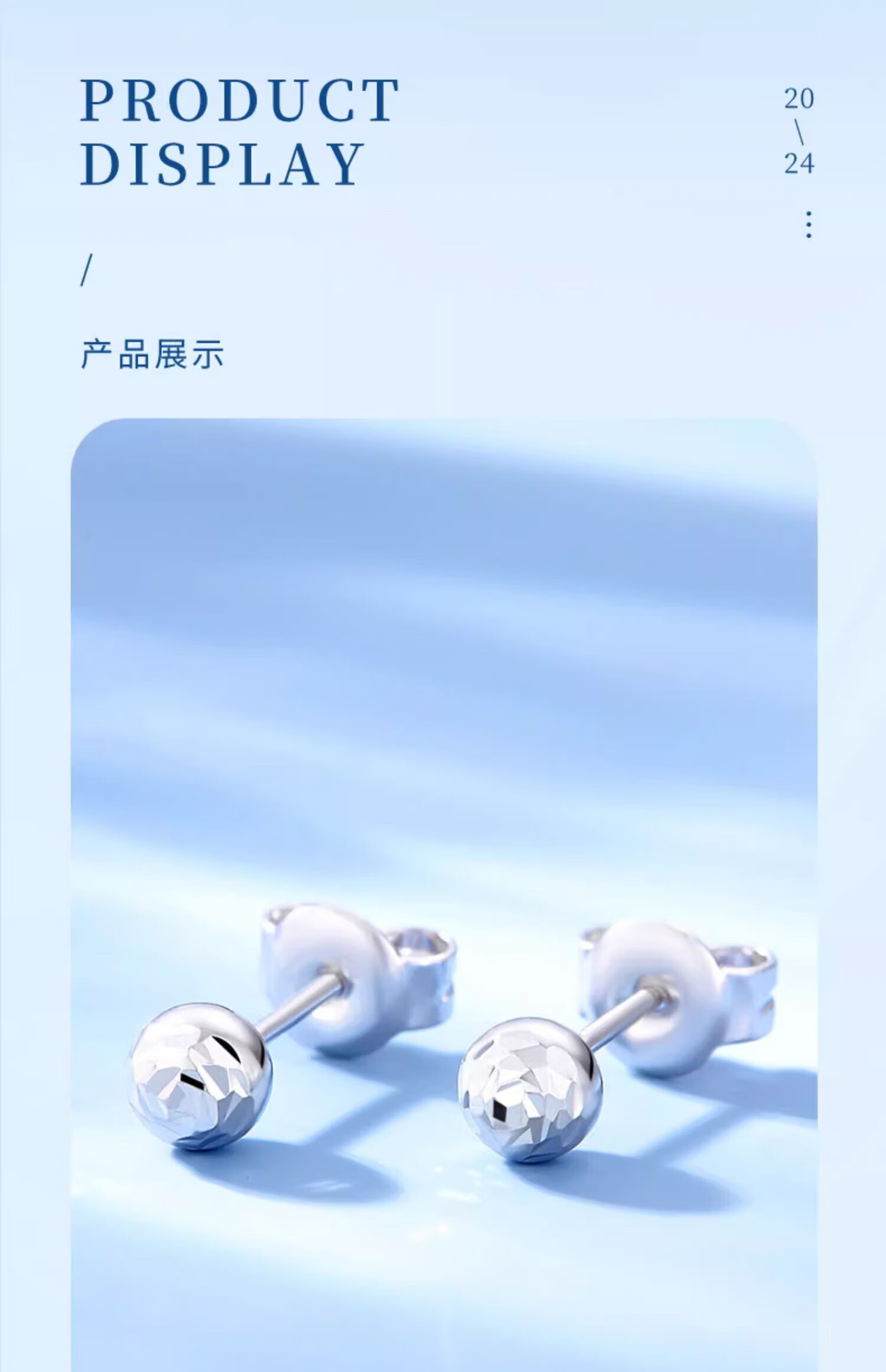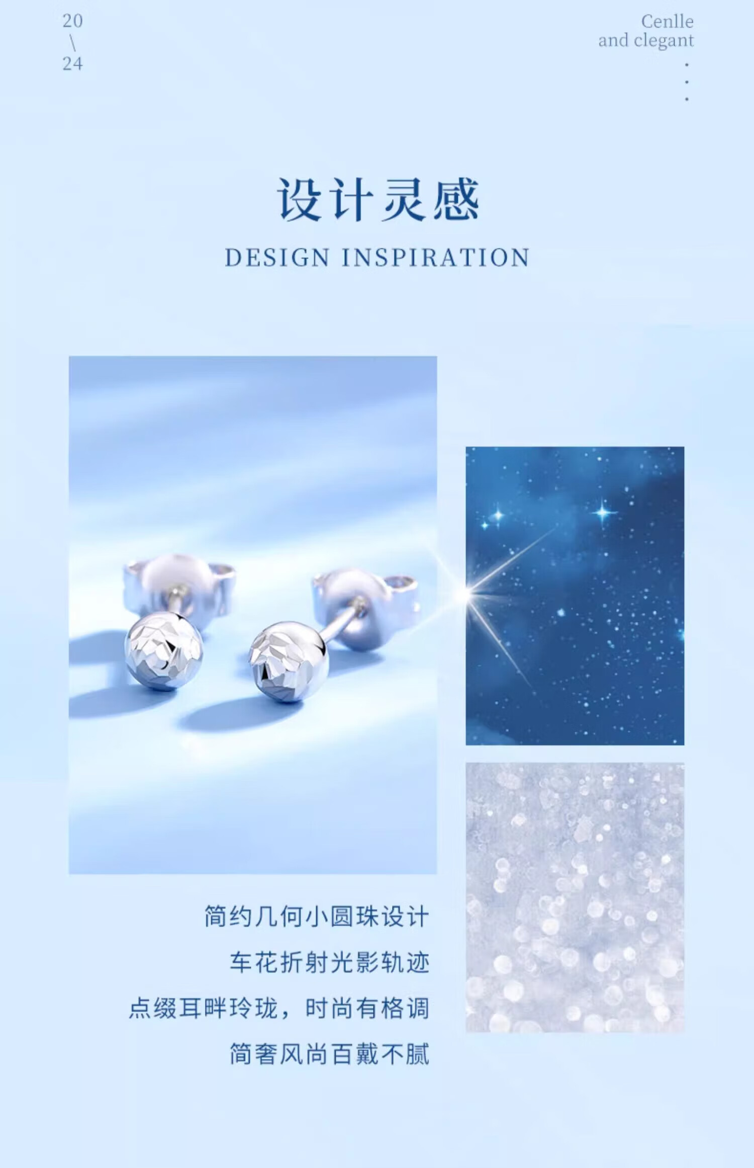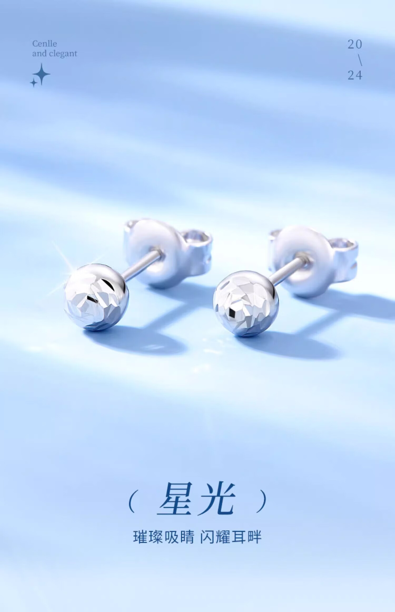 Lao Fengxiang pt950 platinum earrings for women, platinum modern light ball earrings, earrings, Valentine's Day birthday gift for girlfriend, platinum star ball earrings, about 2.2g, brand gift box