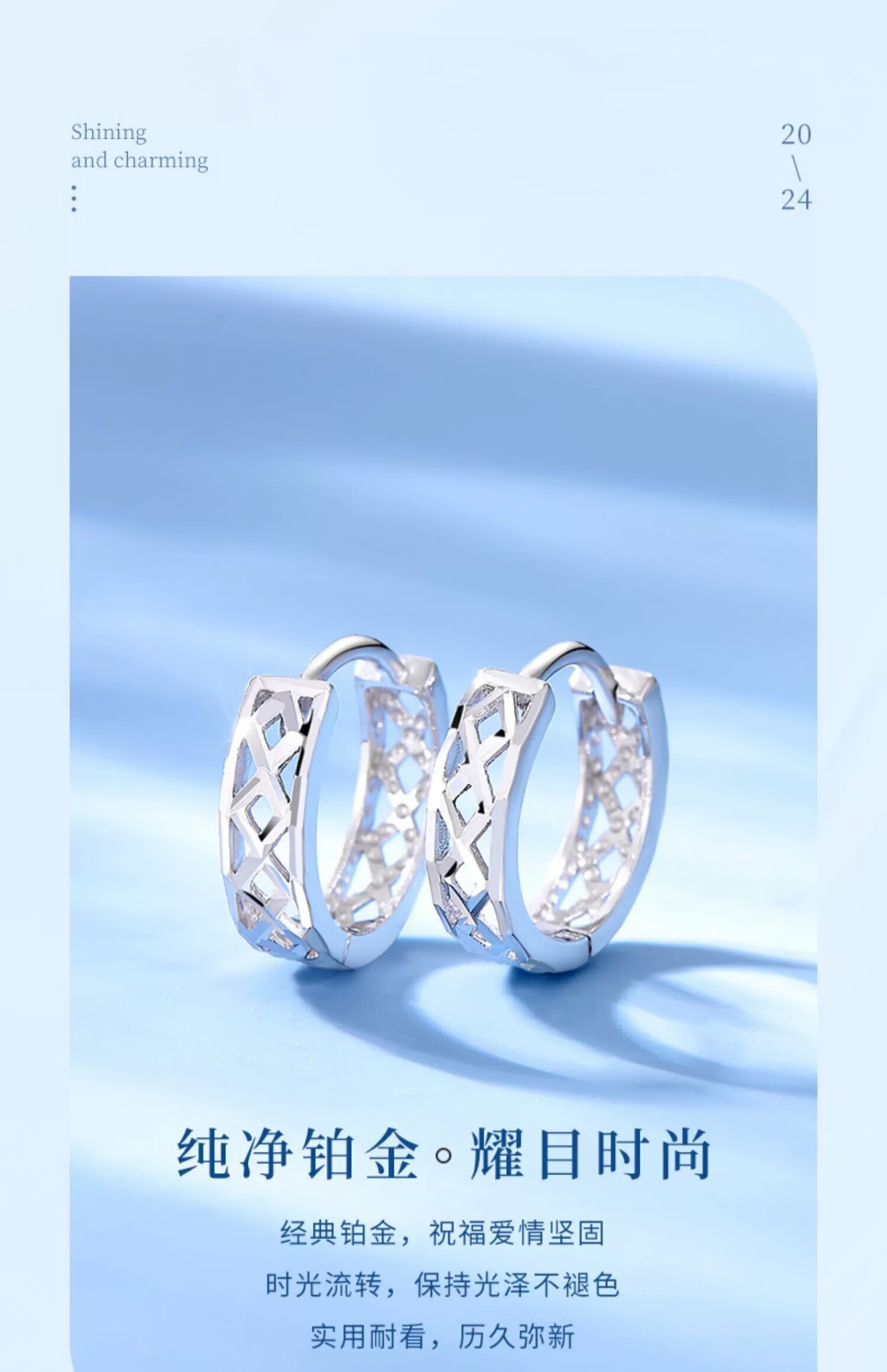 Lao Fengxiang pt950 platinum earrings for women platinum prismatic hollow earrings earrings Valentine's Day birthday gift for girlfriend and wife Platinum prismatic hollow earrings about 1.6g brand gift box