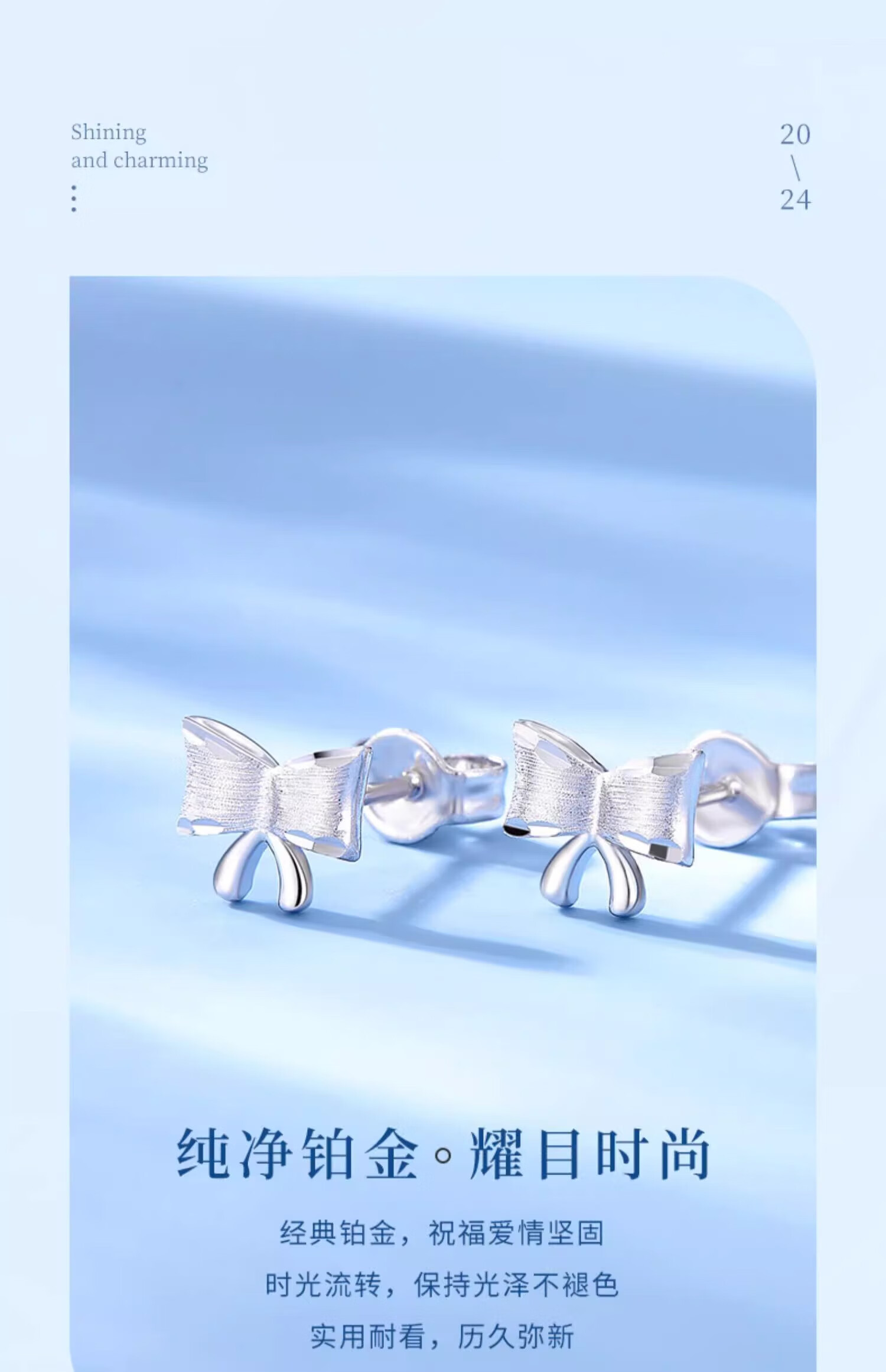 Lao Fengxiang pt950 platinum earrings for women, platinum sweetheart bow earrings, earrings, Valentine's Day birthday gift for girlfriend, platinum sweetheart bow earrings, about 1.5g, brand gift box