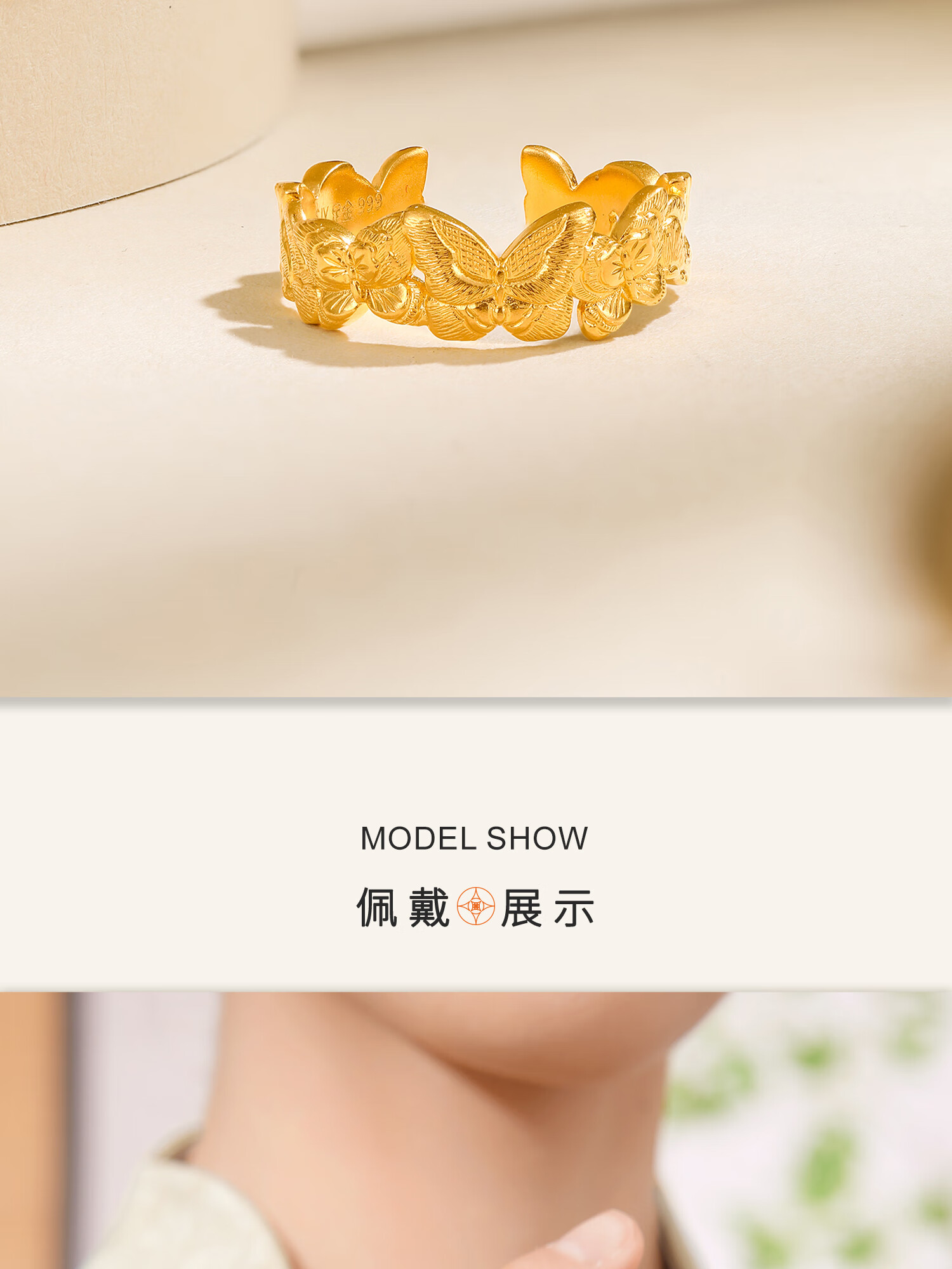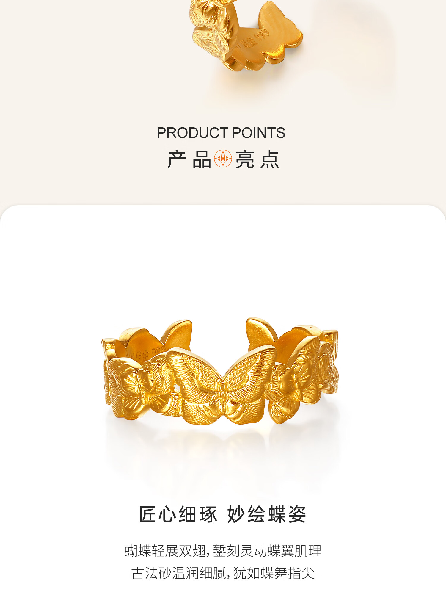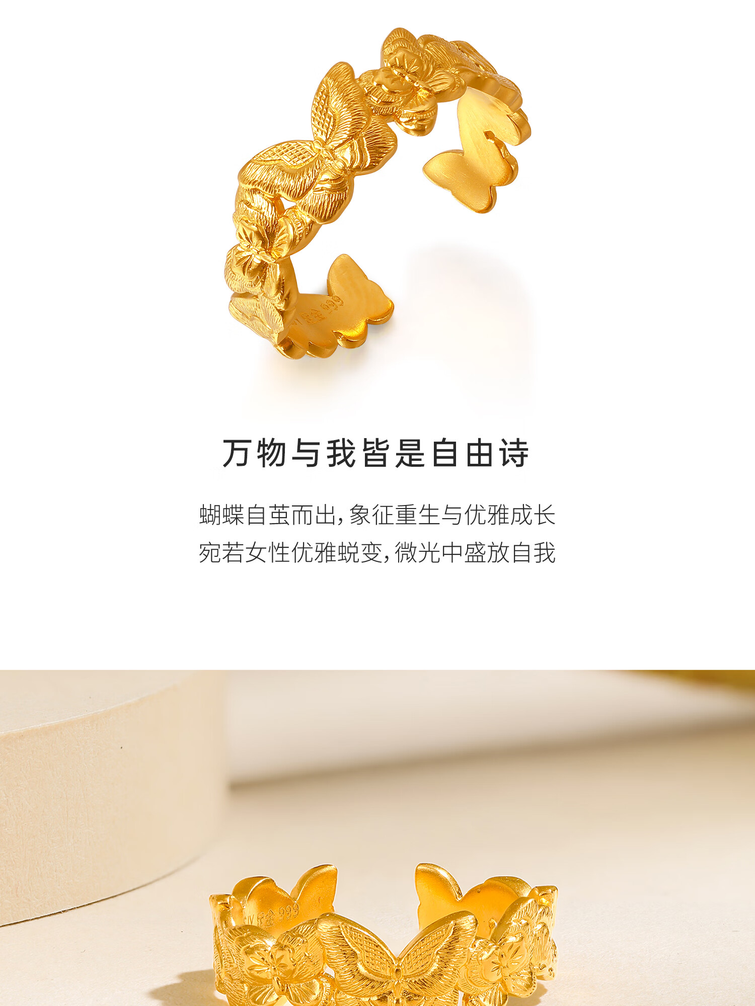Century Yuan Butterfly Gold Ring Ancient Method Pure Gold Exquisite and Elegant Everyday Versatile Ring Birthday Gift for Girlfriend 4.15g 15 Circles