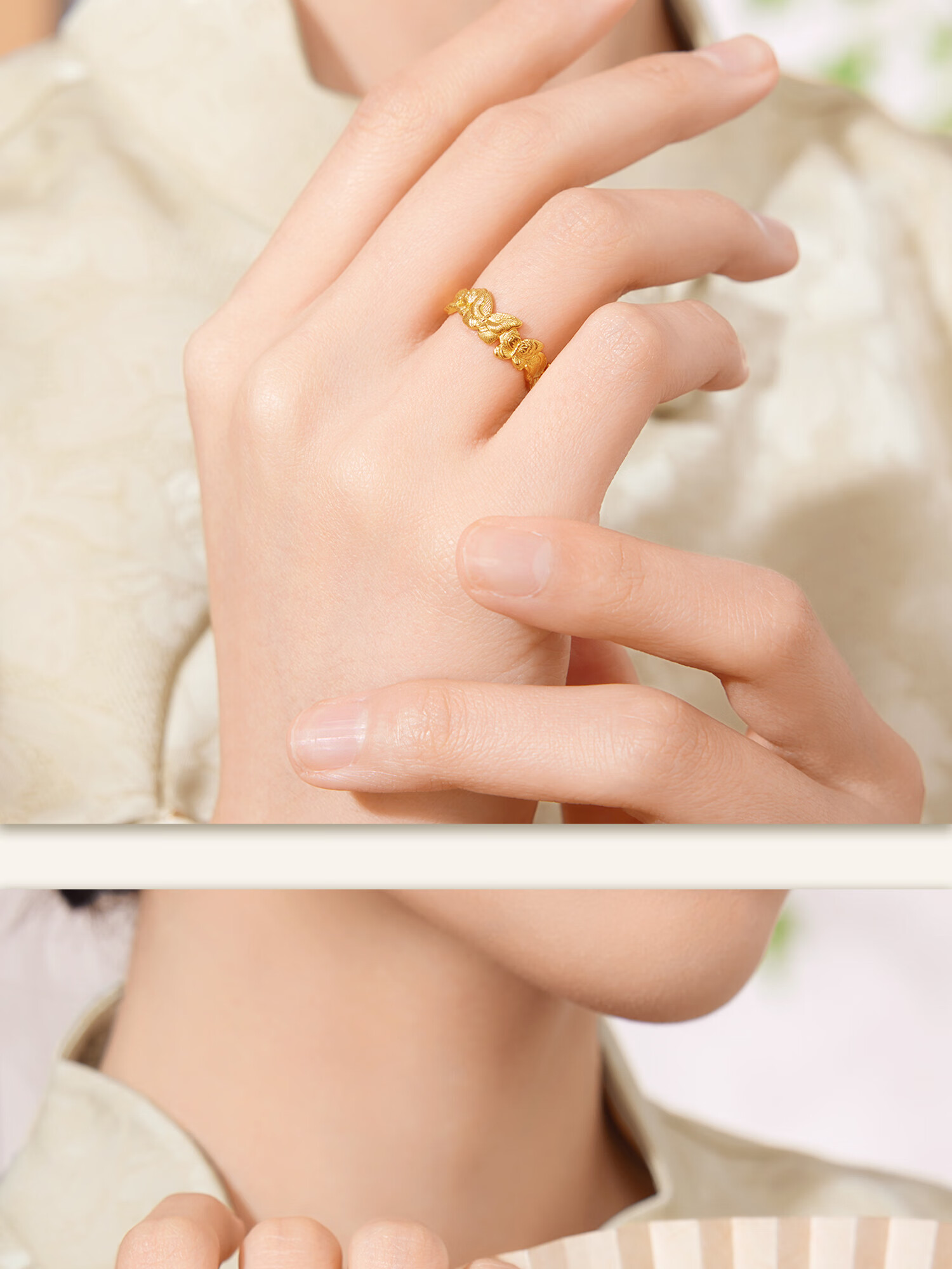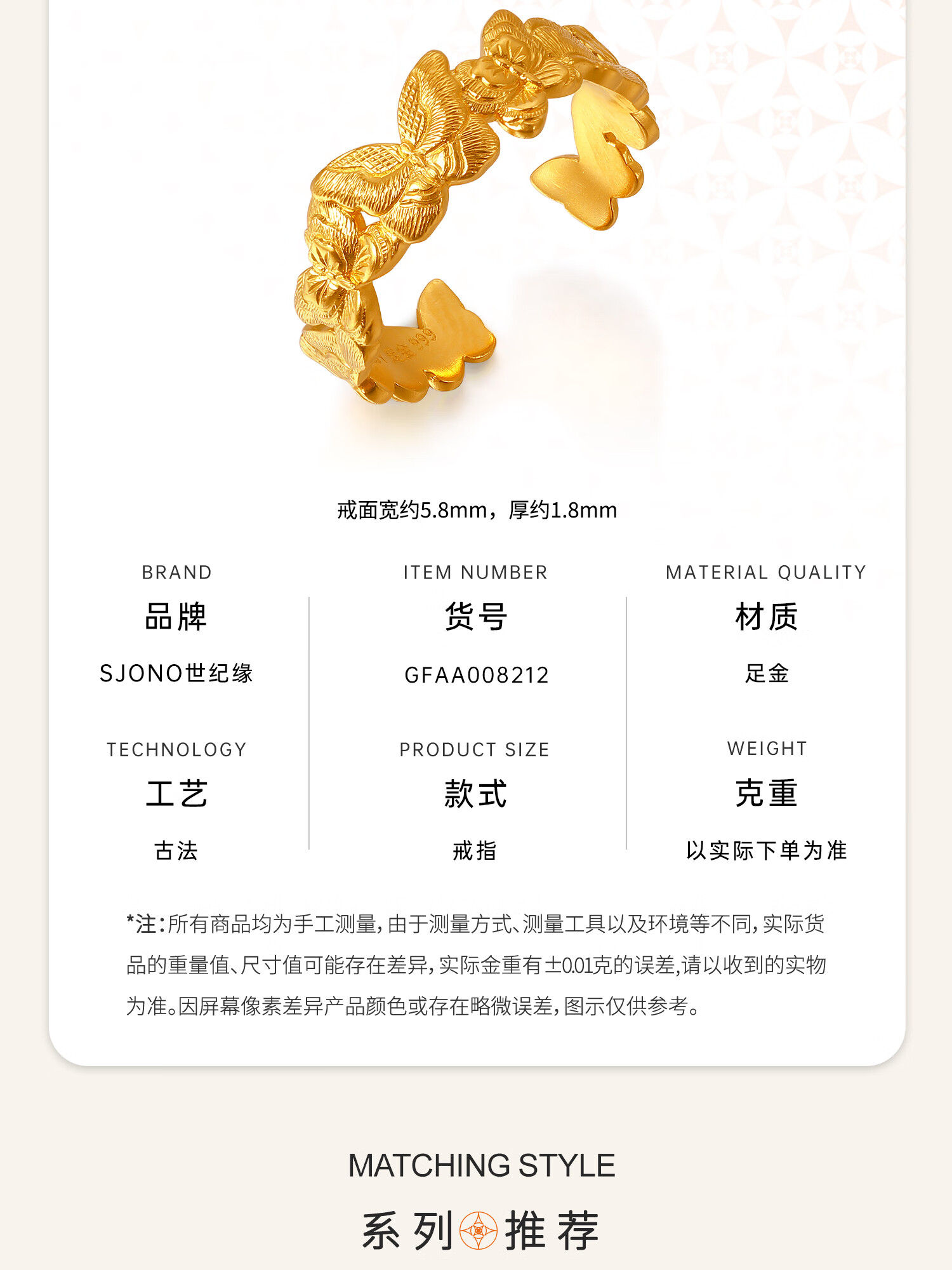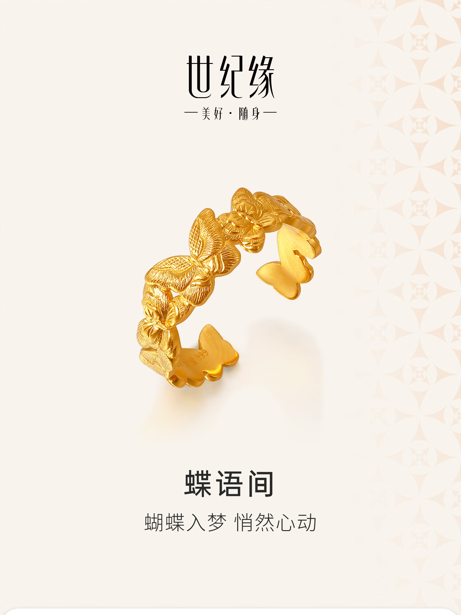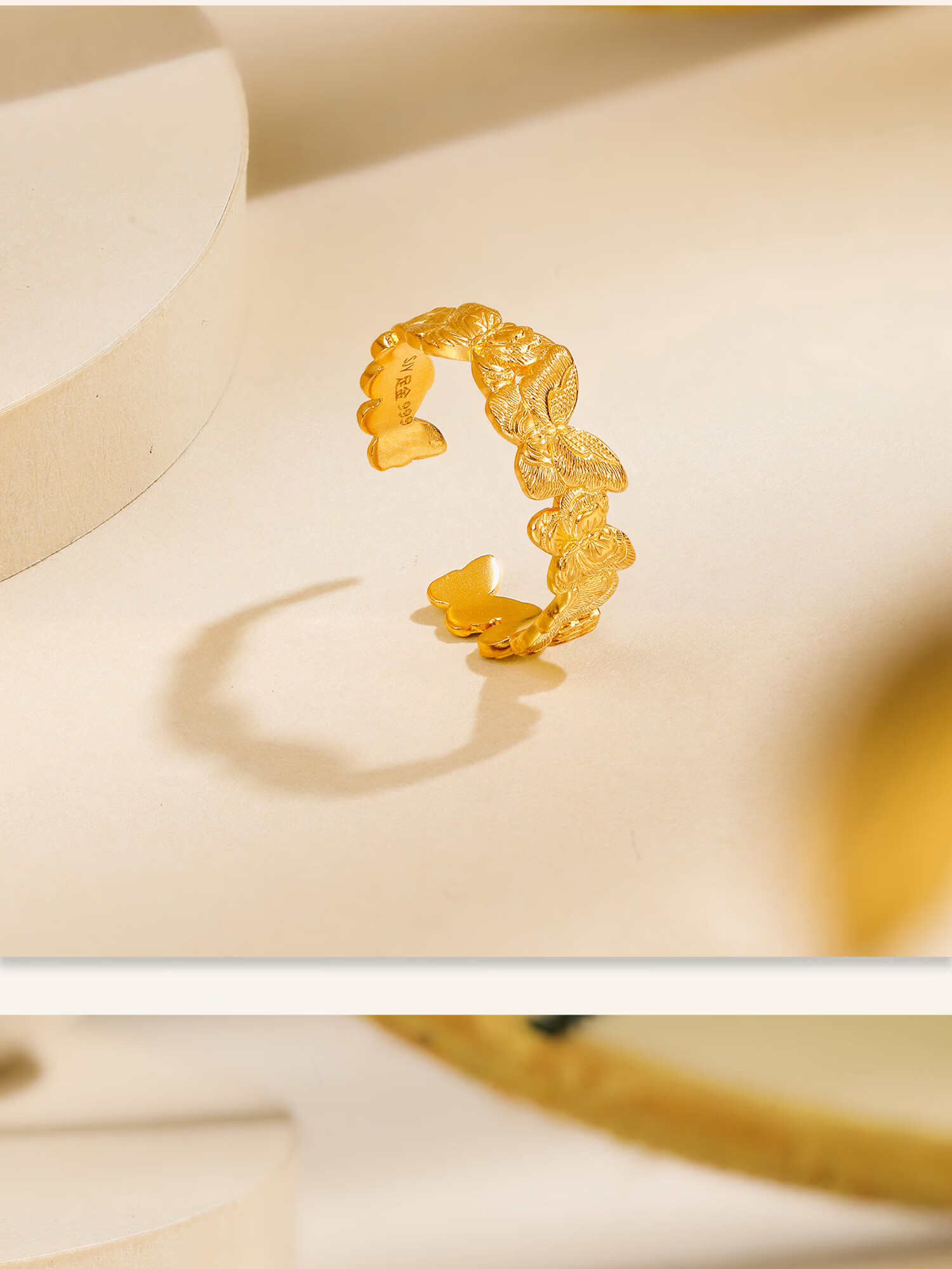 Century Yuan Butterfly Gold Ring Ancient Method Pure Gold Exquisite and Elegant Everyday Versatile Ring Birthday Gift for Girlfriend 4.15g 15 Circles
