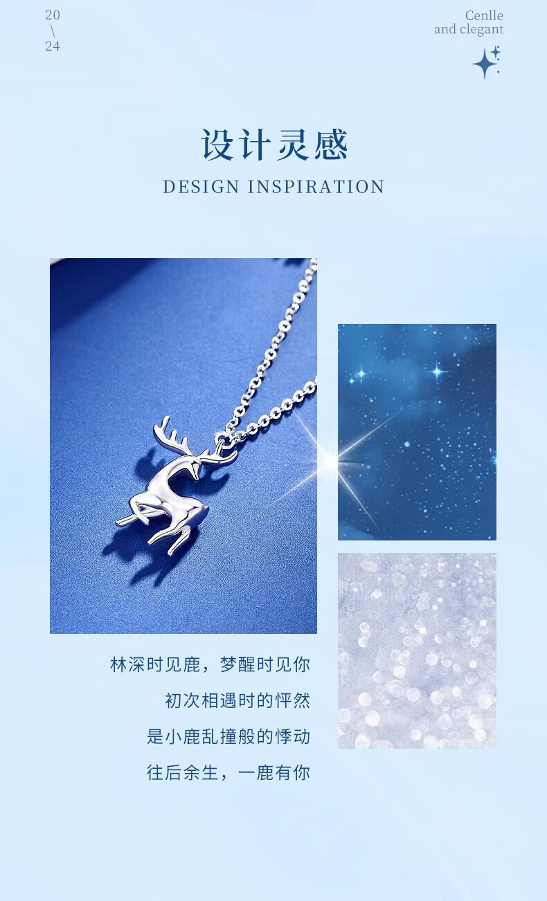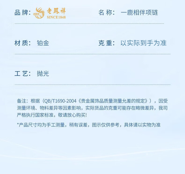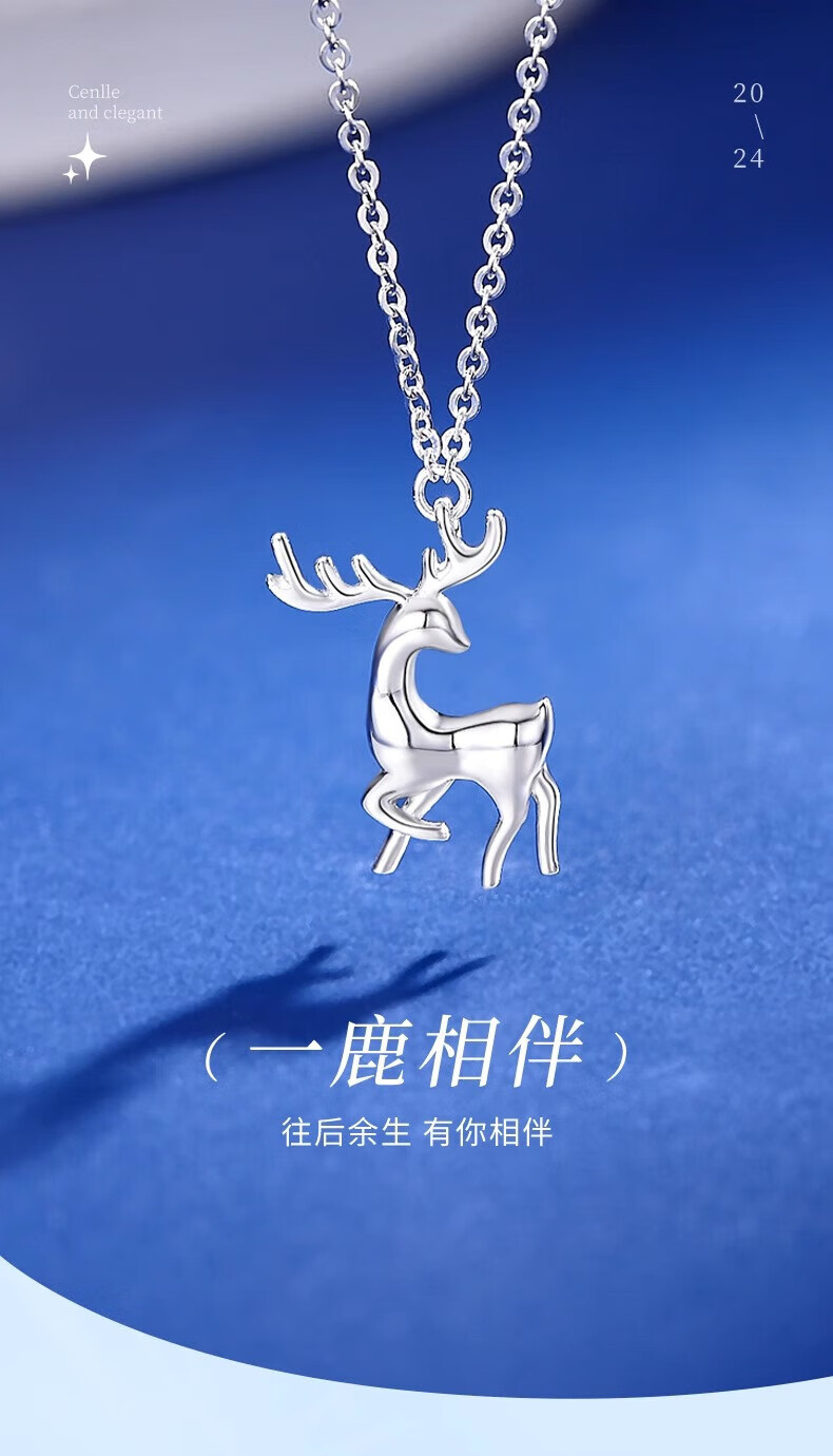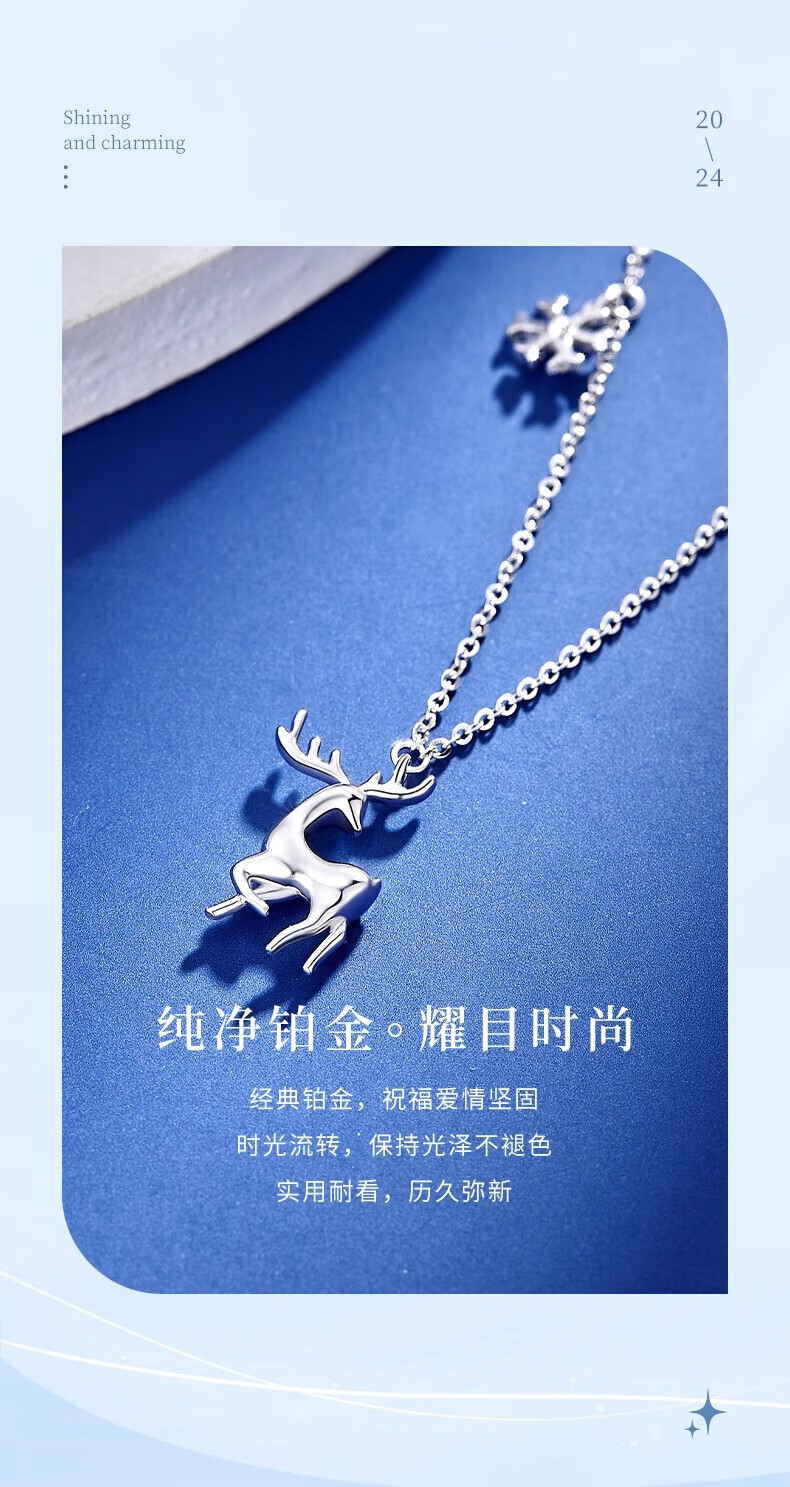 Lao Fengxiang pt950 platinum necklace for women, platinum one deer with you pendant, clavicle chain, Valentine's Day birthday gift for girlfriend, platinum one deer with you necklace, about 3.8g, brand gift box