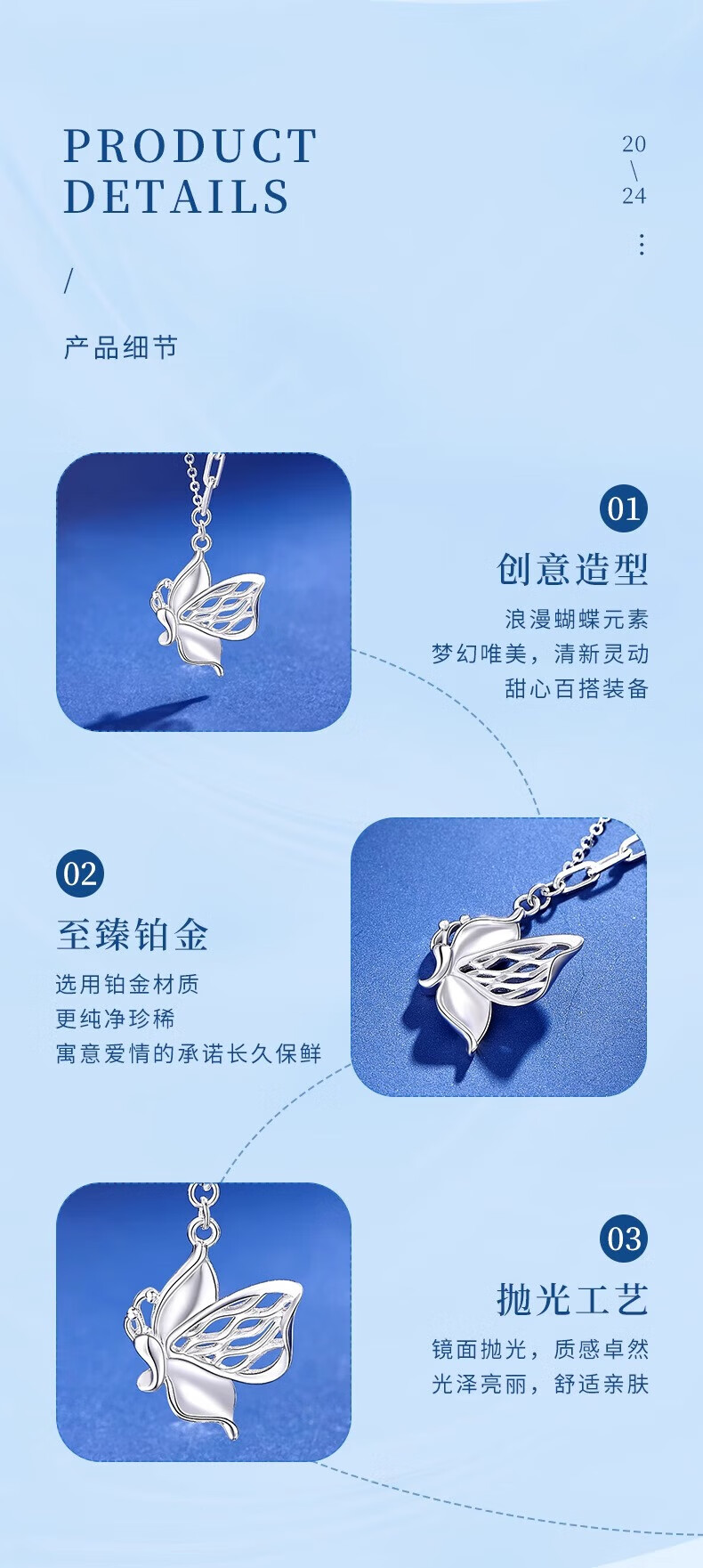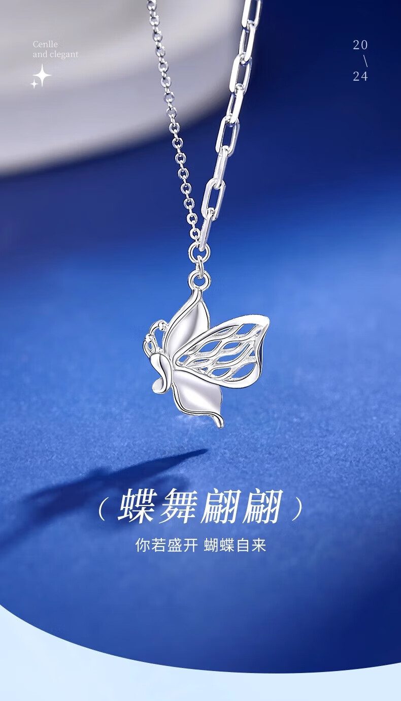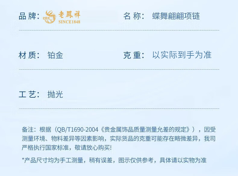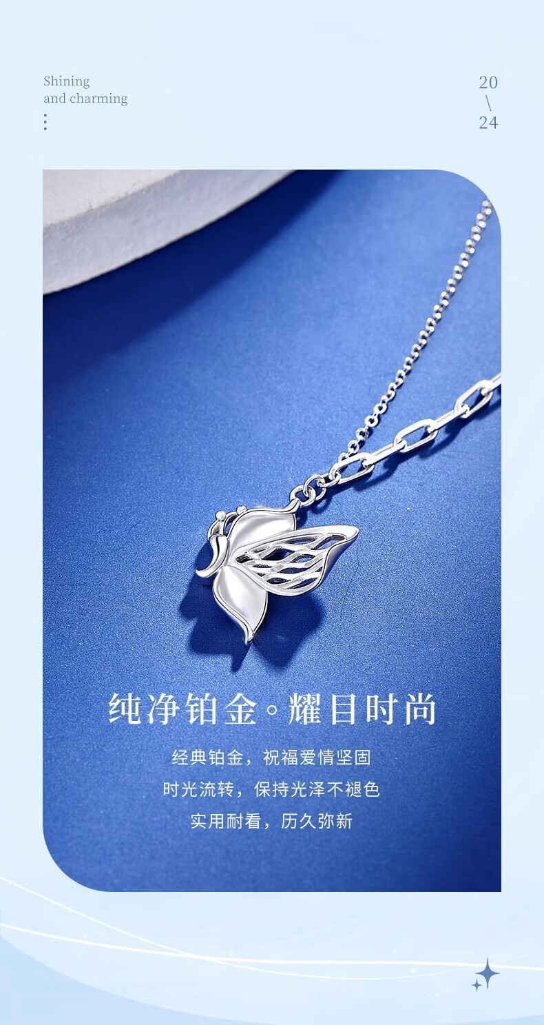 Lao Fengxiang pt950 platinum necklace for women, platinum butterfly pendant, clavicle chain, Valentine's Day birthday gift for girlfriend and wife, platinum butterfly necklace, about 3g, brand gift box