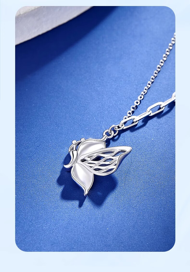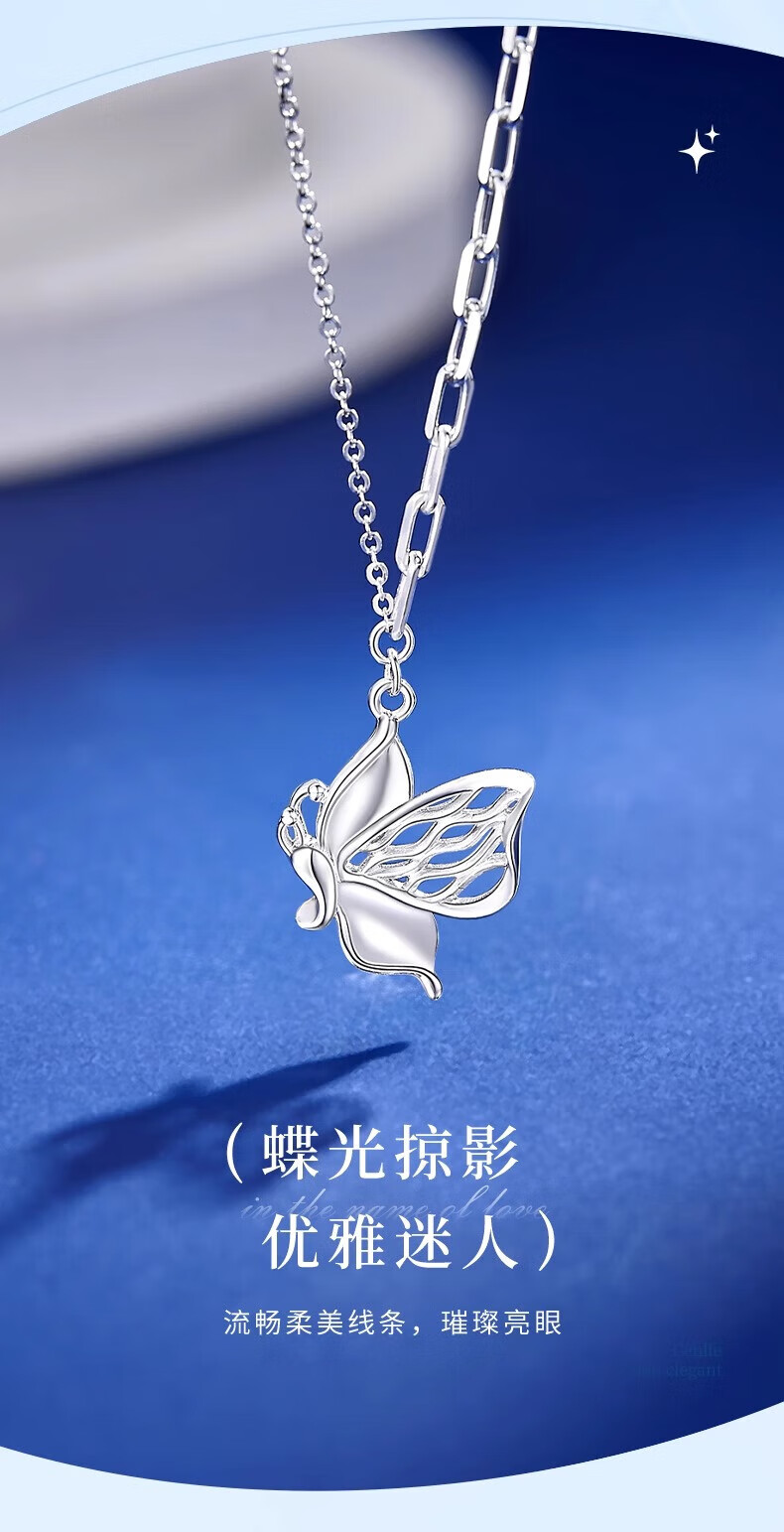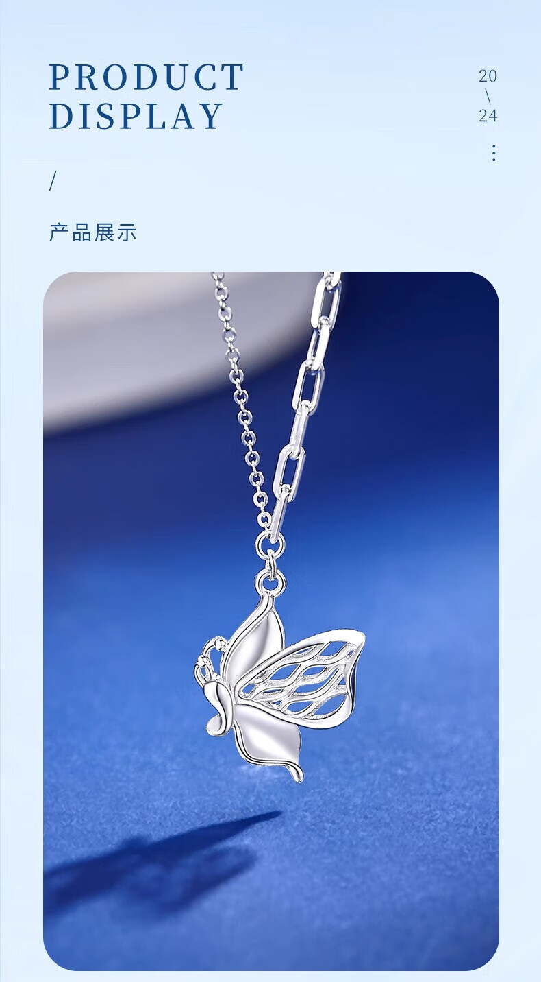 Lao Fengxiang pt950 platinum necklace for women, platinum butterfly pendant, clavicle chain, Valentine's Day birthday gift for girlfriend and wife, platinum butterfly necklace, about 3g, brand gift box