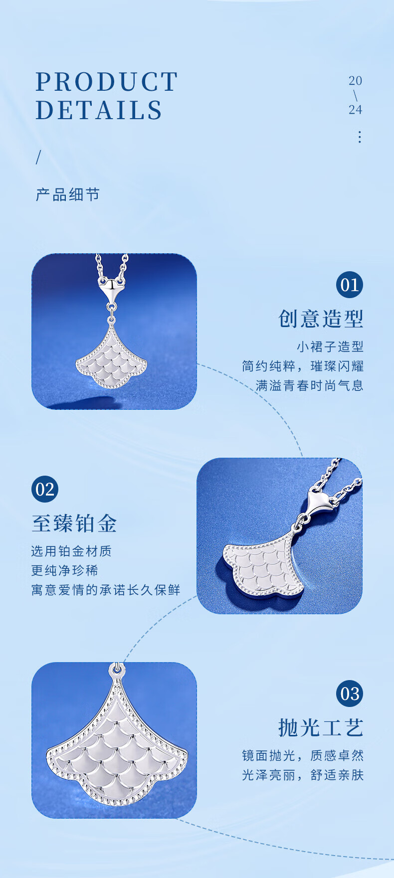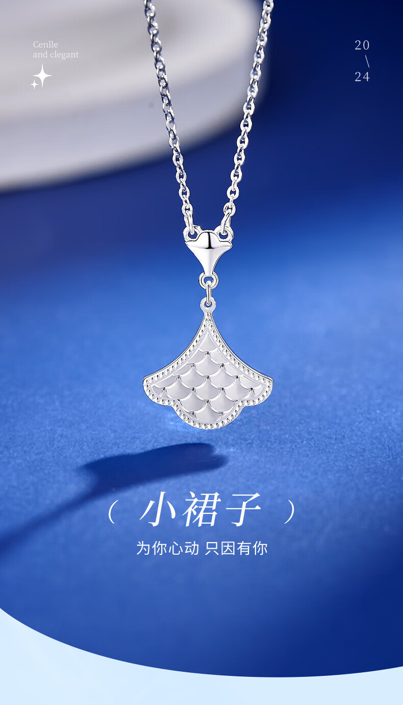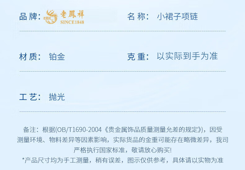 Lao Fengxiang pt950 platinum necklace for women platinum skirt pendant set chain Valentine's Day birthday gift for girlfriend and wife platinum skirt necklace about 5.6g brand gift box