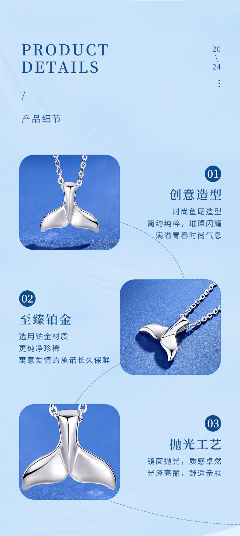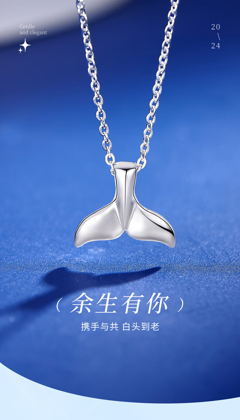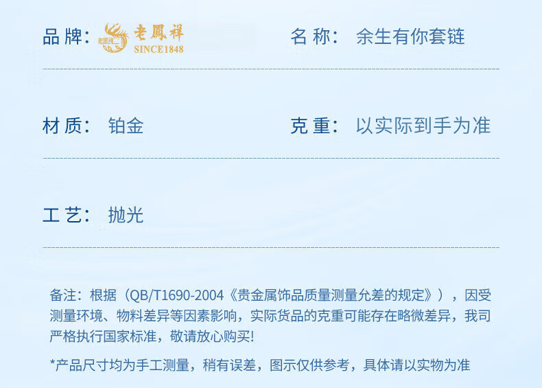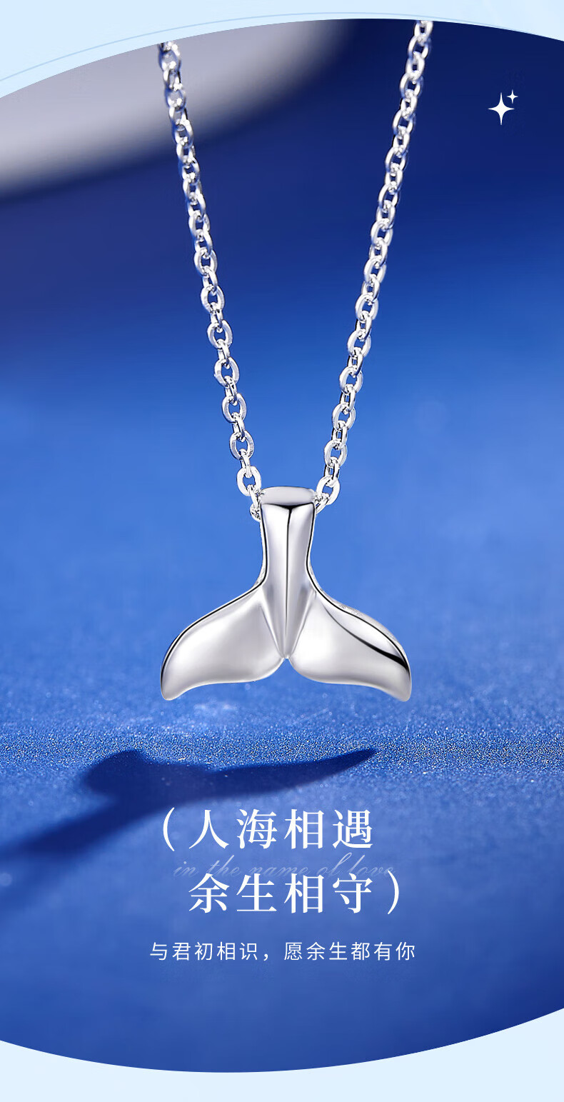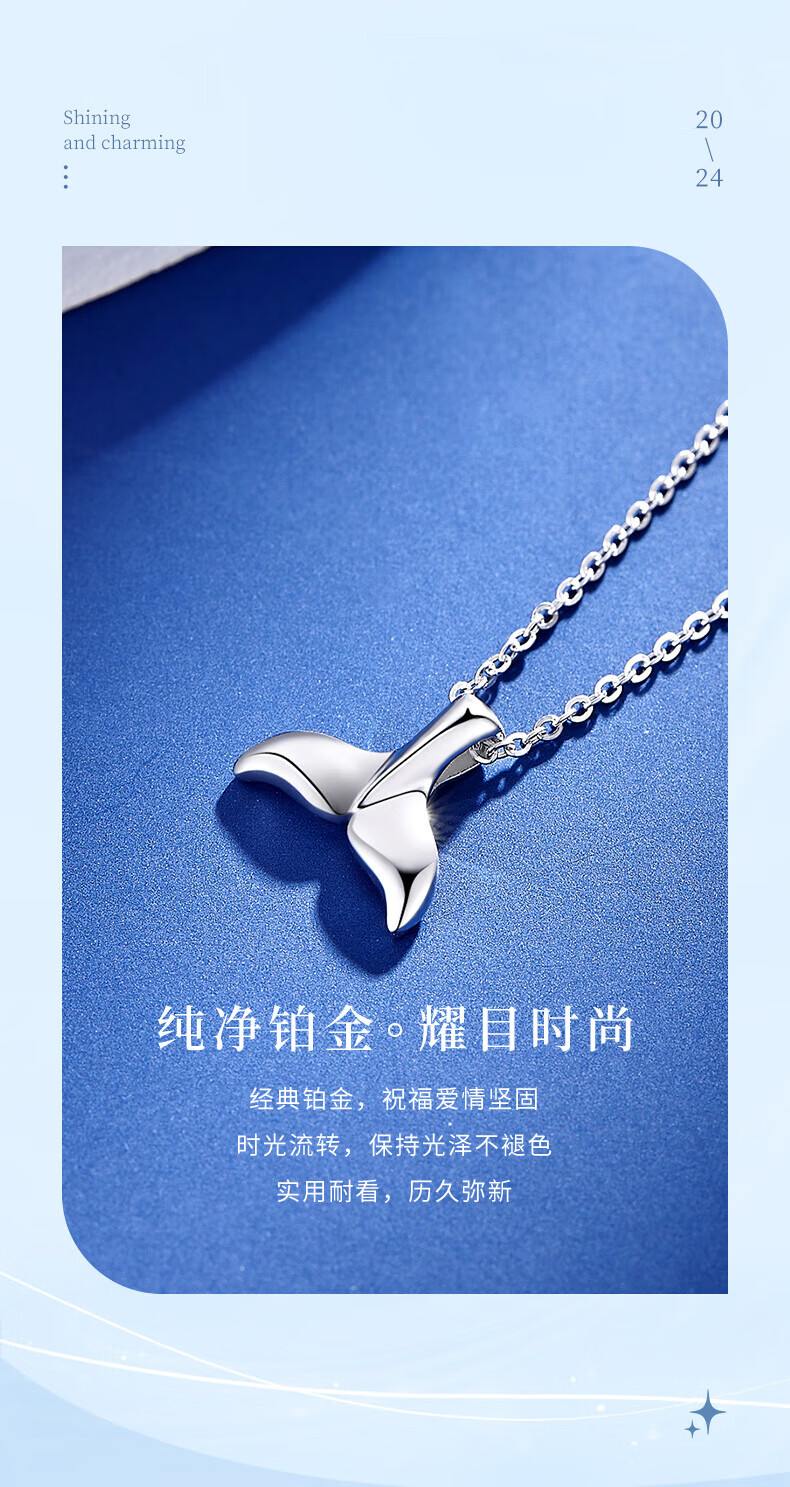 Lao Fengxiang pt950 platinum necklace for women, platinum pendant, fishtail set chain, Valentine's Day birthday gift for girlfriend, platinum necklace, about 4.3g, brand gift box
