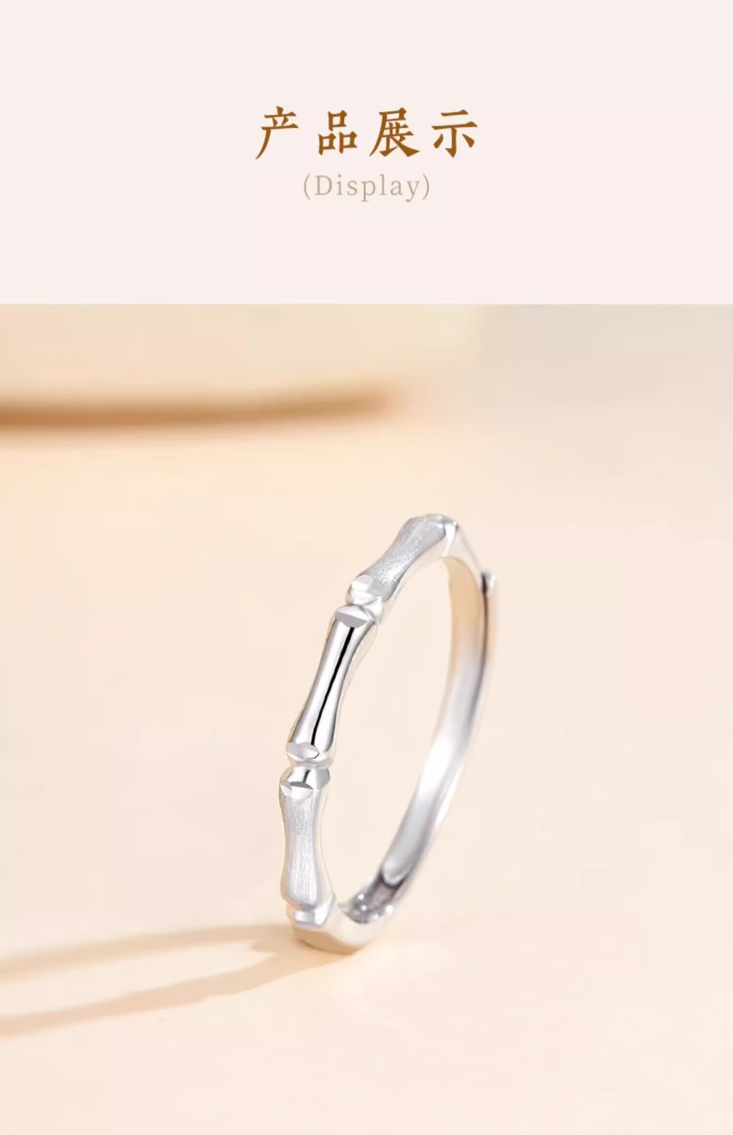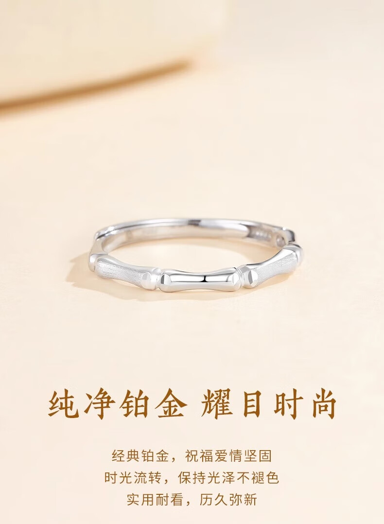 Lao Fengxiang pt950 platinum ring for women, platinum elegant bamboo ring, open ring, Valentine's Day birthday gift for girlfriend, platinum bamboo ring, about 2.1g, brand gift box