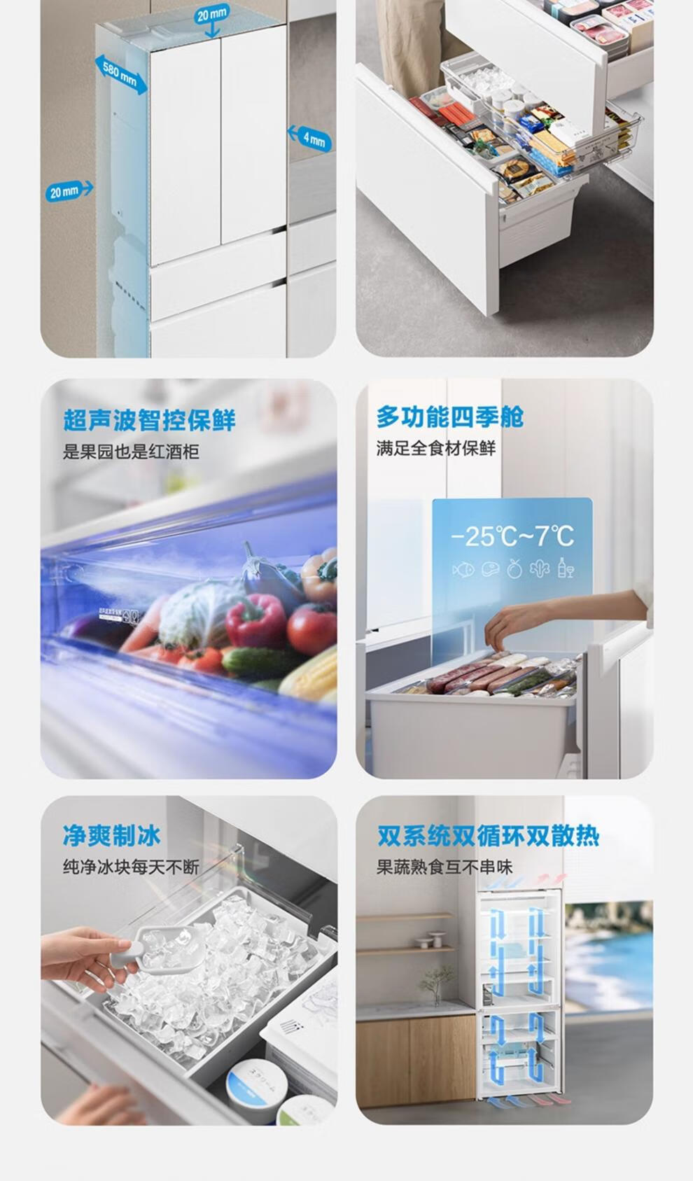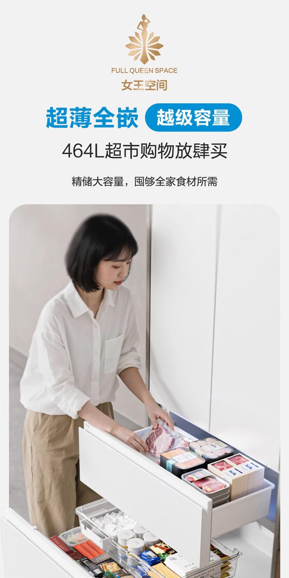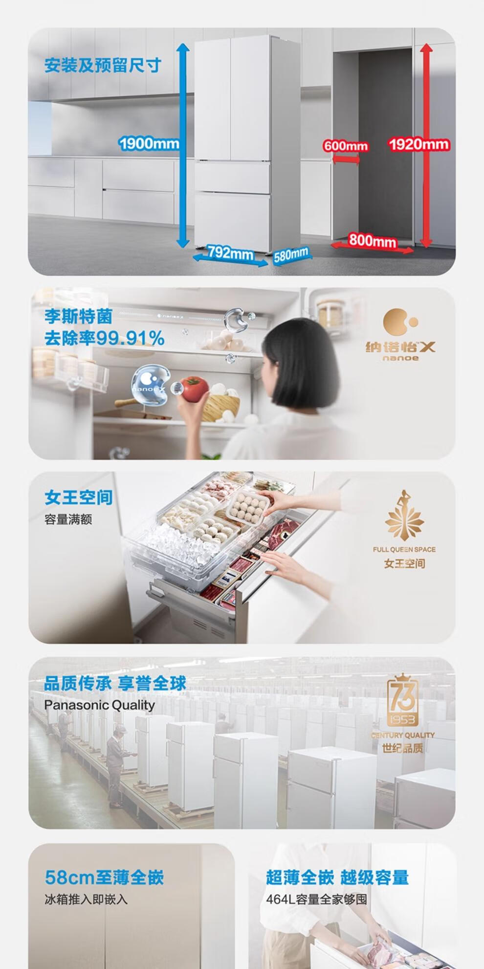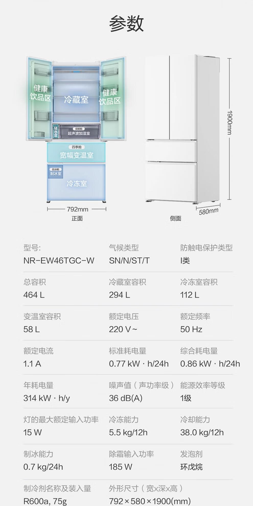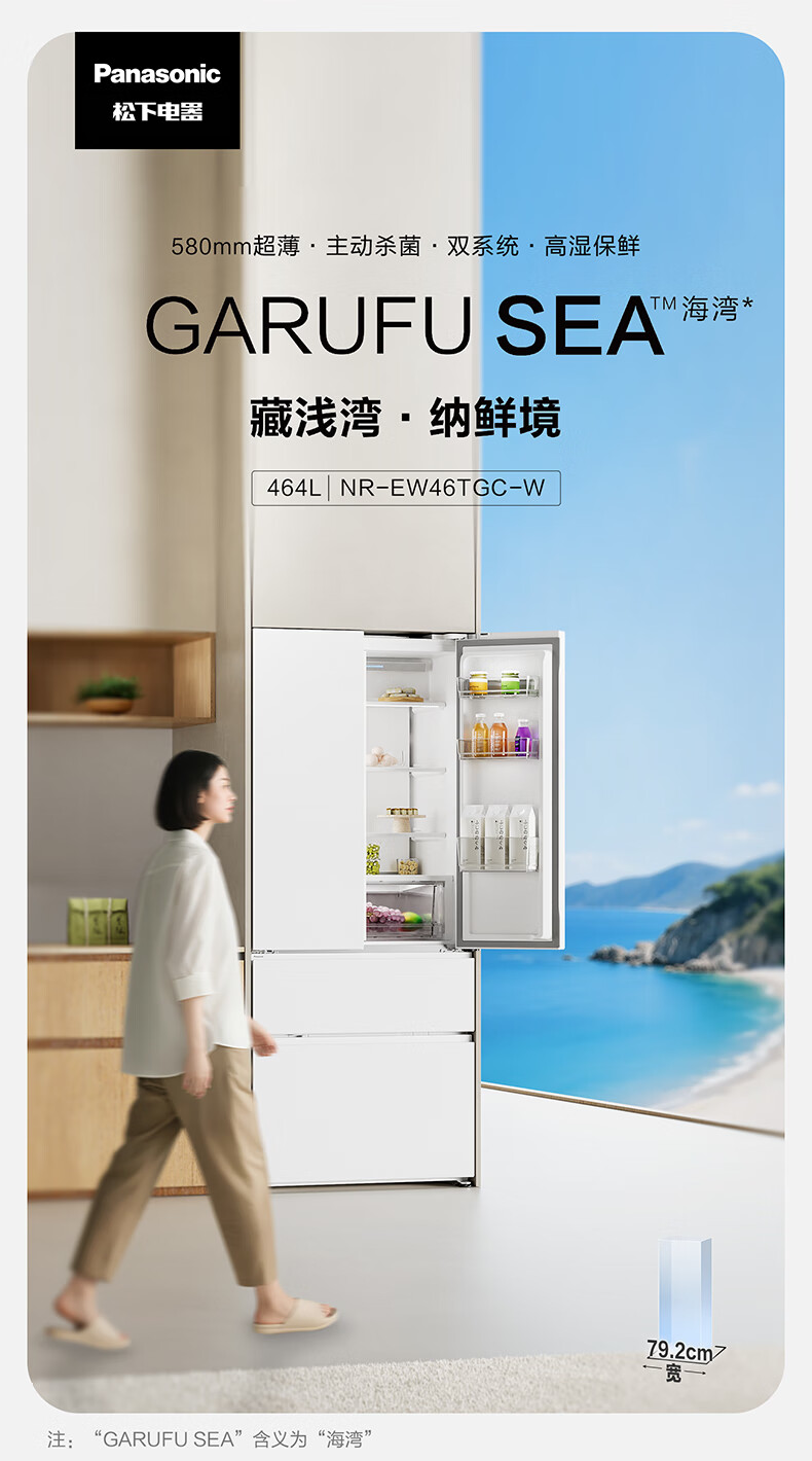Panasonic panasonic new product 464L French multi-door refrigerator 58cm zero-embedded automatic ice making dual 46TGC NR-EW46TGC-W 464L Crystal White