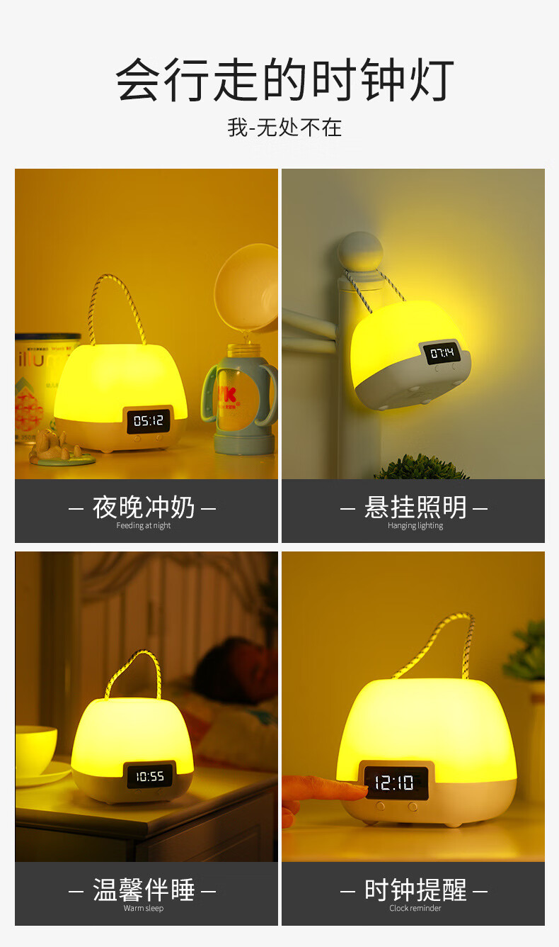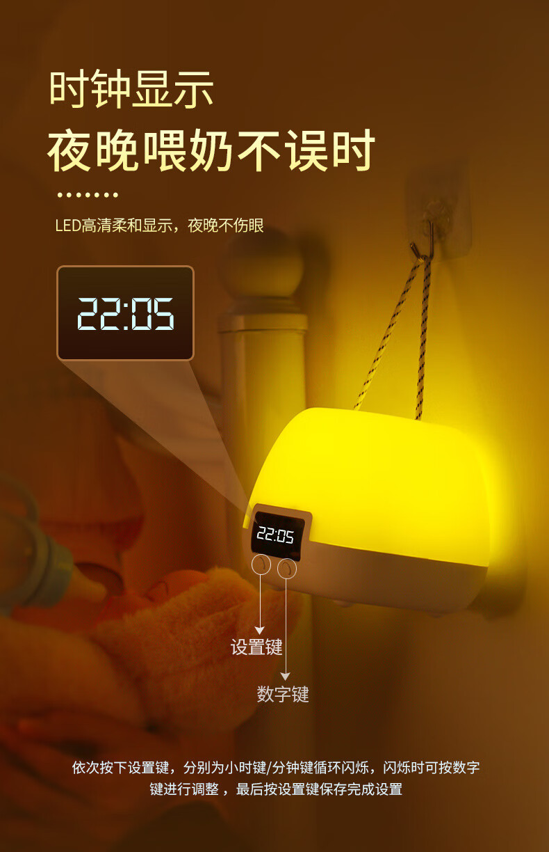 Li Shen feeding night light baby eye protection table lamp bedroom bedside lamp confinement special smart remote control night light rechargeable sleep light dormitory atmosphere light bedroom baby sleeping light soft light wireless remote control three-color temperature + clock display + free charging cable & remote control dimming timer - charging and plugging