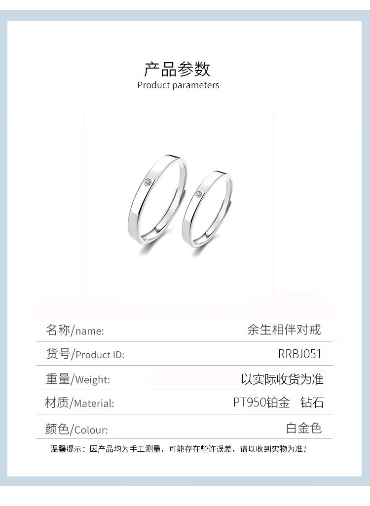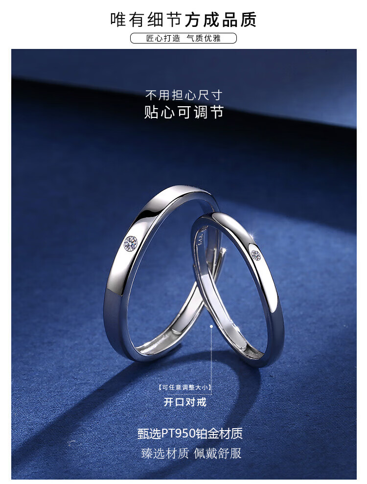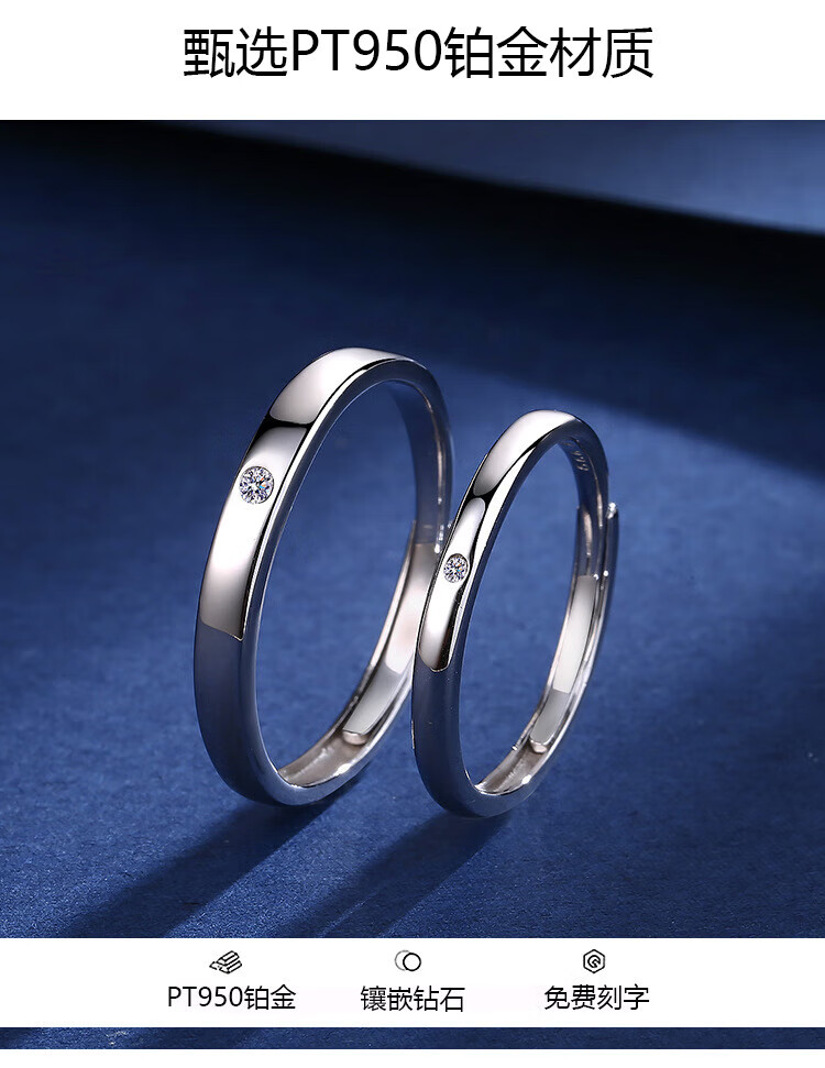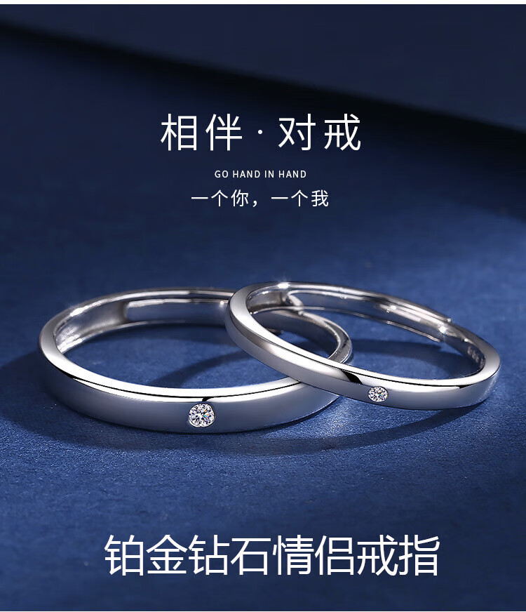RHM platinum diamond ring for men and women, couple ring, platinum diamond ring, plain ring, birthday and Valentine's Day gift for girlfriend, a pair of platinum and diamond couple rings + certificate + gift box