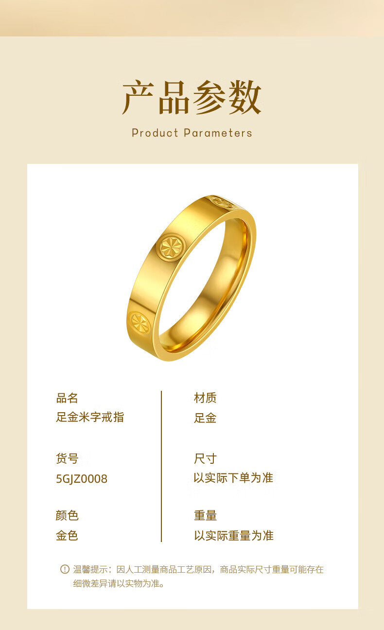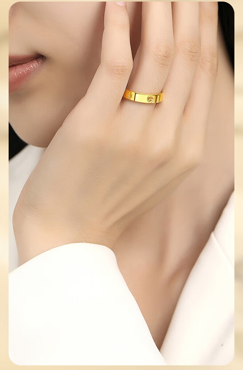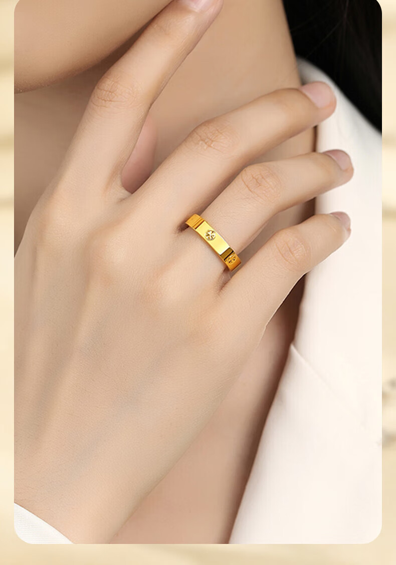 Chinese jewelry rice-shaped gold ring women's pure gold closed ring birthday gift for girlfriend and wife gold weight about 3g pure gold ring circle mouth 9#