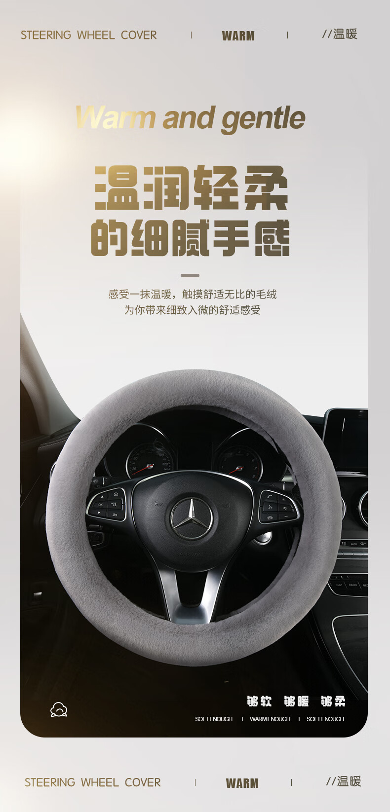 Plush steering wheel cover to keep warm and cold in winter Internet celebrity goddess car handlebar cover non-shedding anti-slip universal type high profile gray round place order note model