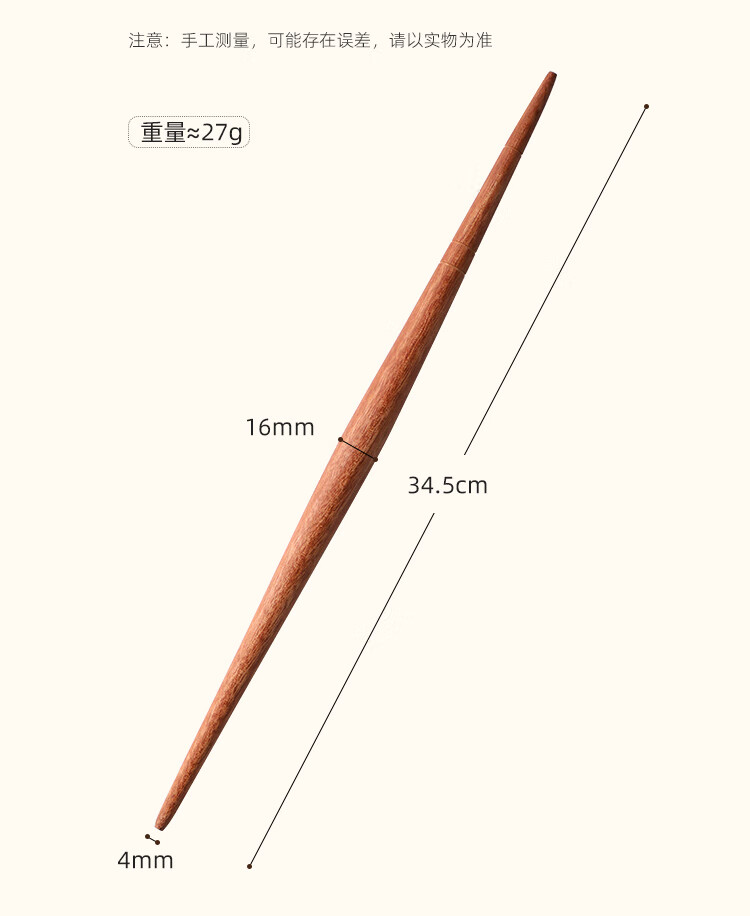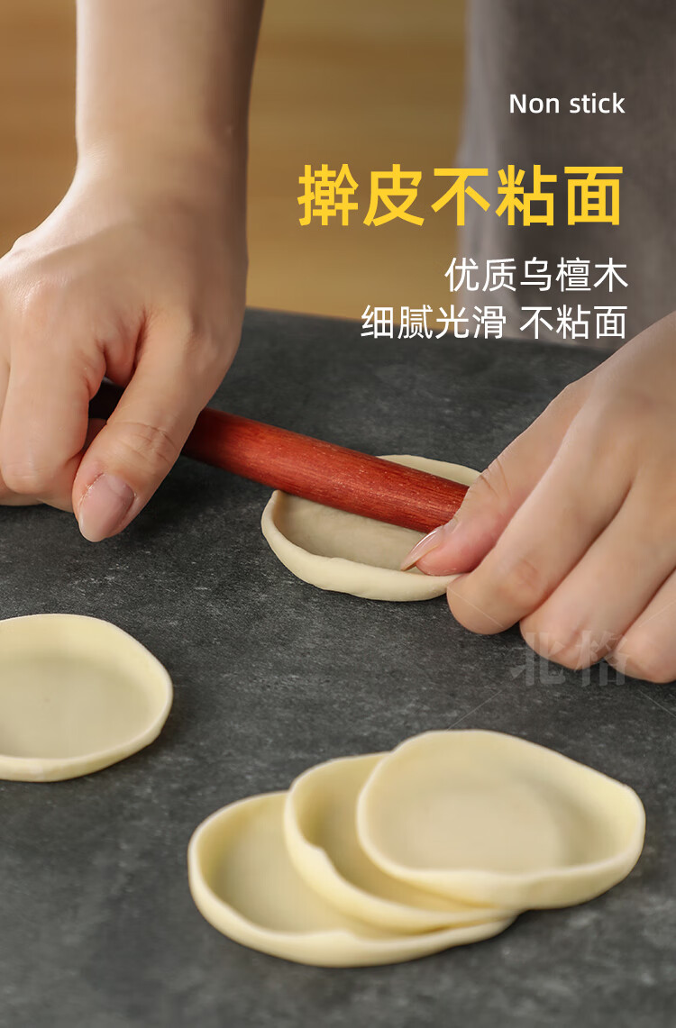 Ebony wood dumpling wrapper special rolling pin for household food-grade dumpling wrapper artifact fish belly-shaped pointed noodle pin with two pointed ends fish belly ebony wood rolling pin 30*2cm 1 piece