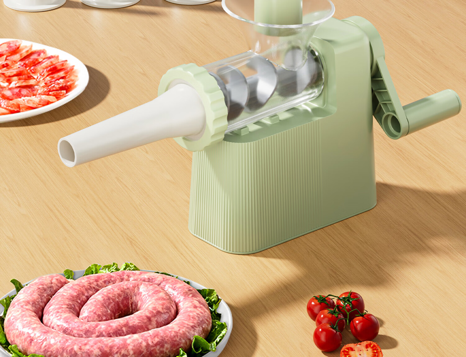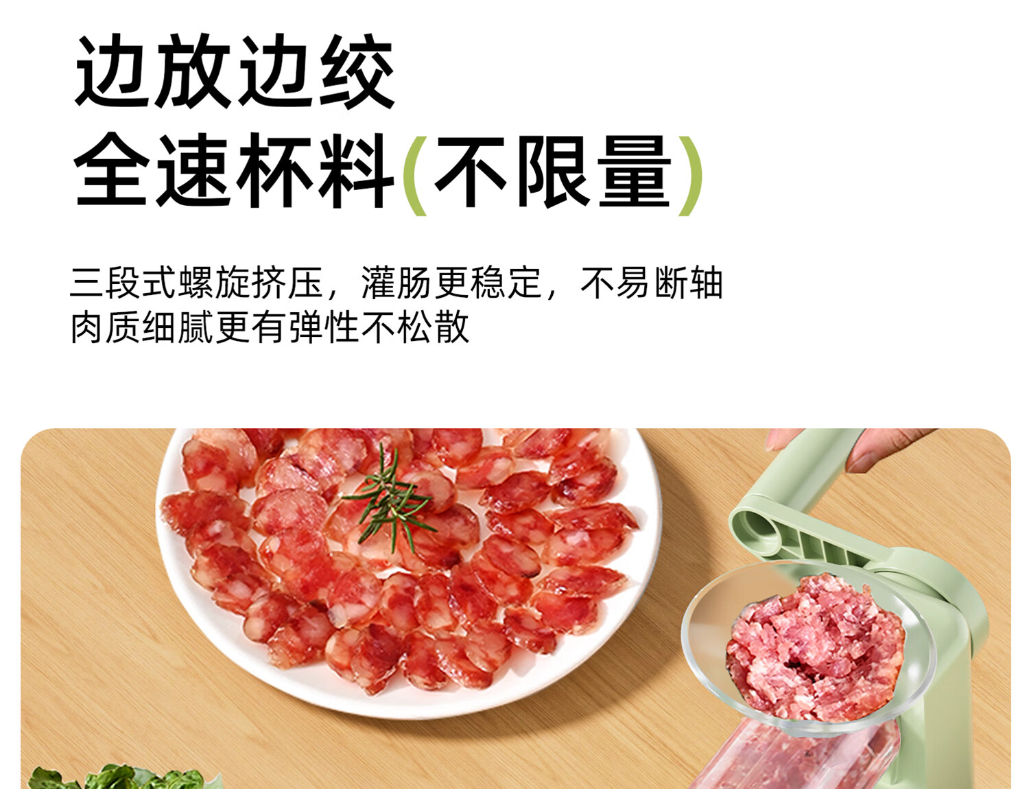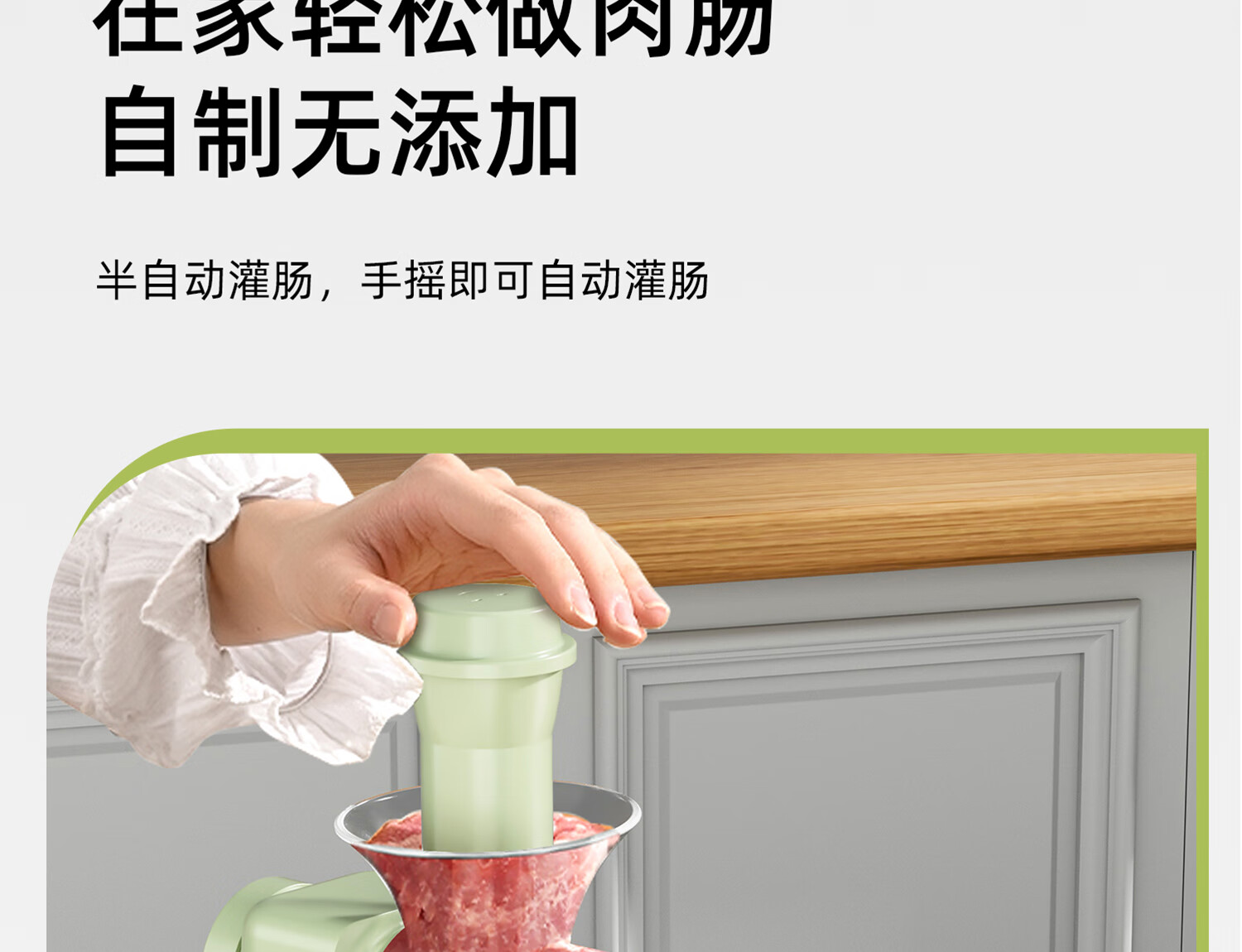 Hand-operated sausage filling machine, household sausage filling tool, sausage machine artifact, food-grade sausage making, homemade canned meat casings, green - hand-operated sausage filling machine, free 1 pack of casings + enema gift pack