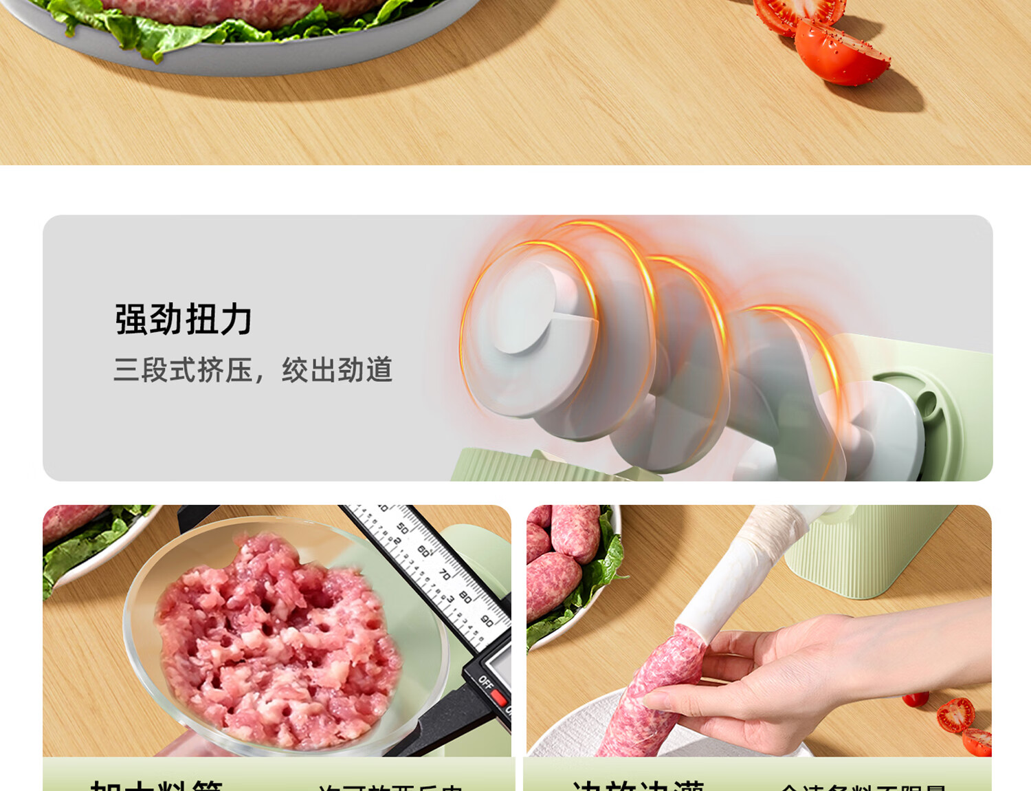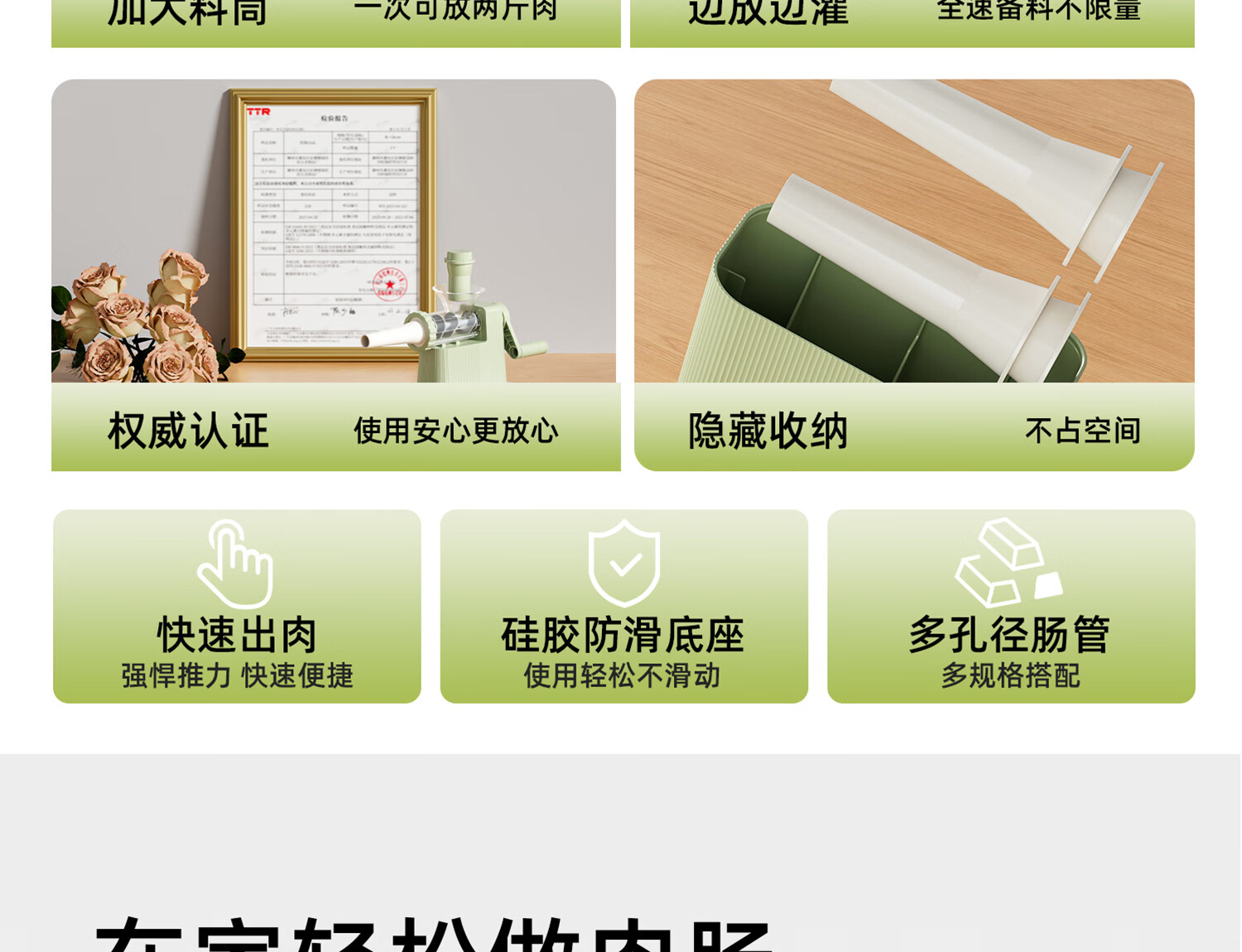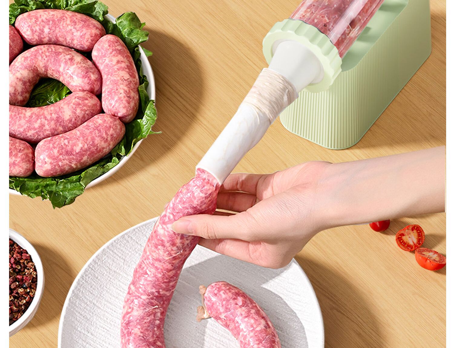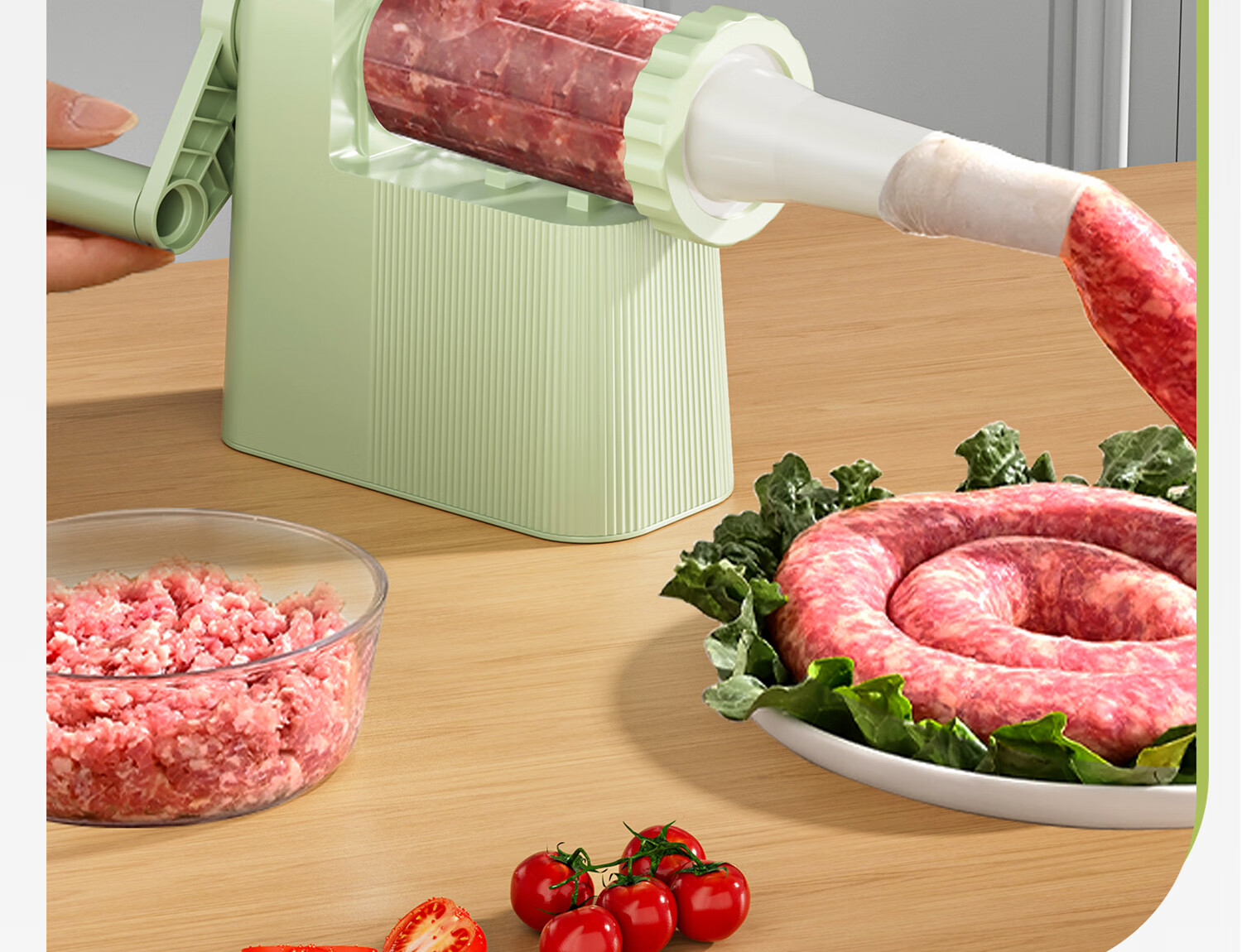 Hand-operated sausage filling machine, household sausage filling tool, sausage machine artifact, food-grade sausage making, homemade canned meat casings, green - hand-operated sausage filling machine, free 1 pack of casings + enema gift pack