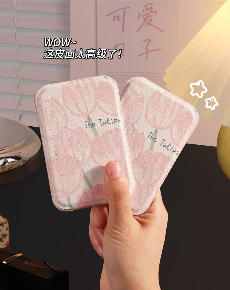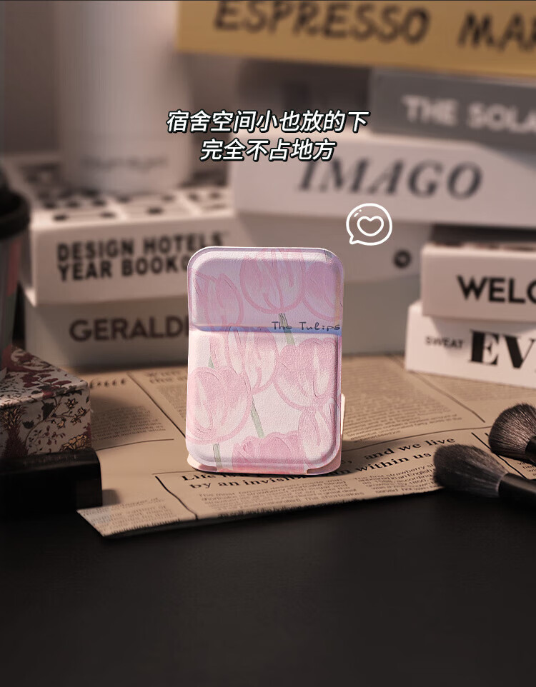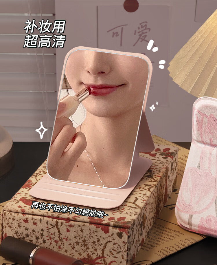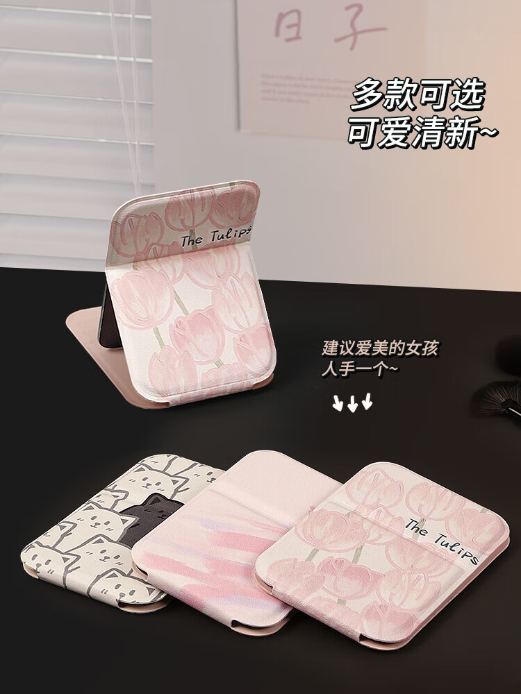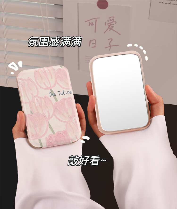 Tulip Portable Small Mirror Student Makeup Handheld Female Folding Desktop Pocket Dressing Mini Portable Makeup Mirror Tulip-Small Ins Blogger Same Style
