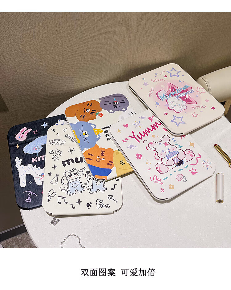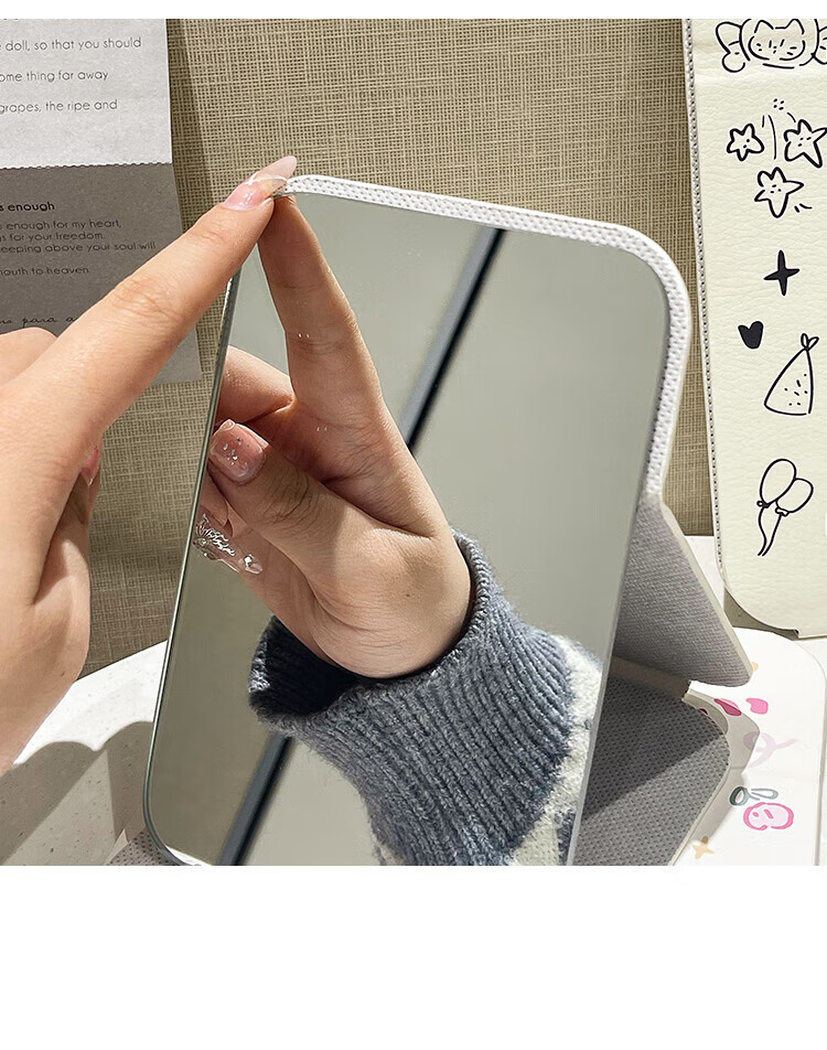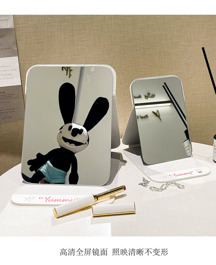 Cute folding mirror table top standable student dormitory female travel portable dressing home makeup small size - Blue Cat Dance original design