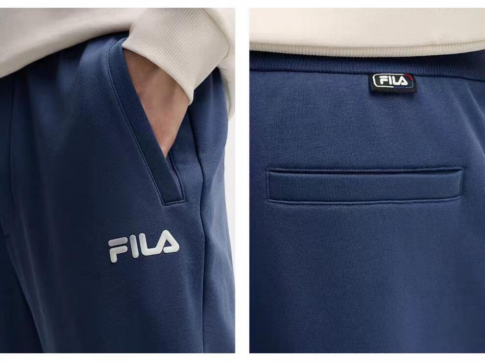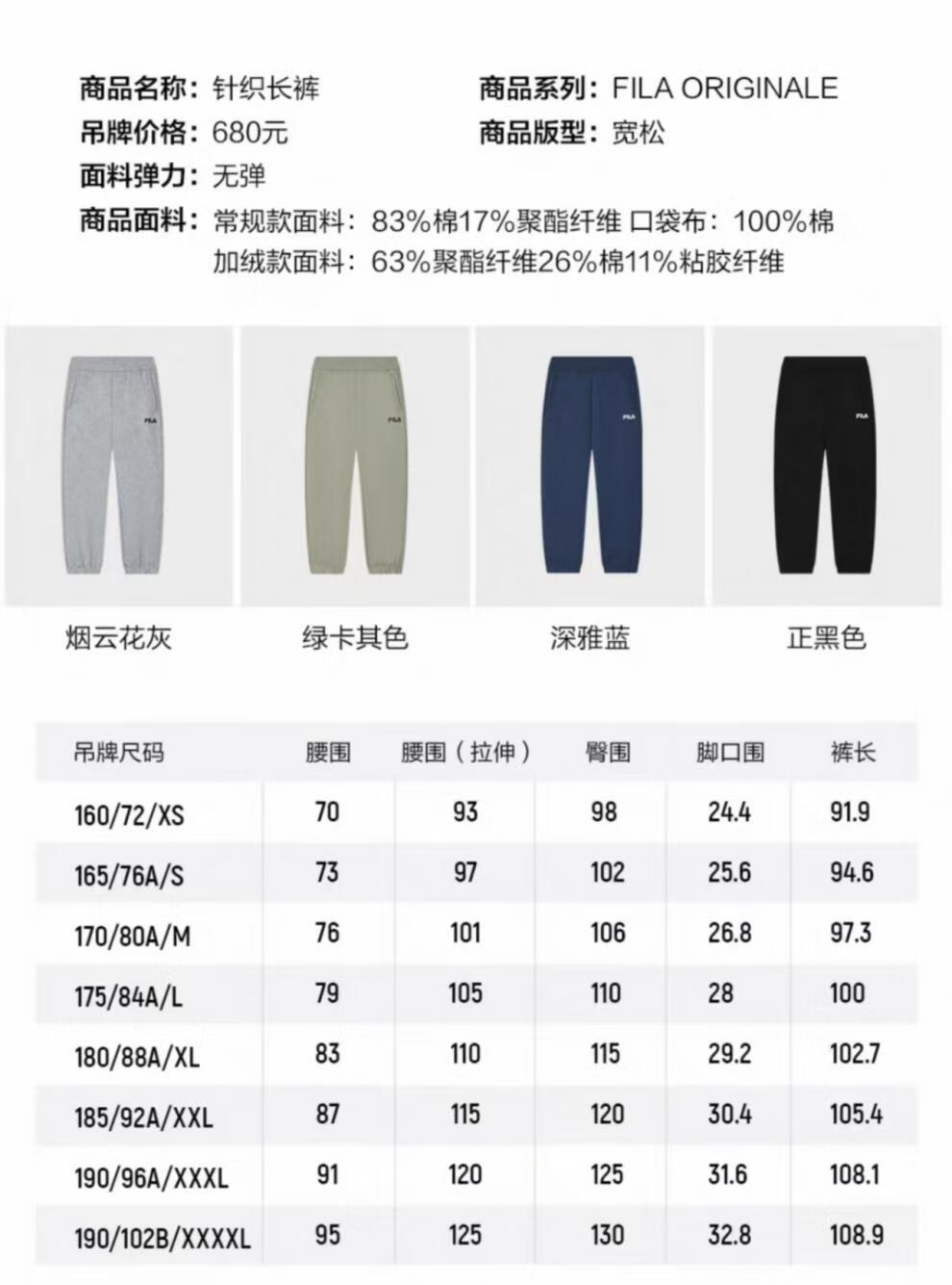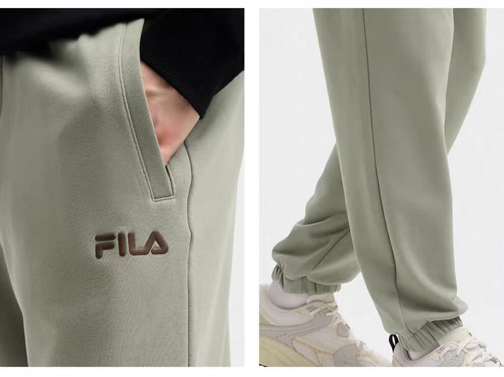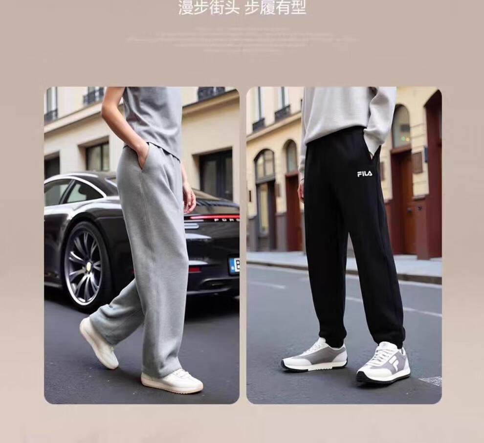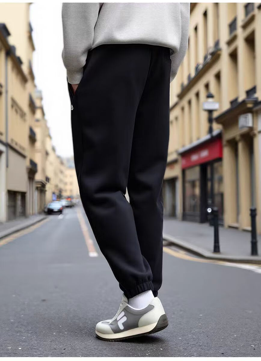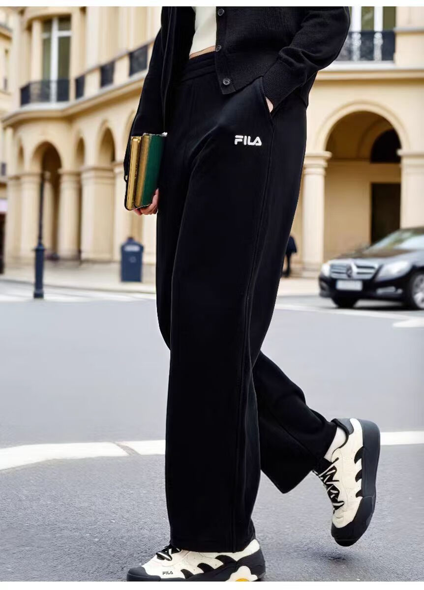 FILA couples knitted trousers 2025 new velvet casual sweatpants men's loose cuffed sweatpants women's official flagship F51W539604FBK black women's model S