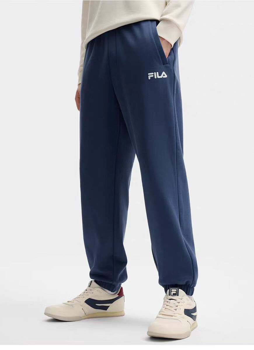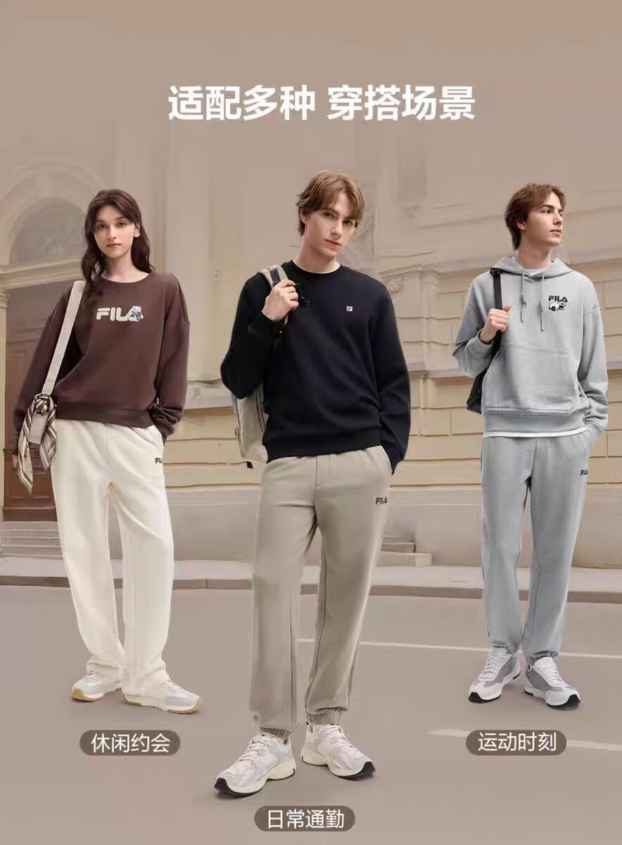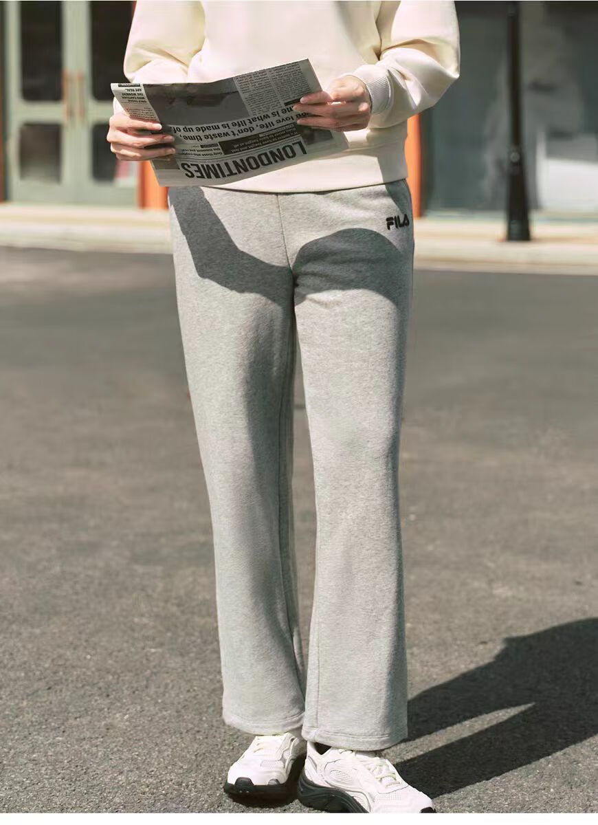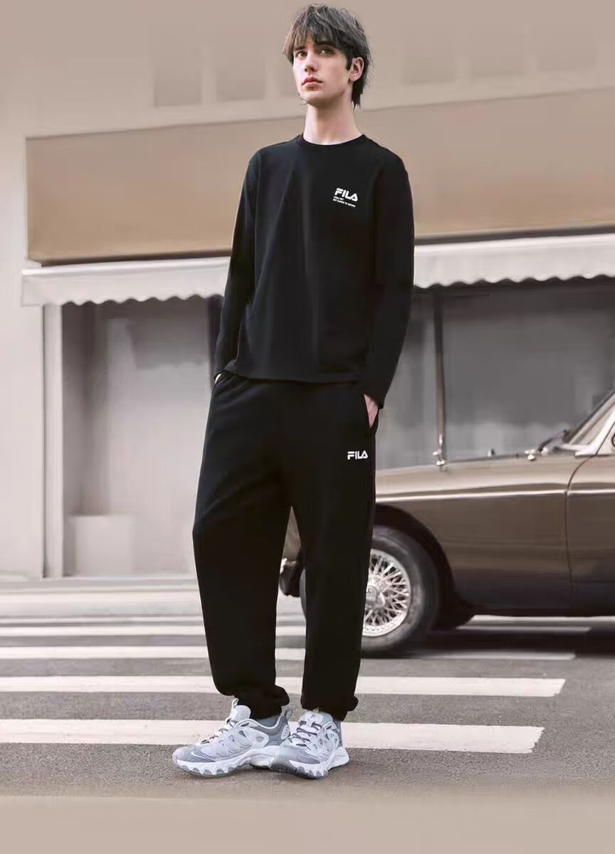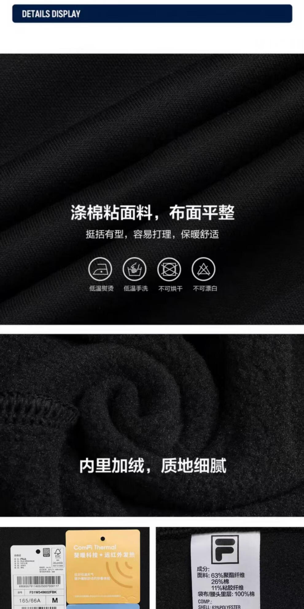 FILA couples knitted trousers 2025 new velvet casual sweatpants men's loose cuffed sweatpants women's official flagship F51W539604FBK black women's model S