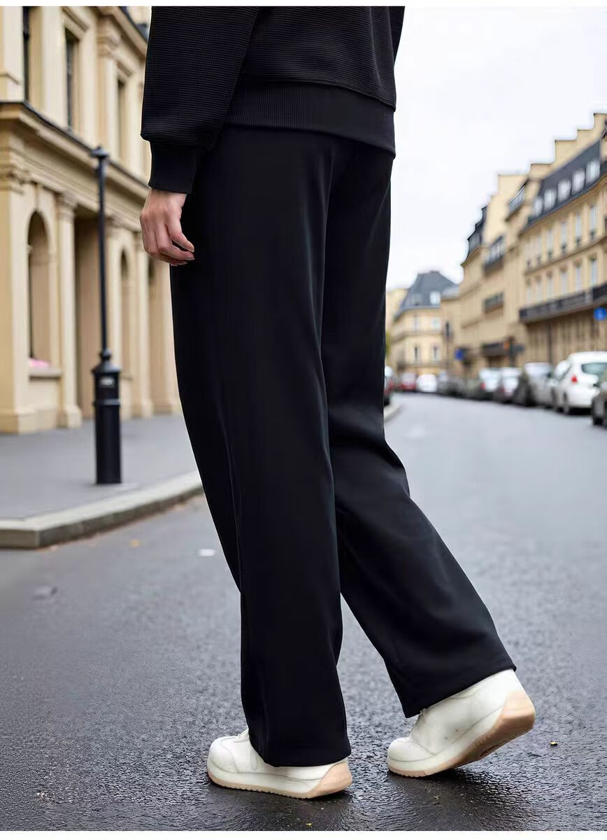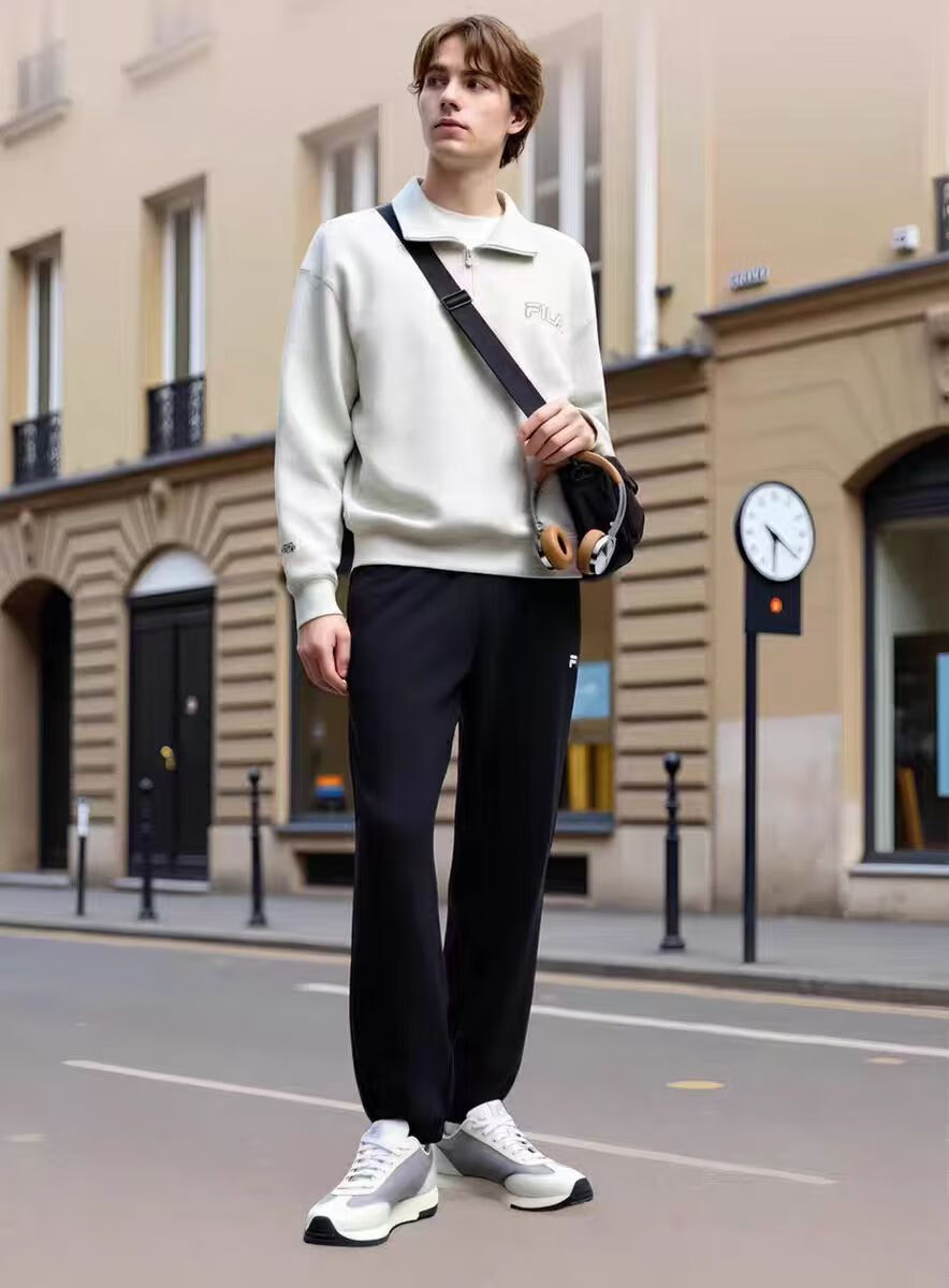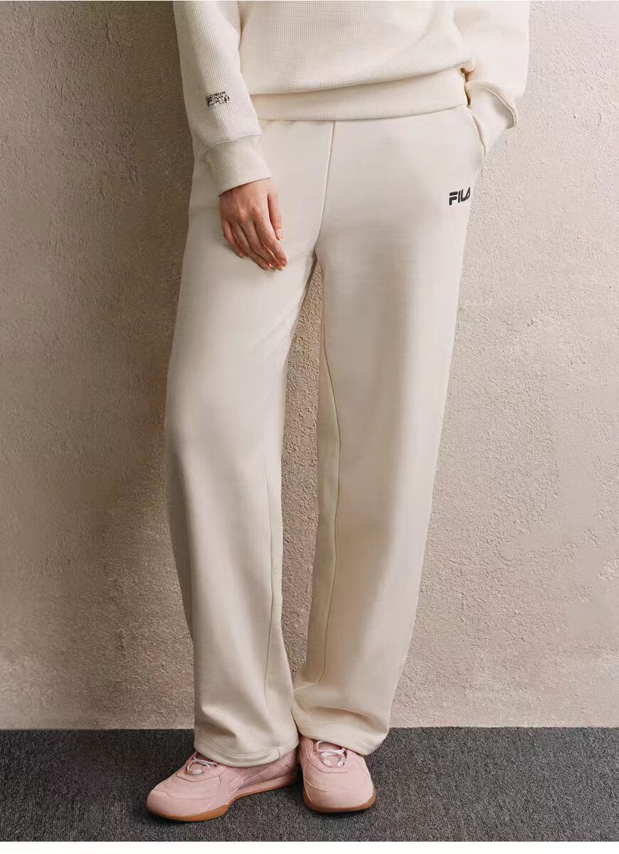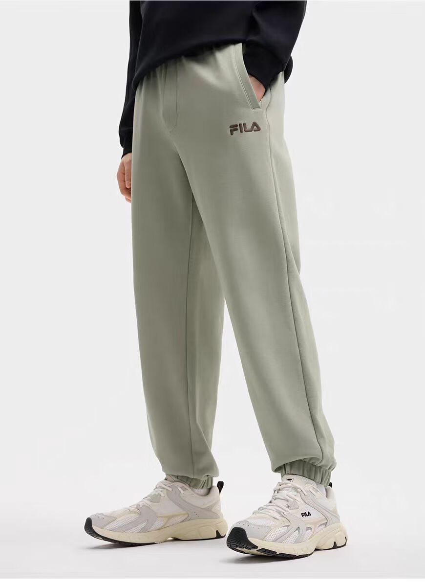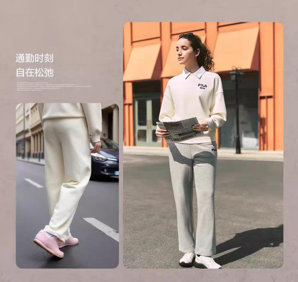 FILA couples knitted trousers 2025 new velvet casual sweatpants men's loose cuffed sweatpants women's official flagship F51W539604FBK black women's model S