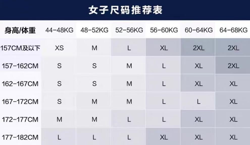 China (cm) 160-165/84-86 165-170 / 88-90 167-172 / 92-96 168-173 / 98-102 170-176 / 106-110