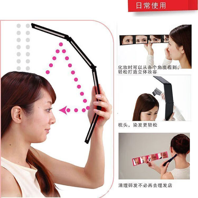 Foldable four-sided mirror for haircuts, you can see the back of your head for your own haircut, the rear view, portable, high-looking small mirror, black four-fold multi-angle mirror, you can see the back of your head)