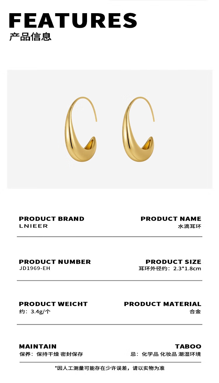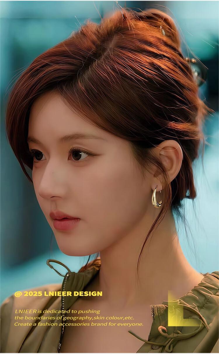Lnieer Xu Wo Dazzling Zhao Lusi's same gold water drop hoop earrings for women 2025 new high-end metal earrings Xu Yan's same gold water drop earrings