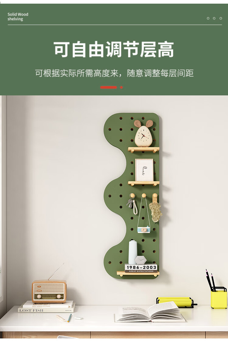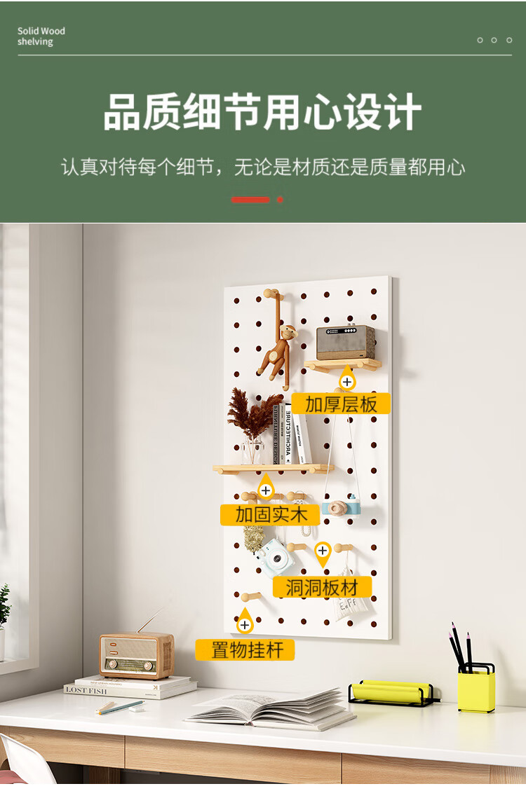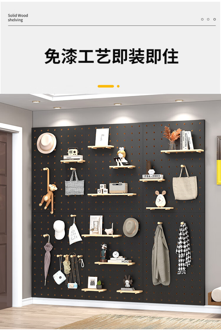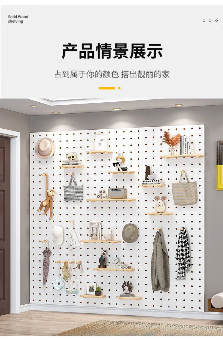 L AMAVO perforated board storage rack without punching holes on the wall solid wood desk partition accessories entrance wall blocking decorative storage rack accessories cartoon small flowers + colorful matchsticks 6 each Default