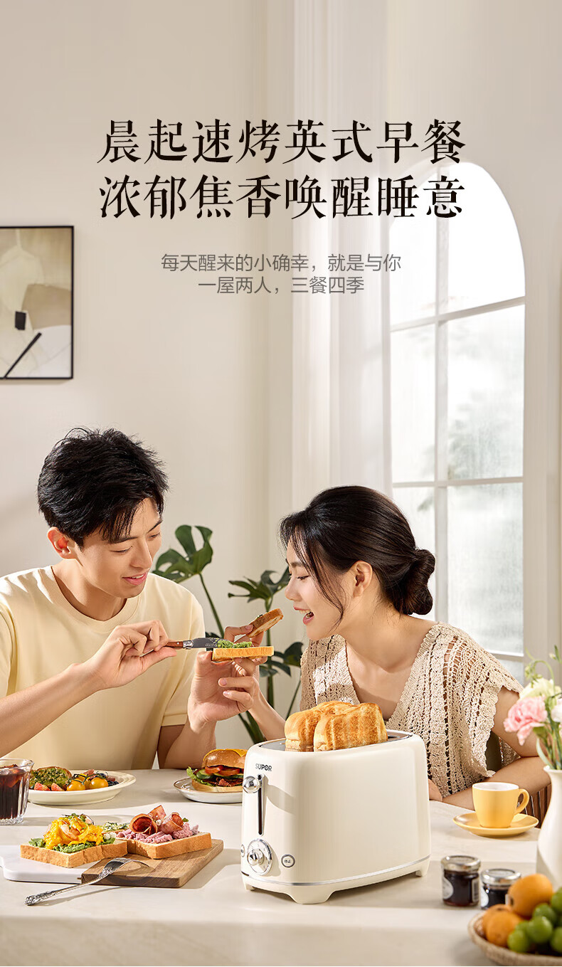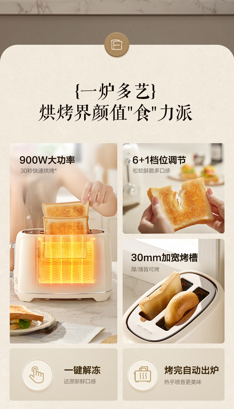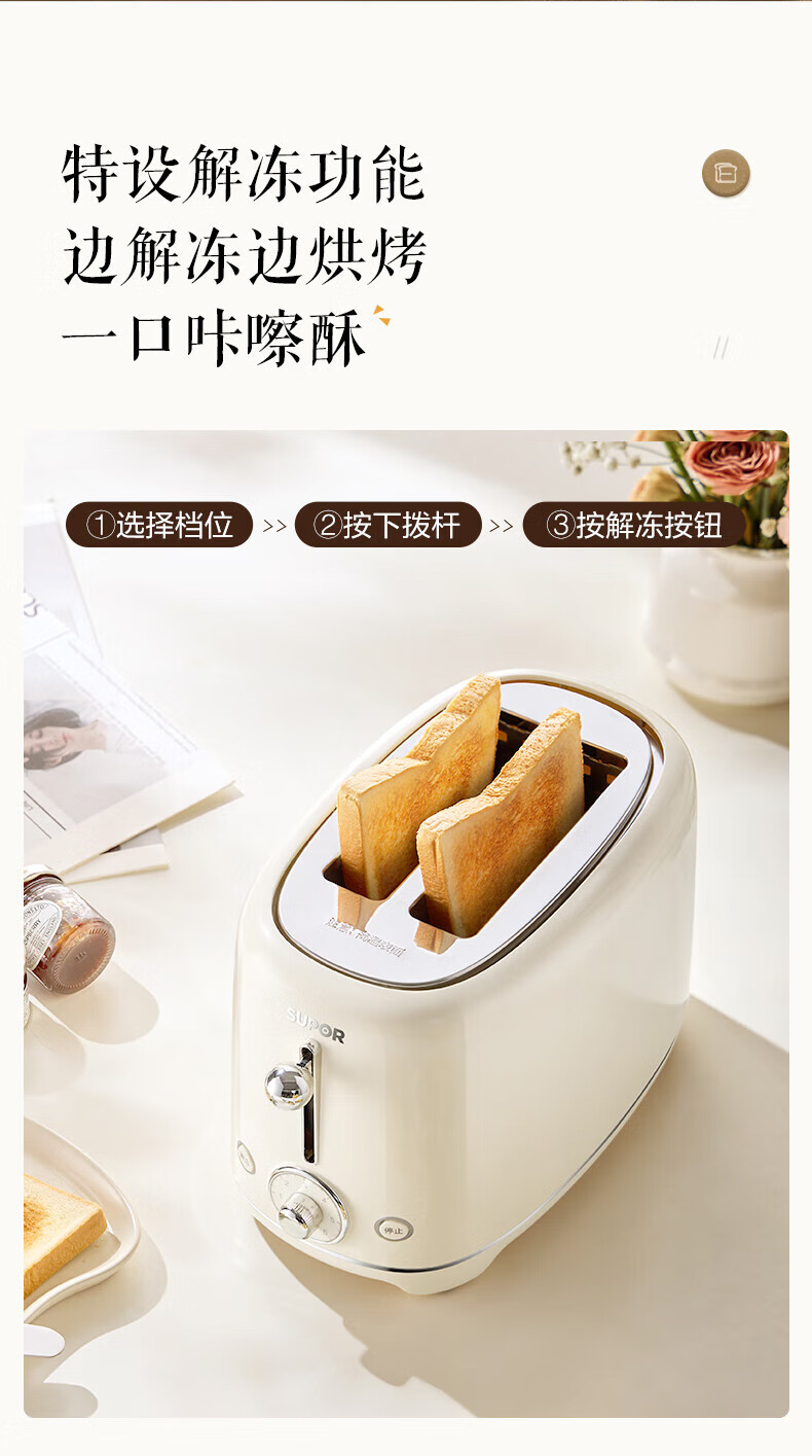 SUPOR bread machine, toaster, breakfast automatic household small toaster, toasted steamed bun slices, bread slices, sandwich, double-sided heating, reheating, thawing, 6 adjustable levels, 6+1 adjustable baking levels