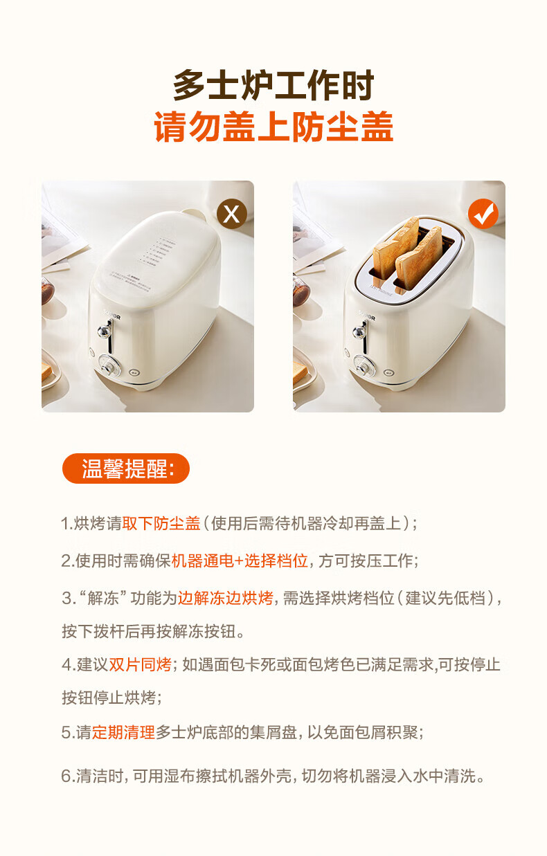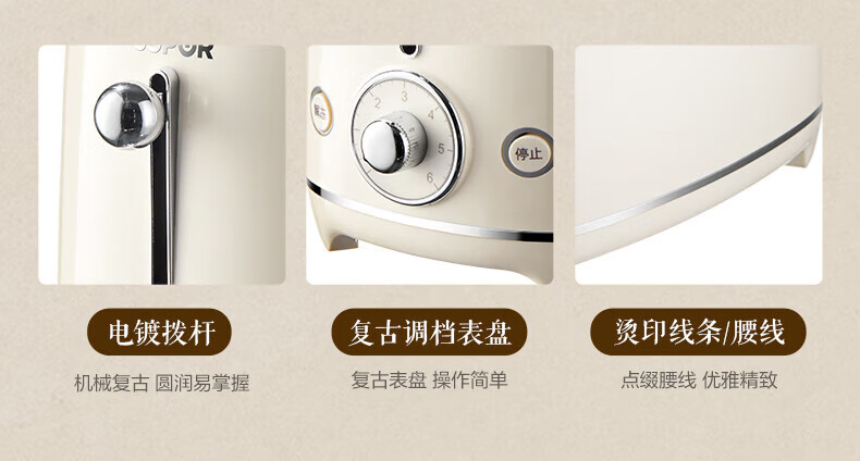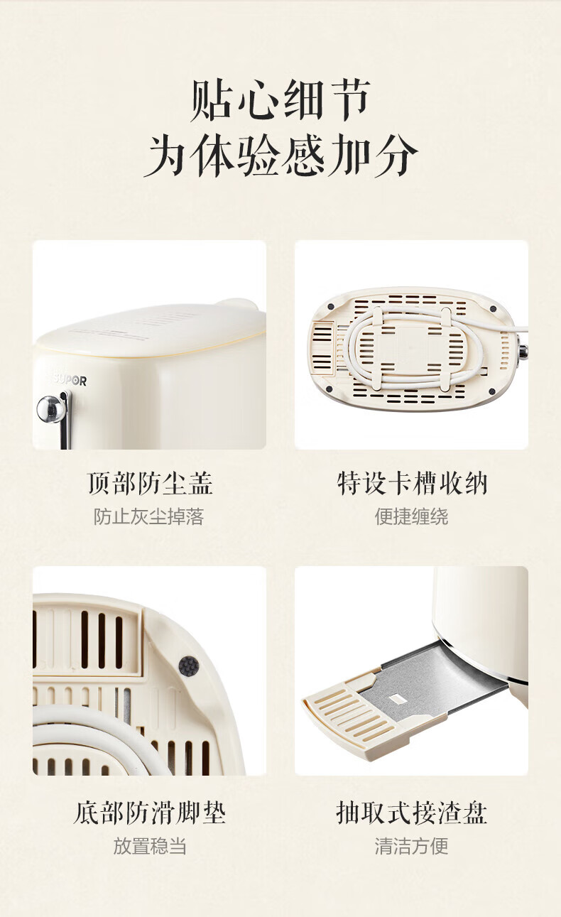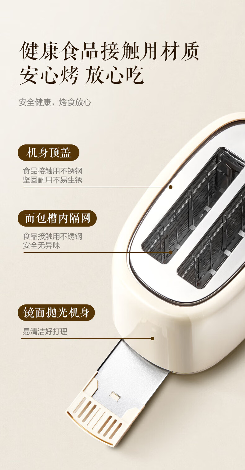 SUPOR bread machine, toaster, breakfast automatic household small toaster, toasted steamed bun slices, bread slices, sandwich, double-sided heating, reheating, thawing, 6 adjustable levels, 6+1 adjustable baking levels