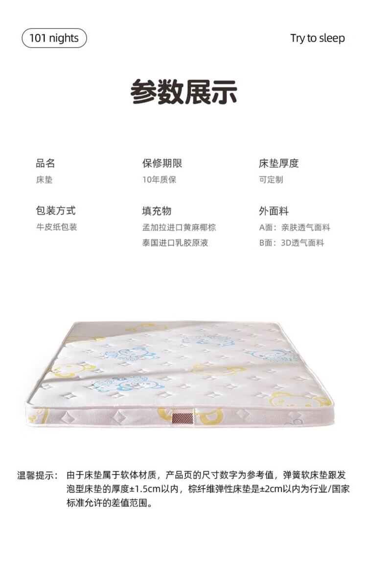 Xilinmen Children's Tatami Mattress Customized Any Size Household Folding Coconut Brown Latex Special Customized Single Bewa Bear Jute 3E Brown + Folding 8cm Thick 1800mm*2000mm