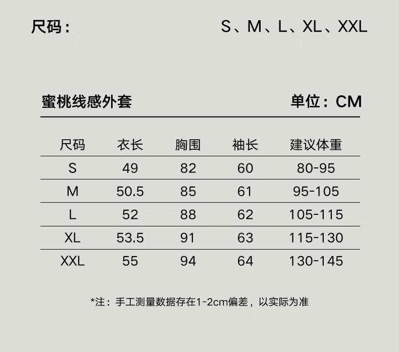 China (cm) 160-165/84-86 165-170 / 88-90 167-172 / 92-96 168-173 / 98-102 170-176 / 106-110