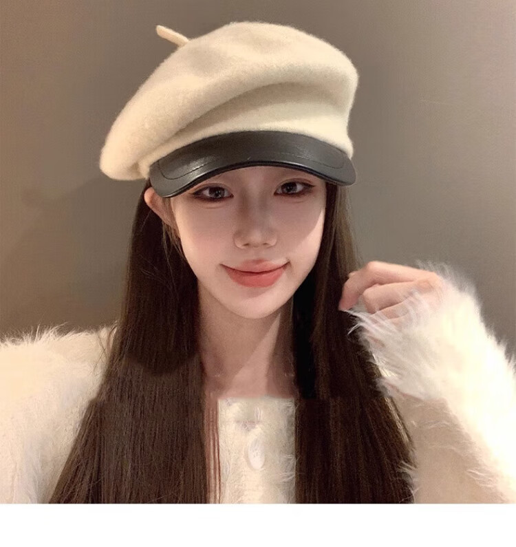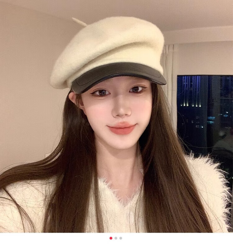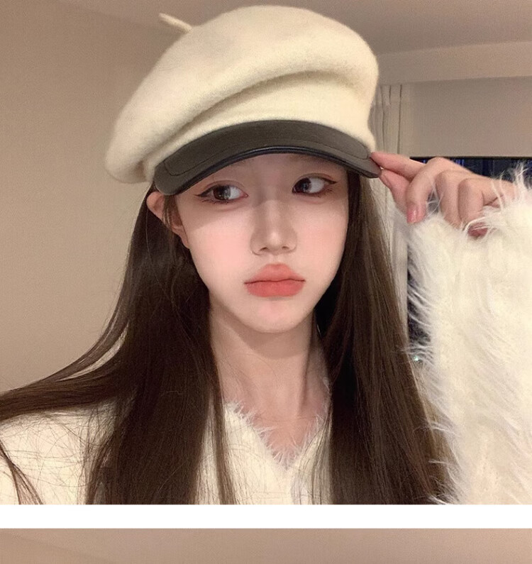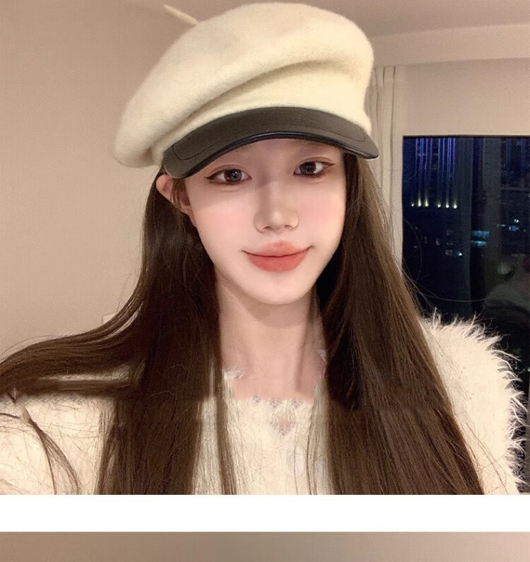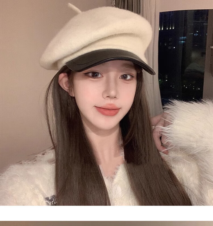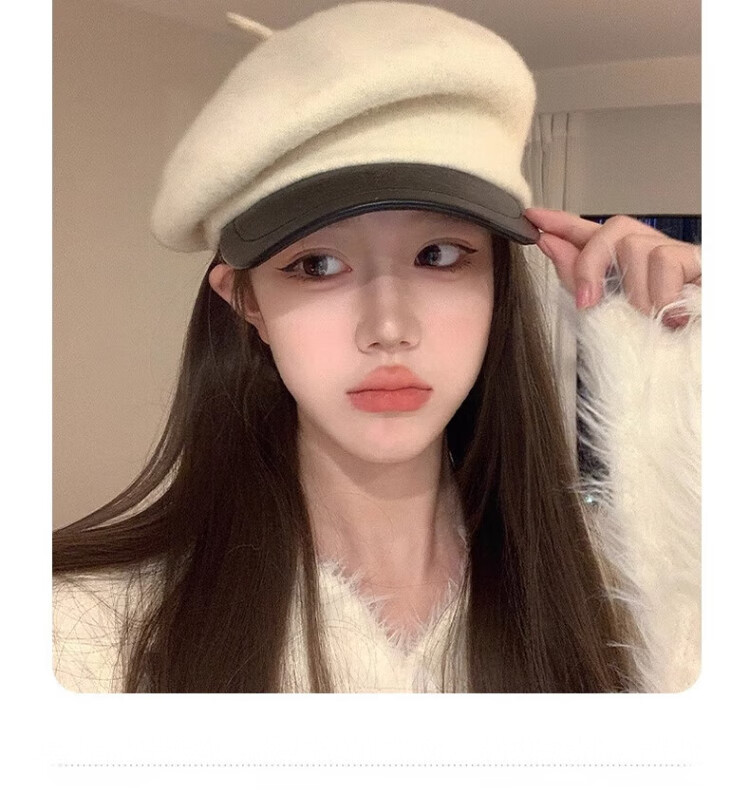 Wanjiazhen white beret women's autumn and winter versatile warm and face-friendly small octagonal hat British retro newsboy painter hat British beret main picture white