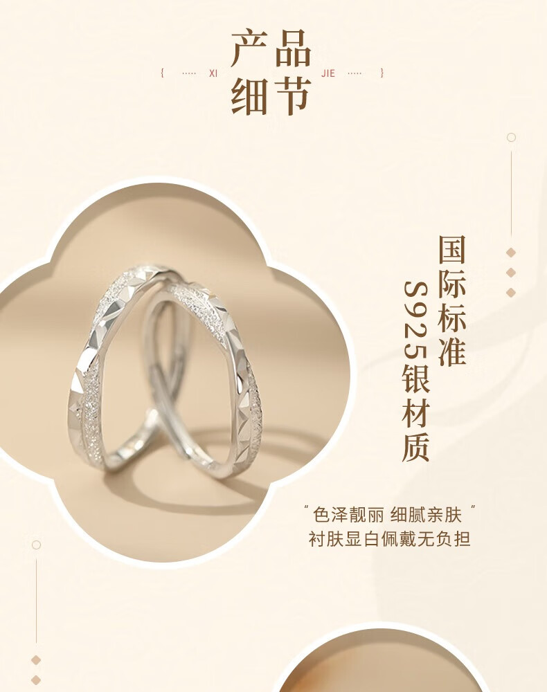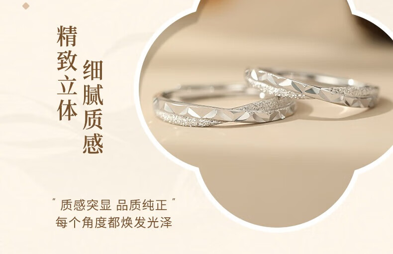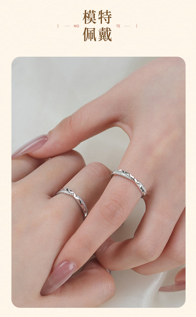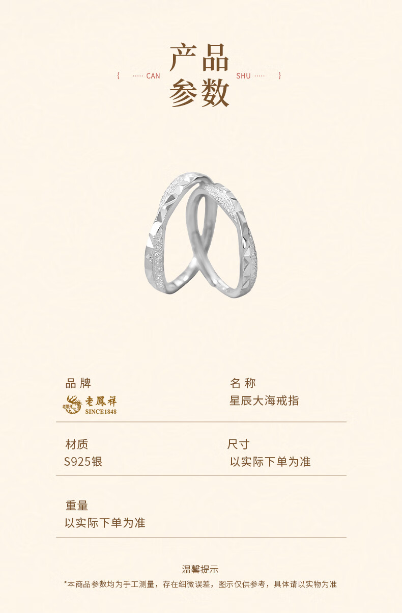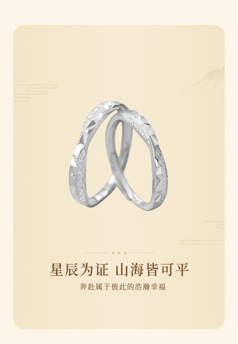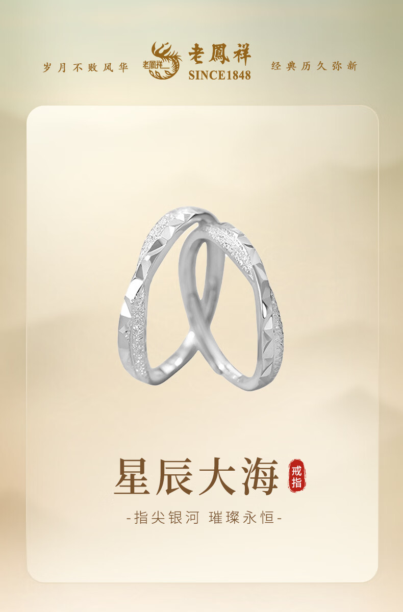 Lao Fengxiang sterling silver star and sea couple ring for boys and girls, light luxury and high-end ring, birthday and Valentine's Day gift for girlfriend, star and sea couple ring