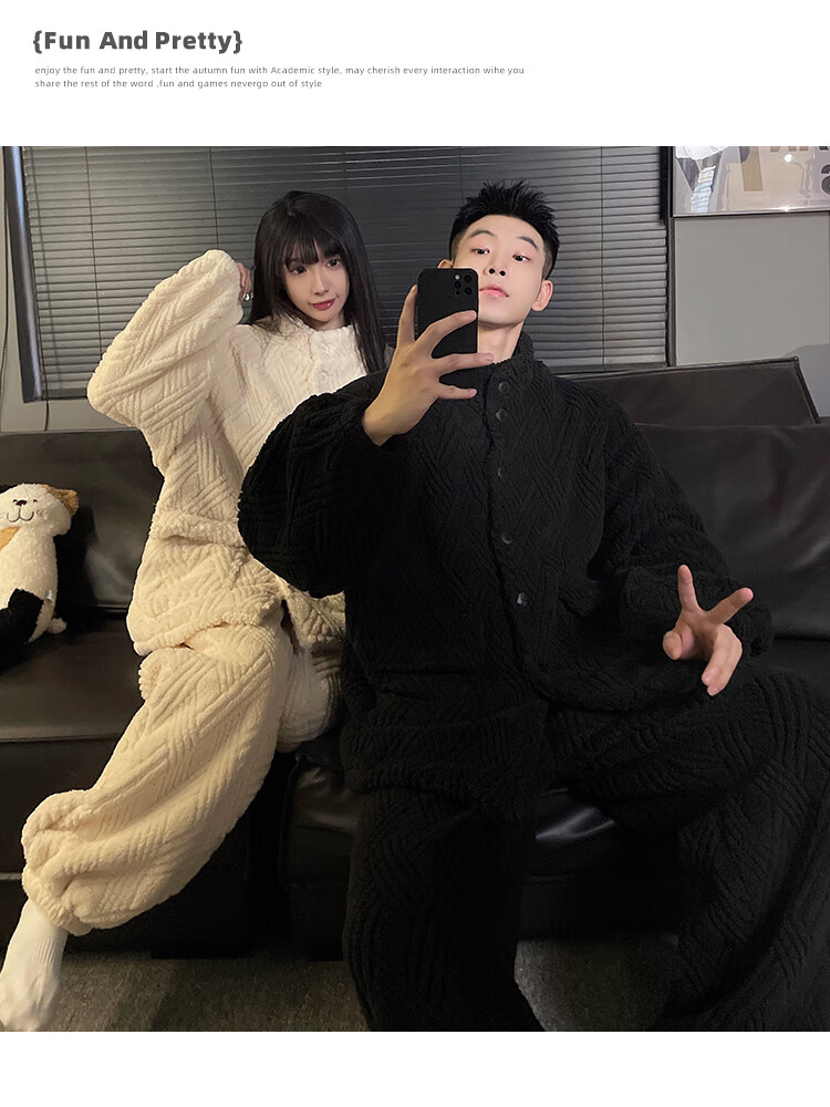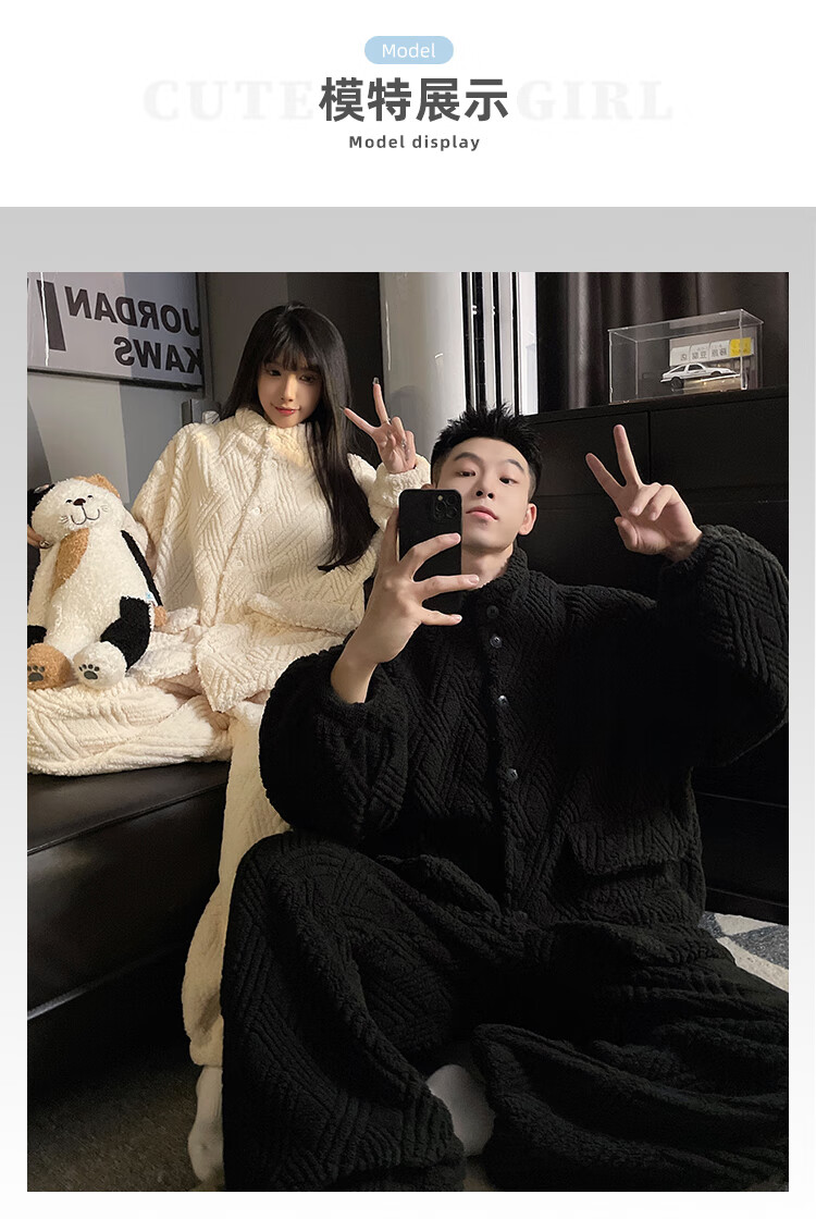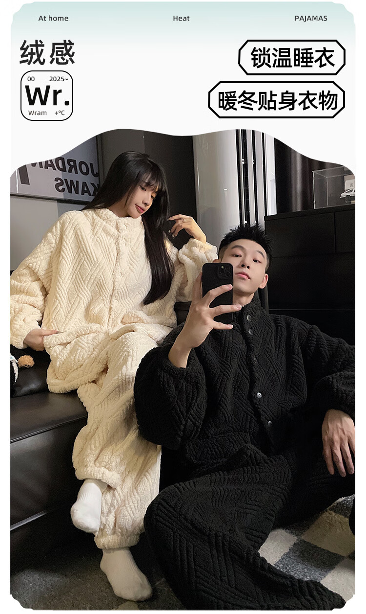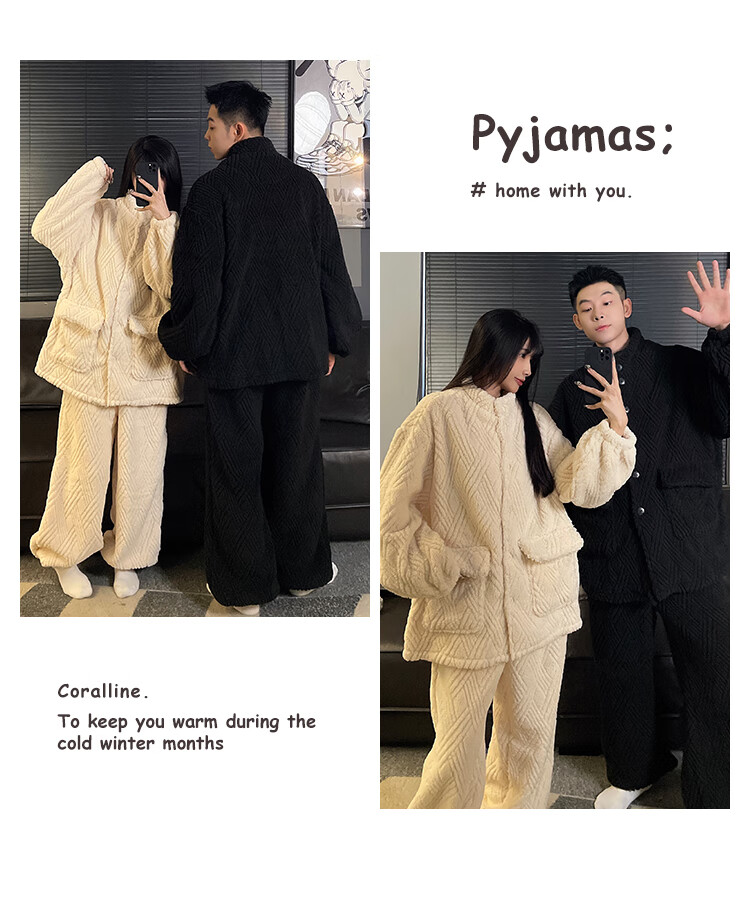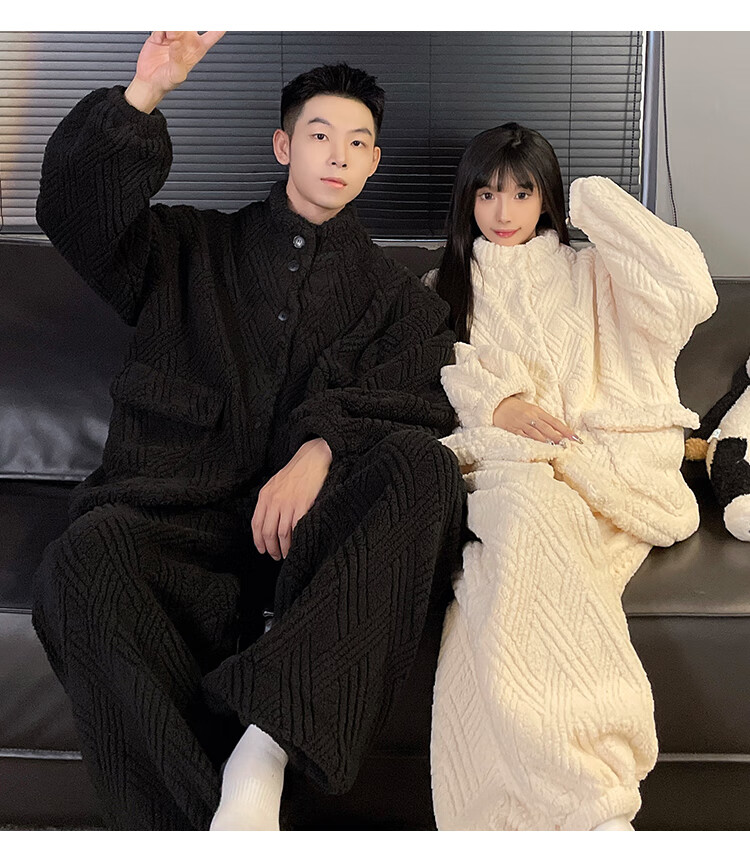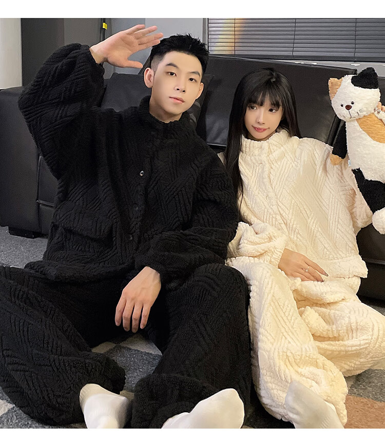 Modal 2025 New Winter Coral Fleece Couple Pajamas Women's Flannel Thickened Warm Men's Home Clothing Suit Winter 66842WM M Female (Recommended 80-100Jin Jin equals 0.5 kg)