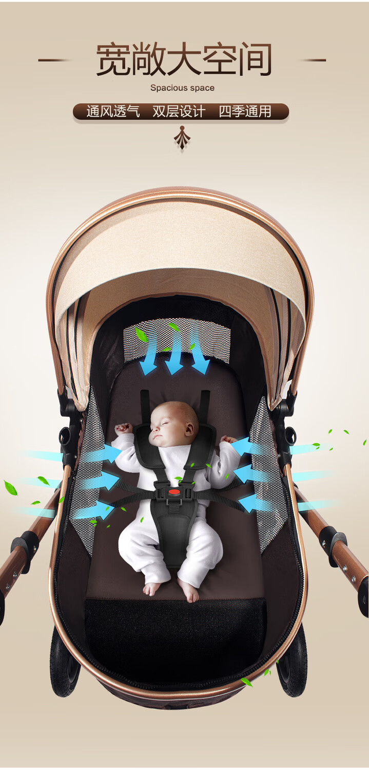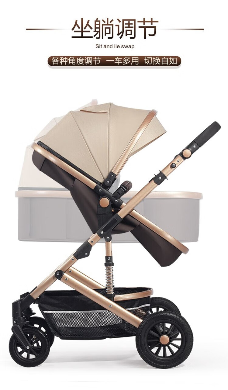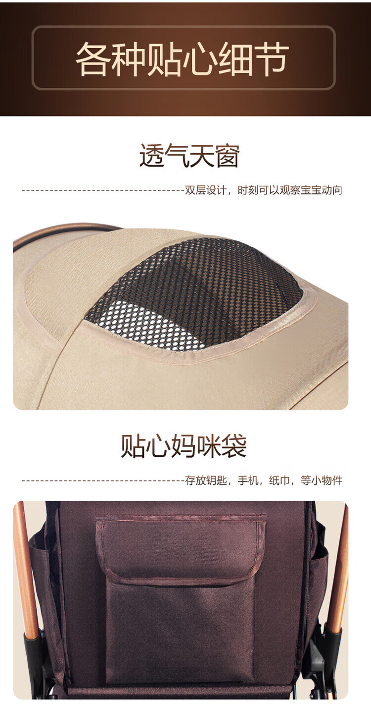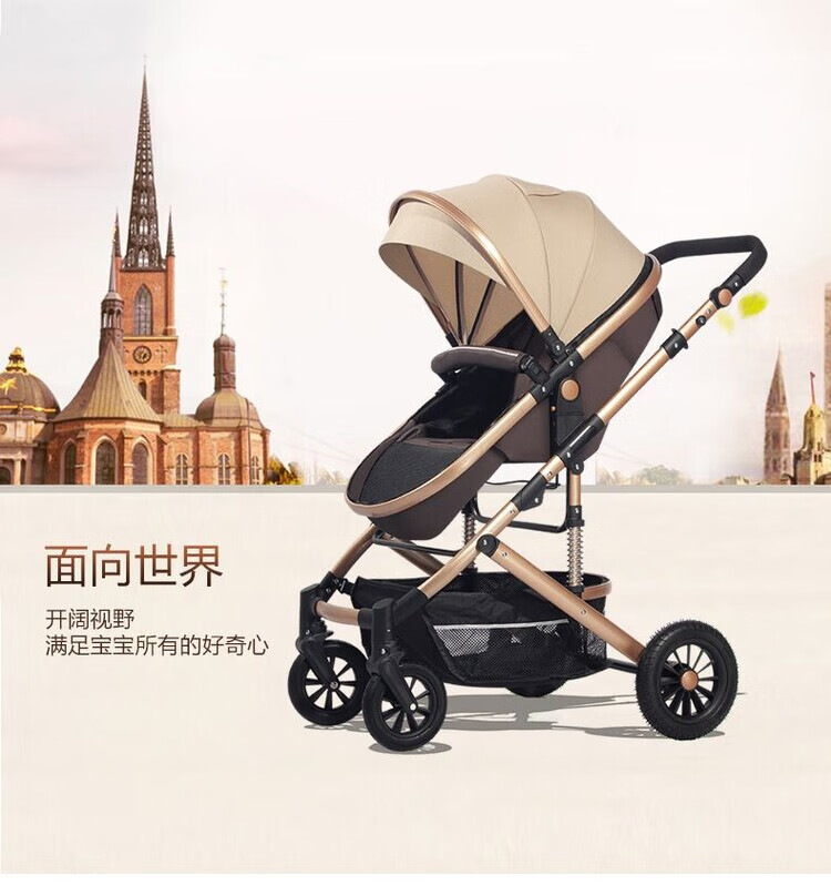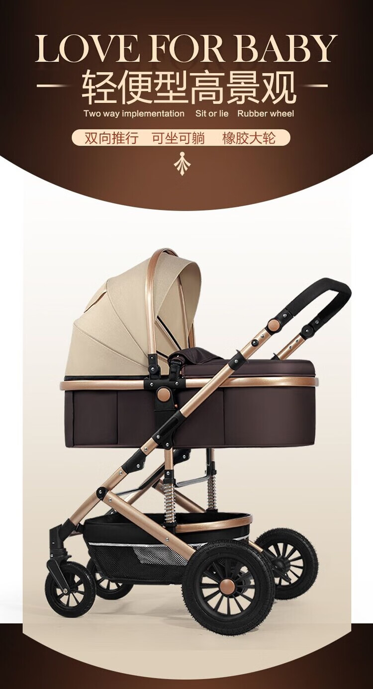 Yibaolai (yibaolai) 239,000 people have collected it. High-view baby stroller that can sit and lie down. Foldable baby stroller for all seasons. Khaki Luxury Model - Large Rubber Four-Wheel Aluminum Tube Plus Gift Pack