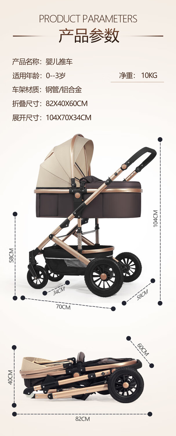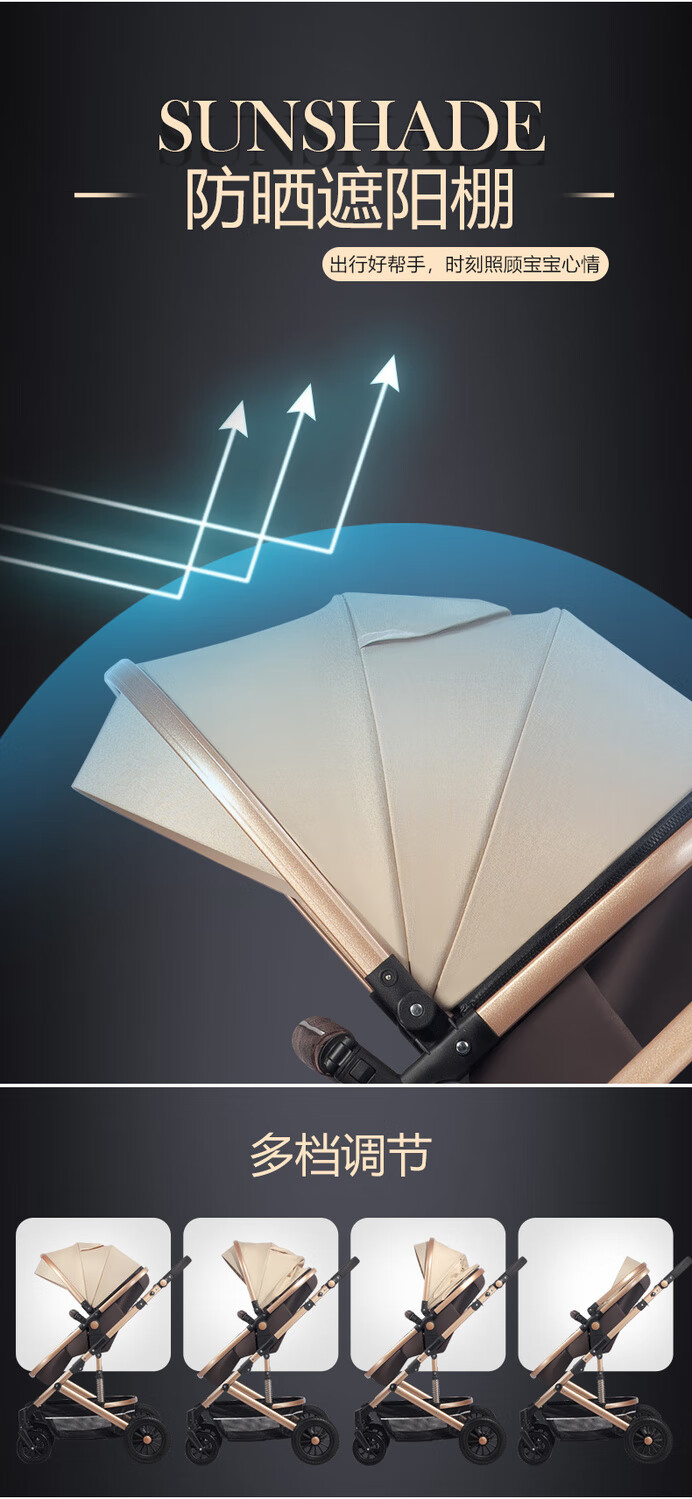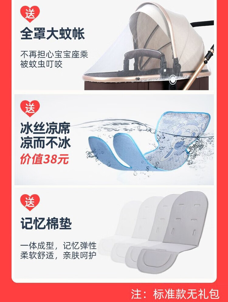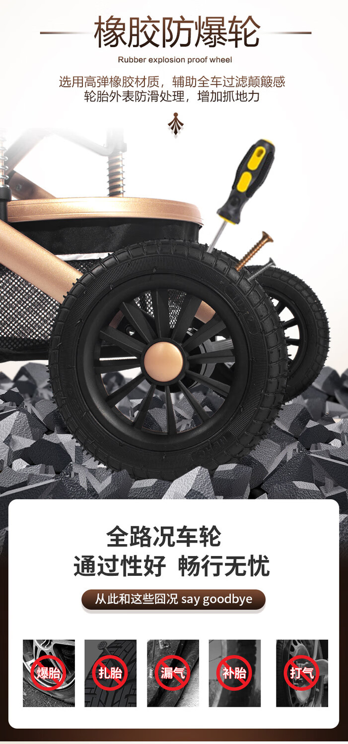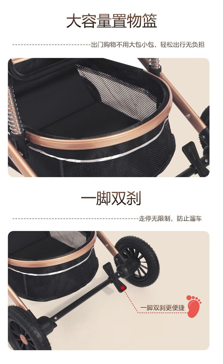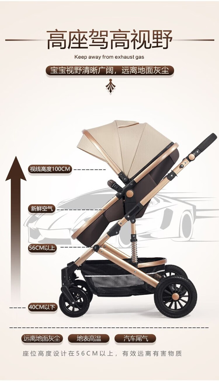 Yibaolai (yibaolai) 239,000 people have collected it. High-view baby stroller that can sit and lie down. Foldable baby stroller for all seasons. Khaki Luxury Model - Large Rubber Four-Wheel Aluminum Tube Plus Gift Pack