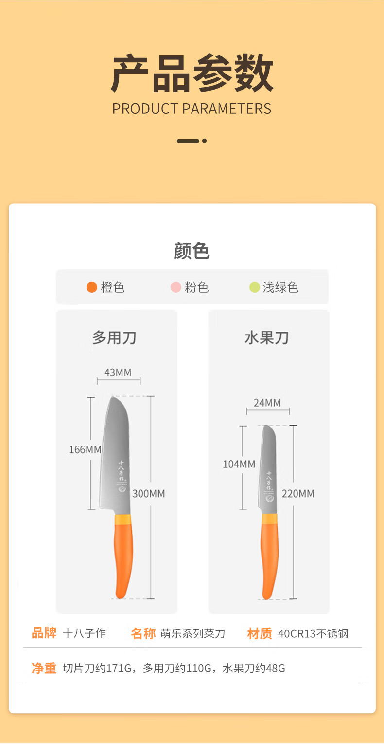 Shibazi makes small kitchen knife, slicing knife, fruit knife, multi-purpose knife, dopamine candy color, Menle multi-purpose knife (orange)