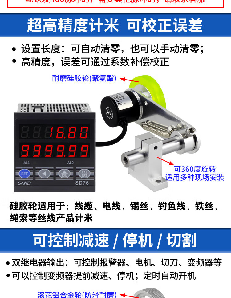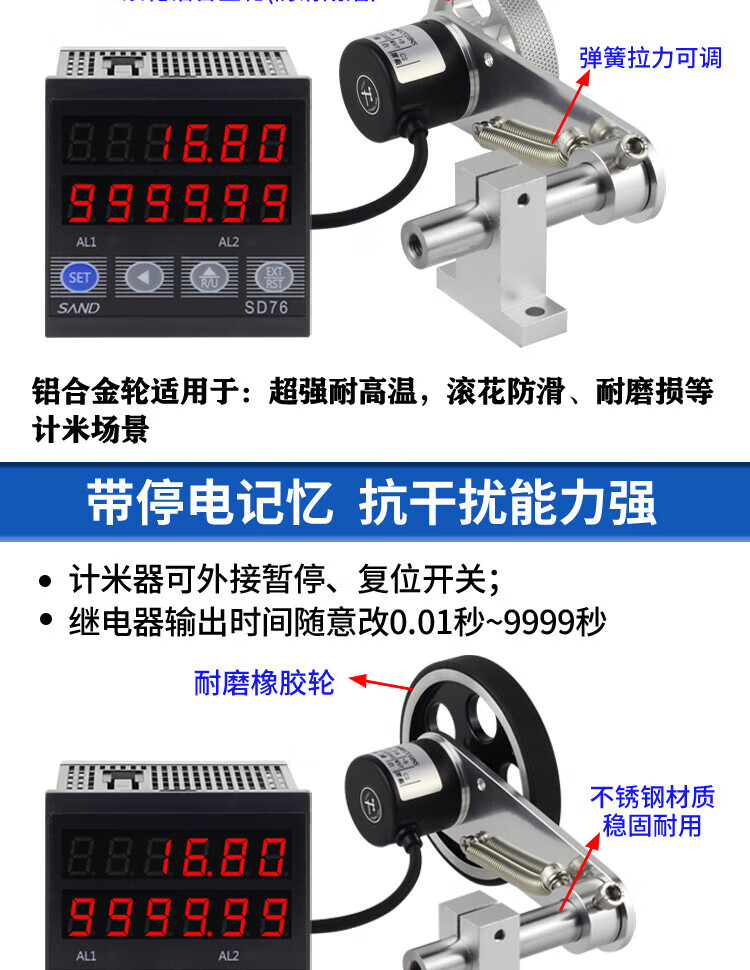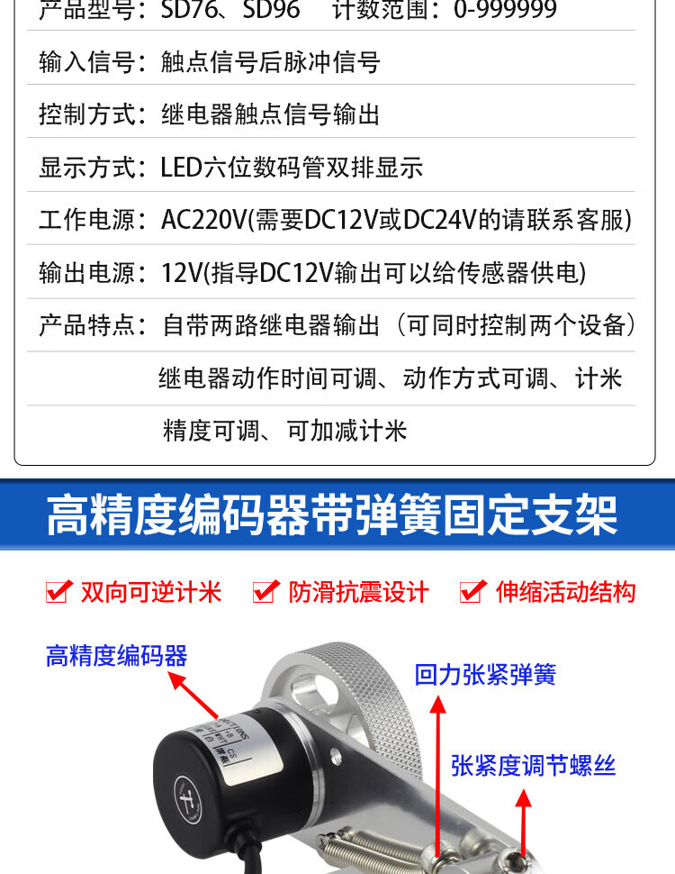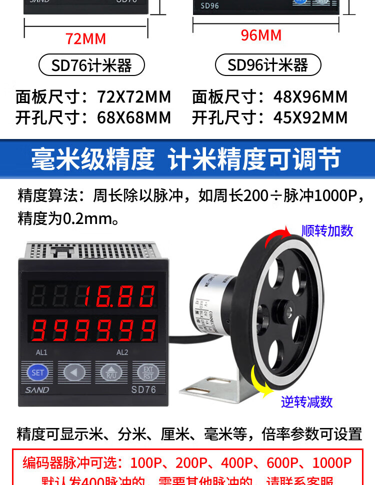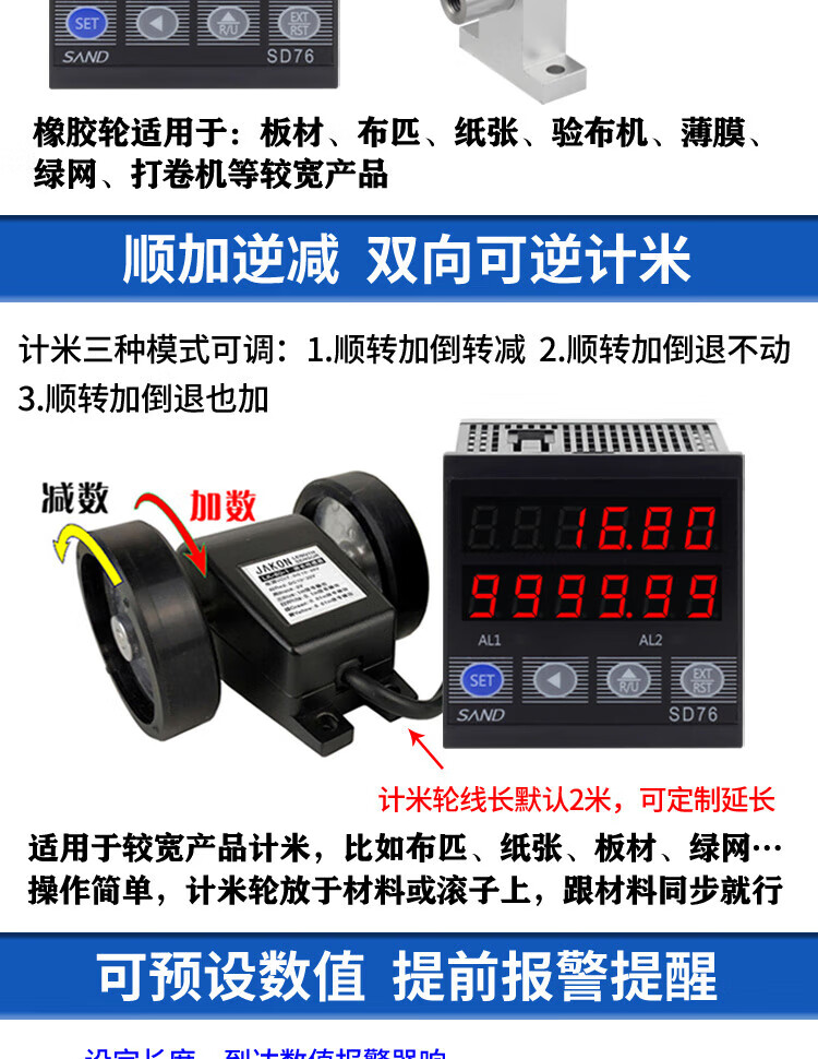 Meter counter electronic digital display SD76 intelligent meter counter roller type high-precision encoder controller length code table SD76 meter counter single table