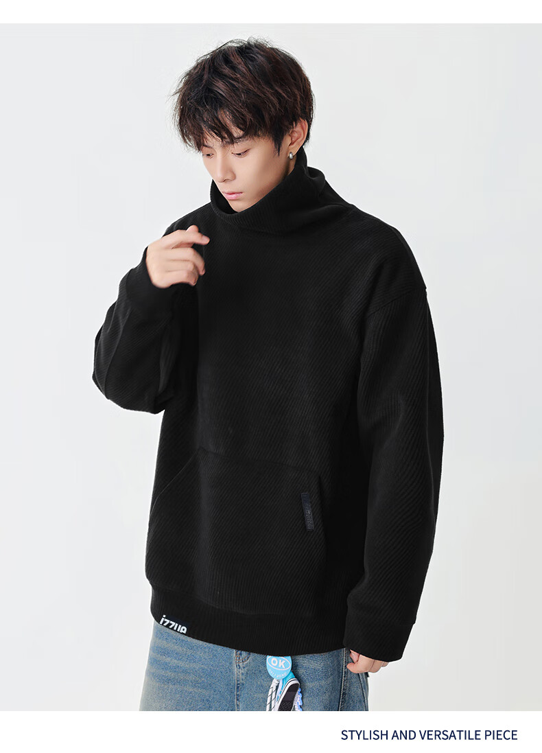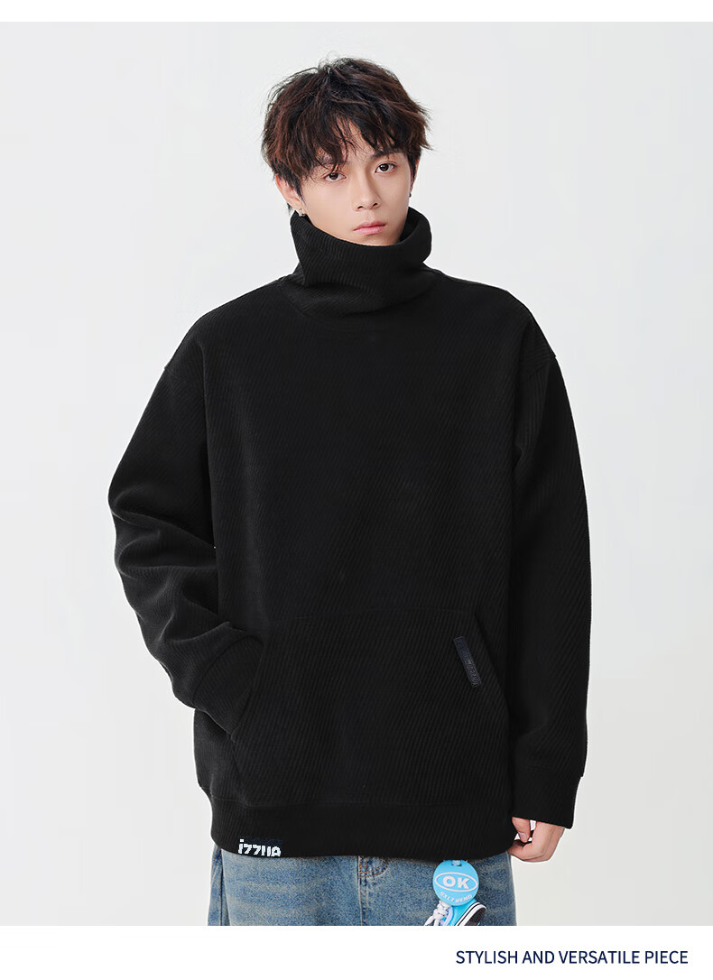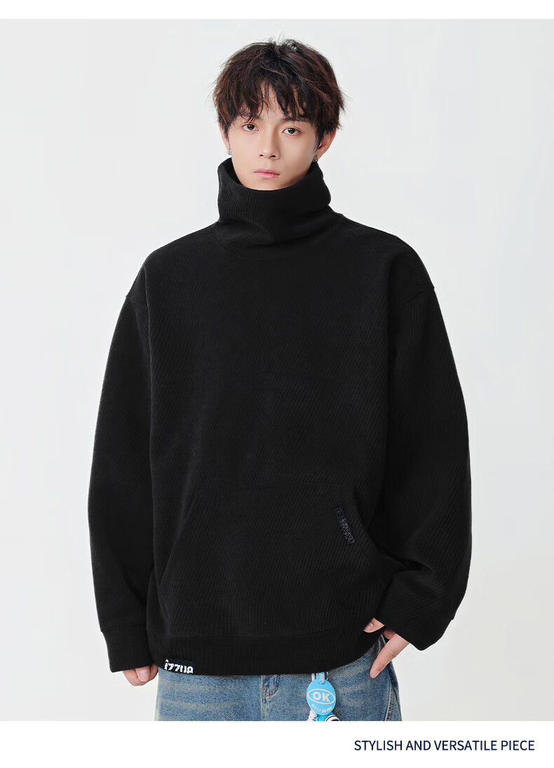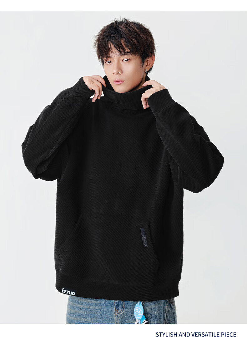 Izzue it Hong Kong trendy brand turtleneck sweatshirt men's autumn and winter American retro loose casual pullover top jacket dark gray official authentic M