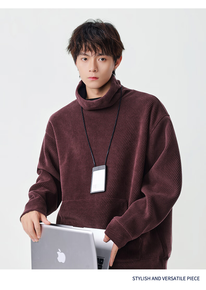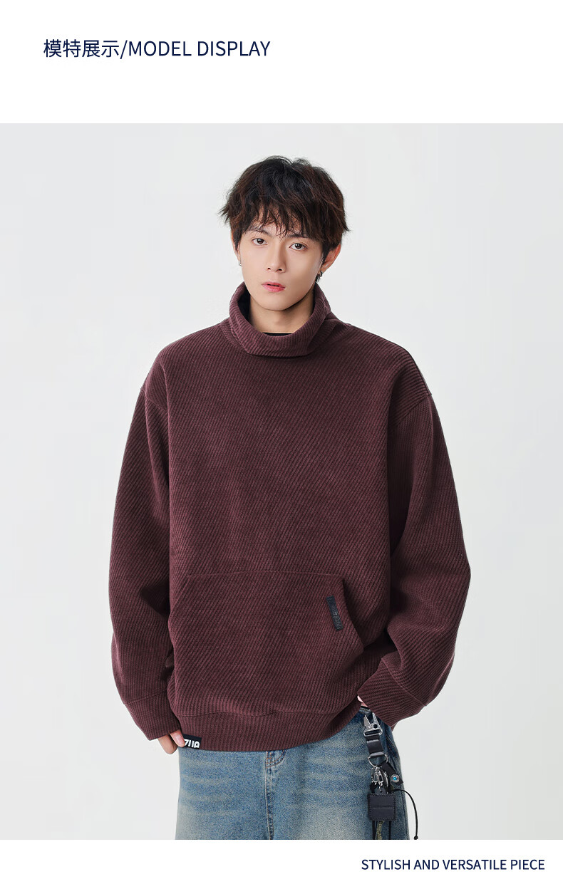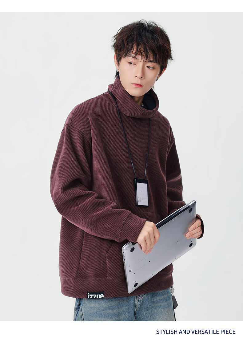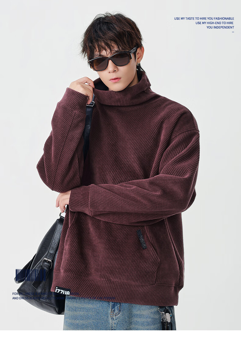 Izzue it Hong Kong trendy brand turtleneck sweatshirt men's autumn and winter American retro loose casual pullover top jacket dark gray official authentic M