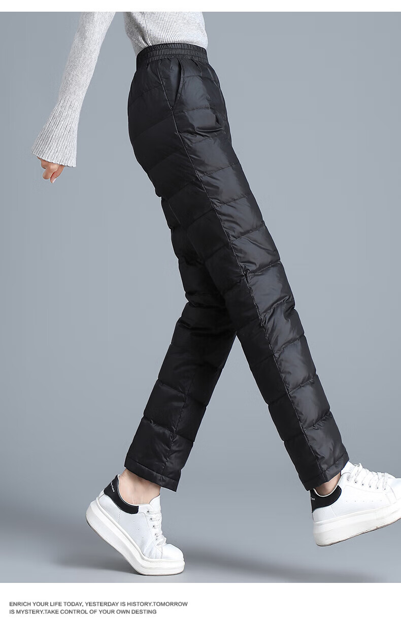 Yalu Down Pants Women's Outerwear Slimming 2025 Winter New Thickened Casual Straight High Waist Warm Women's Straight Trousers Black L
