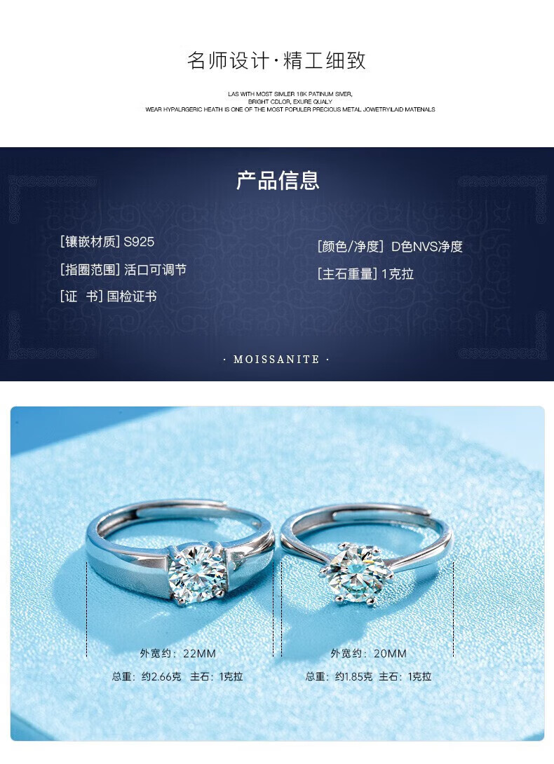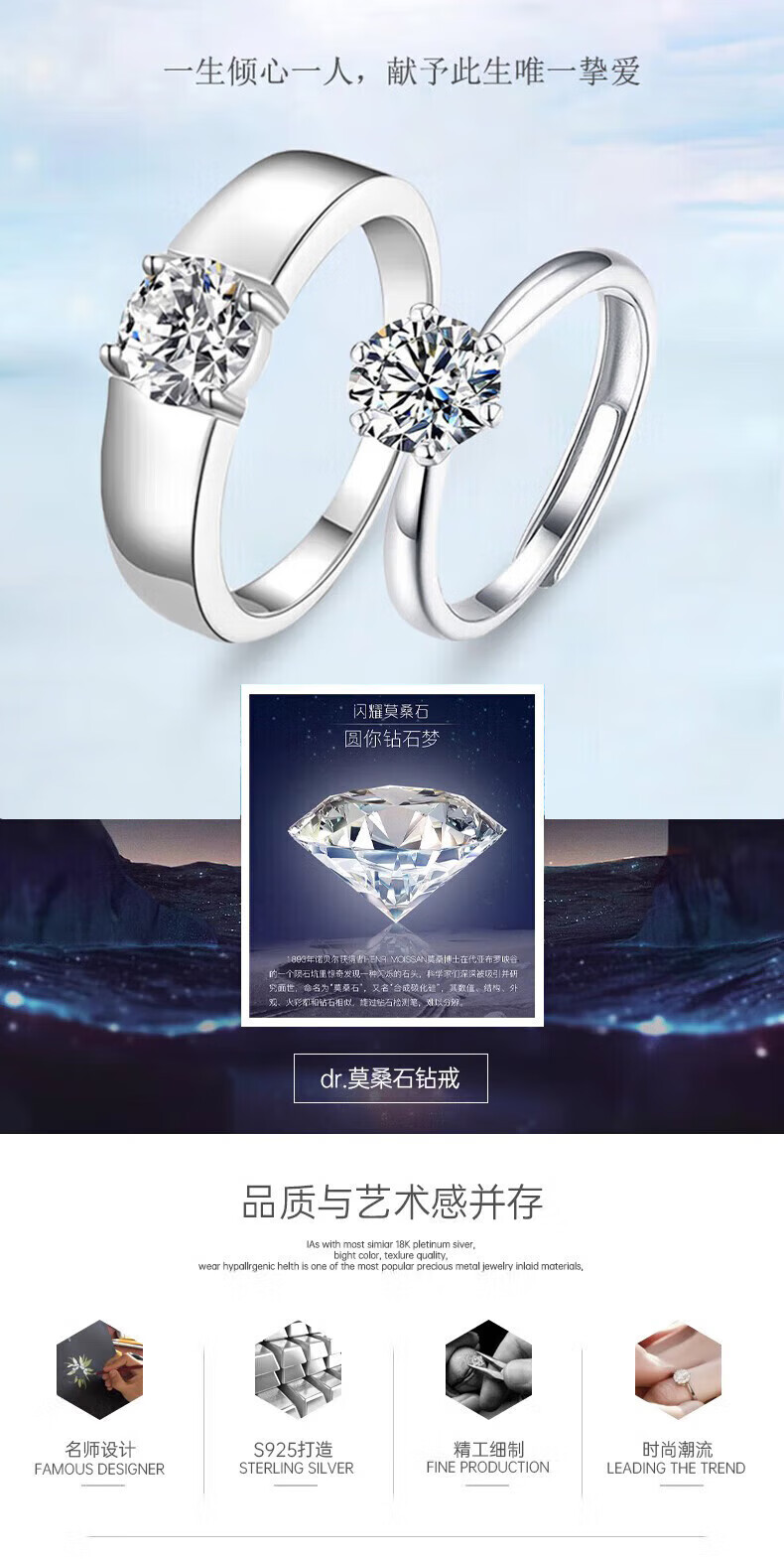 DR Proposal Diamond Ring 1 Carat Moissanite Couple Ring Silver Ring Girlfriend Wife Birthday Gift