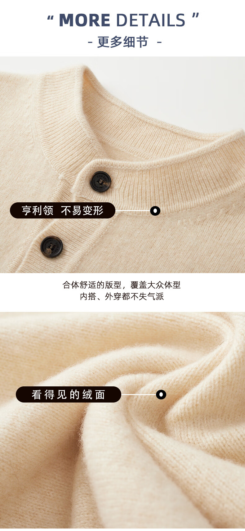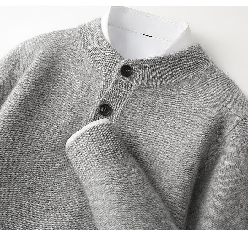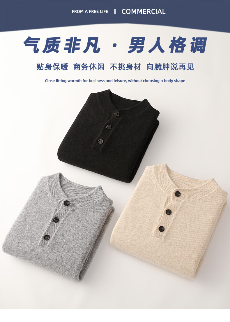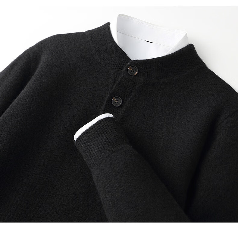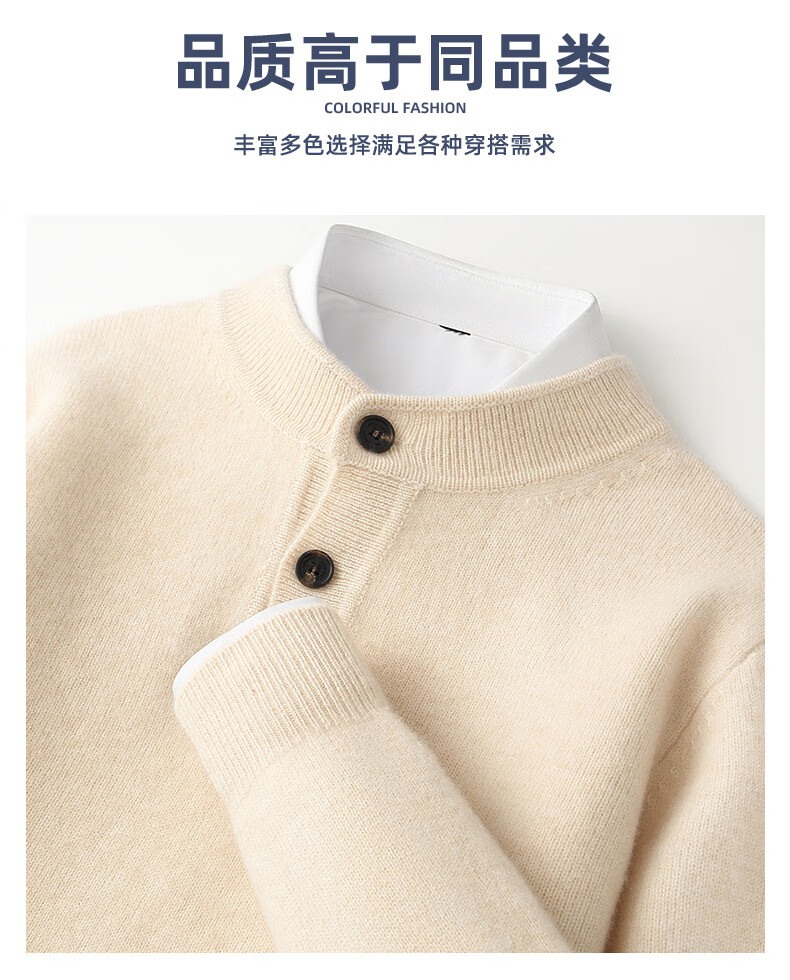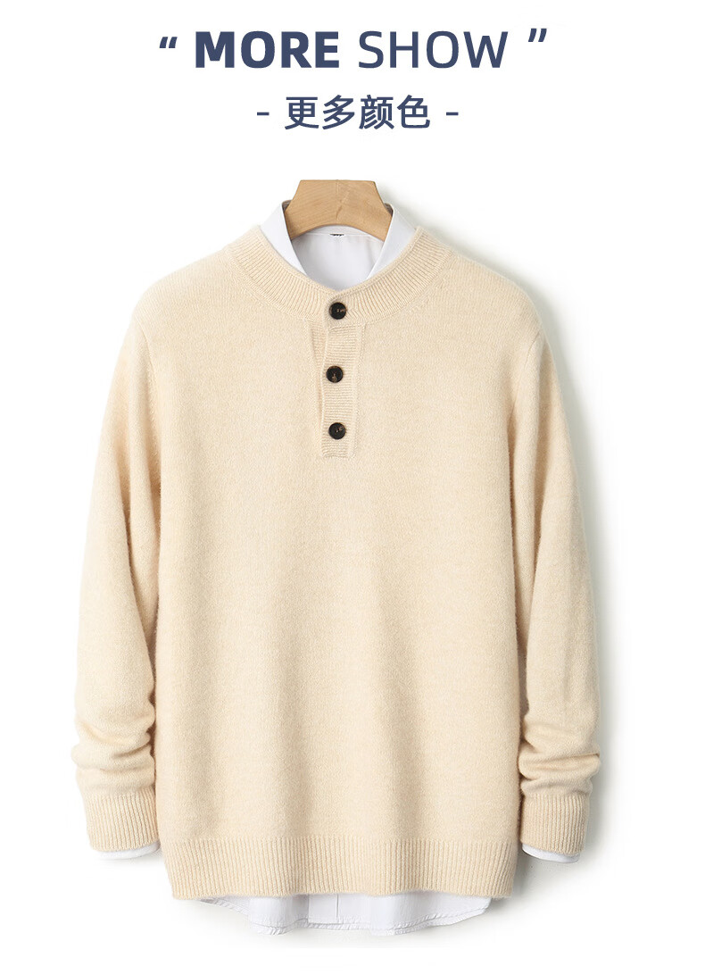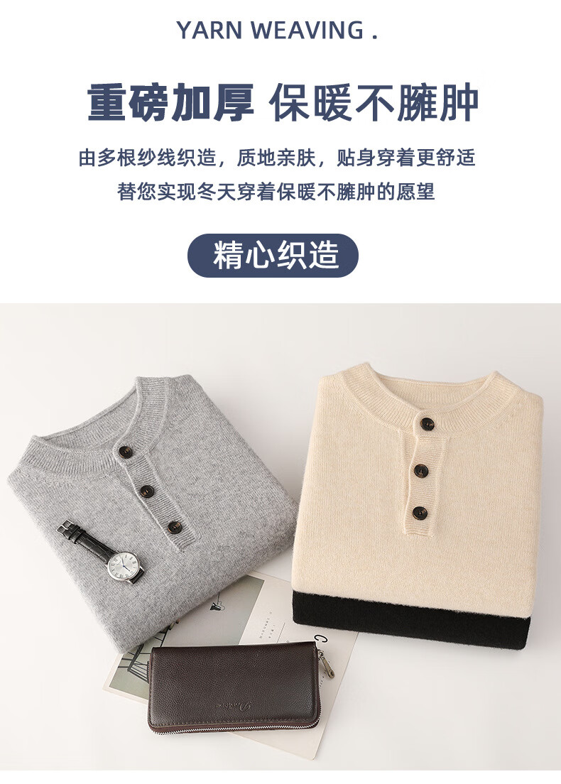 EMZ Ordos thickened Henry collar cardigan men's round neck half-buttoned autumn and winter bottoming shirt warm knitted top this blue S
