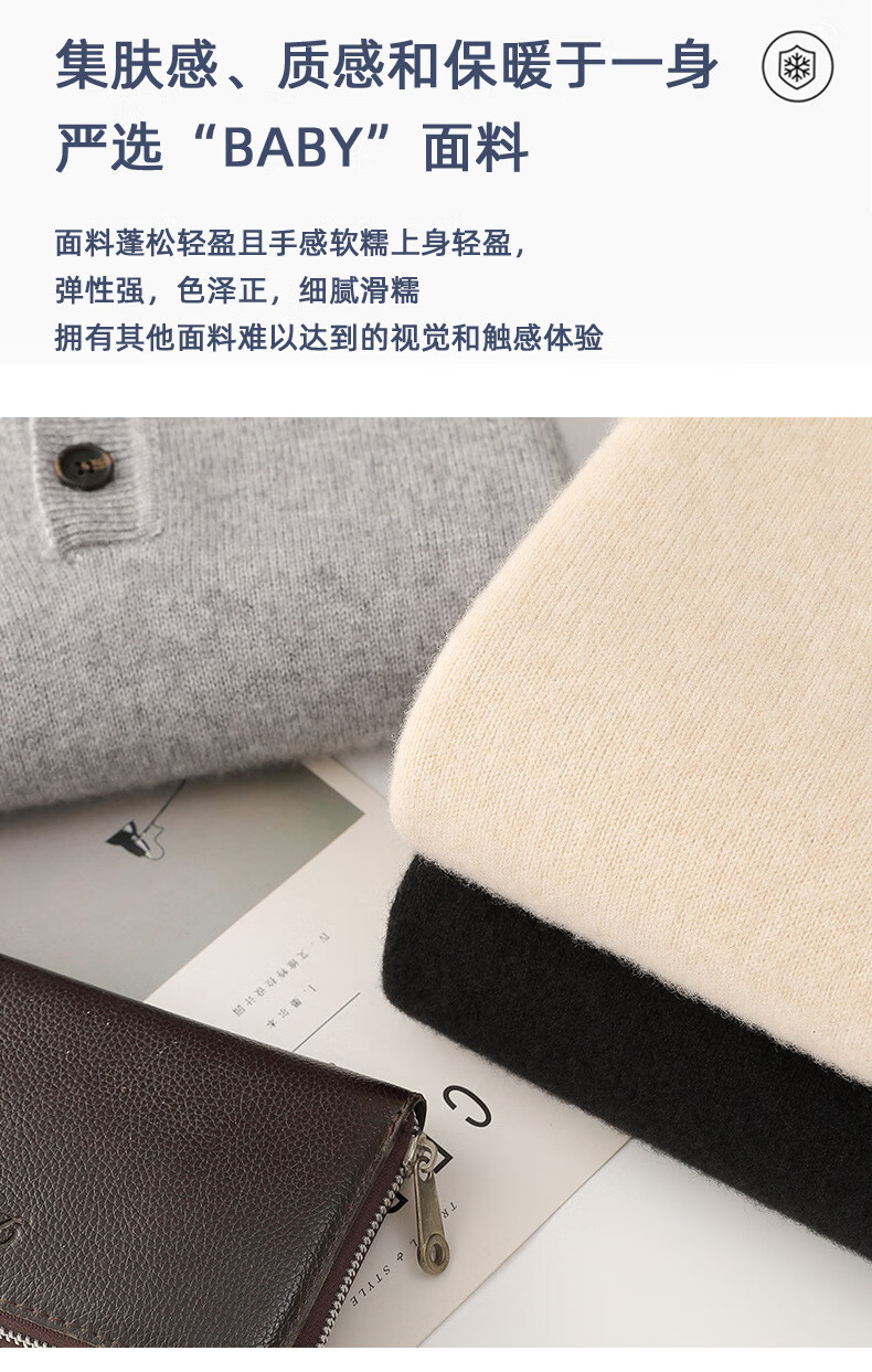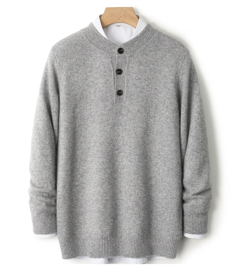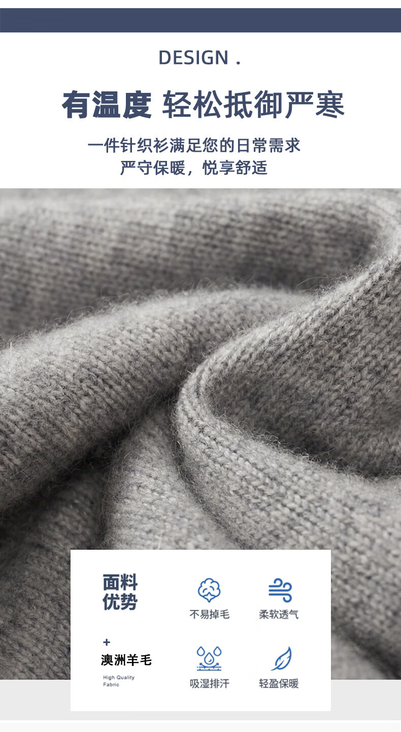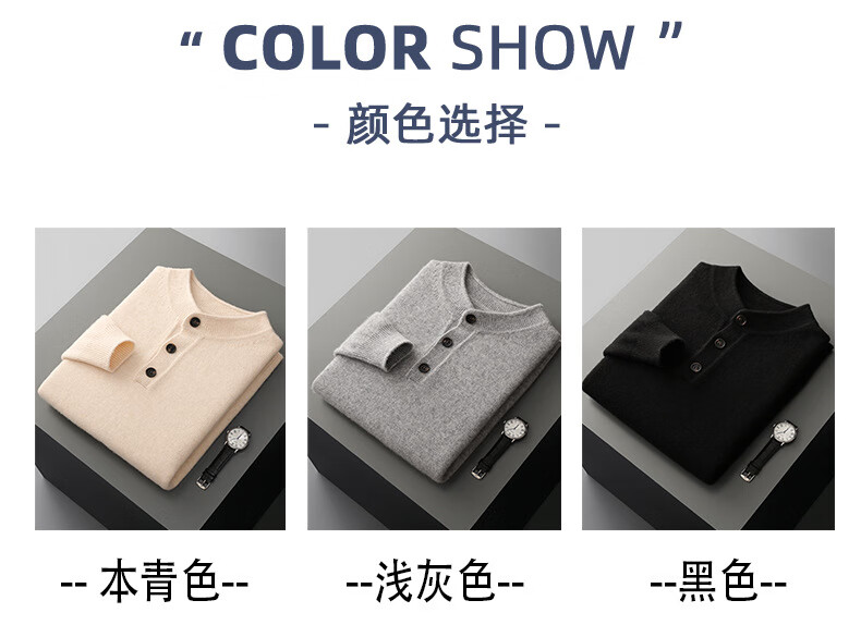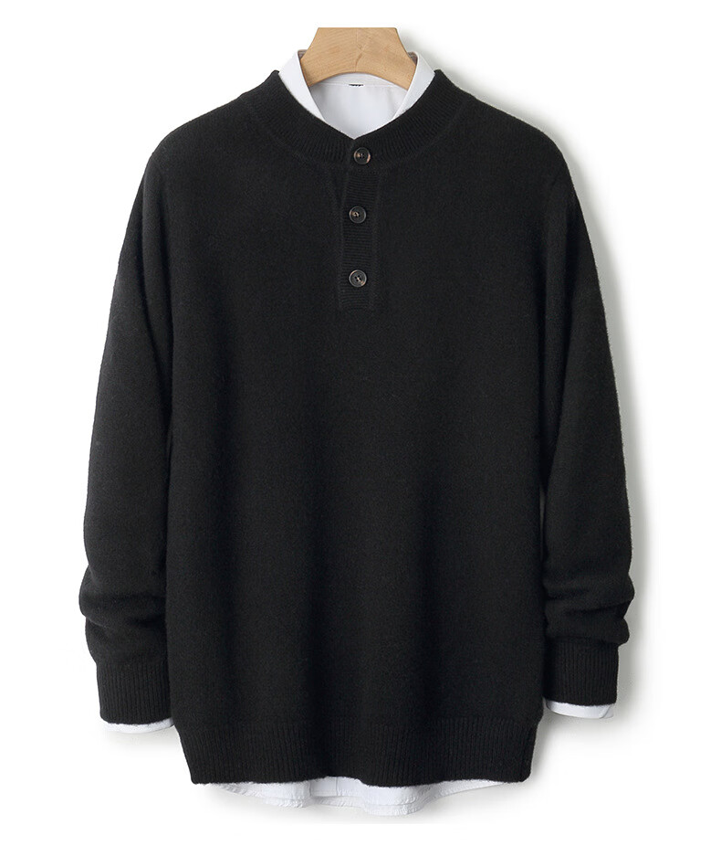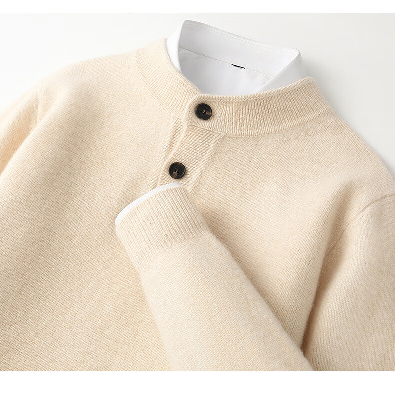 EMZ Ordos thickened Henry collar cardigan men's round neck half-buttoned autumn and winter bottoming shirt warm knitted top this blue S