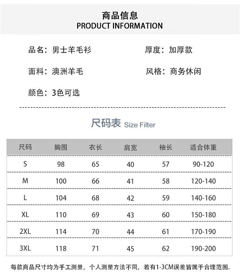 China (cm) 165 / 88-90 170 / 96-98 175 / 108-110 180 / 118-122 185 / 126-130
