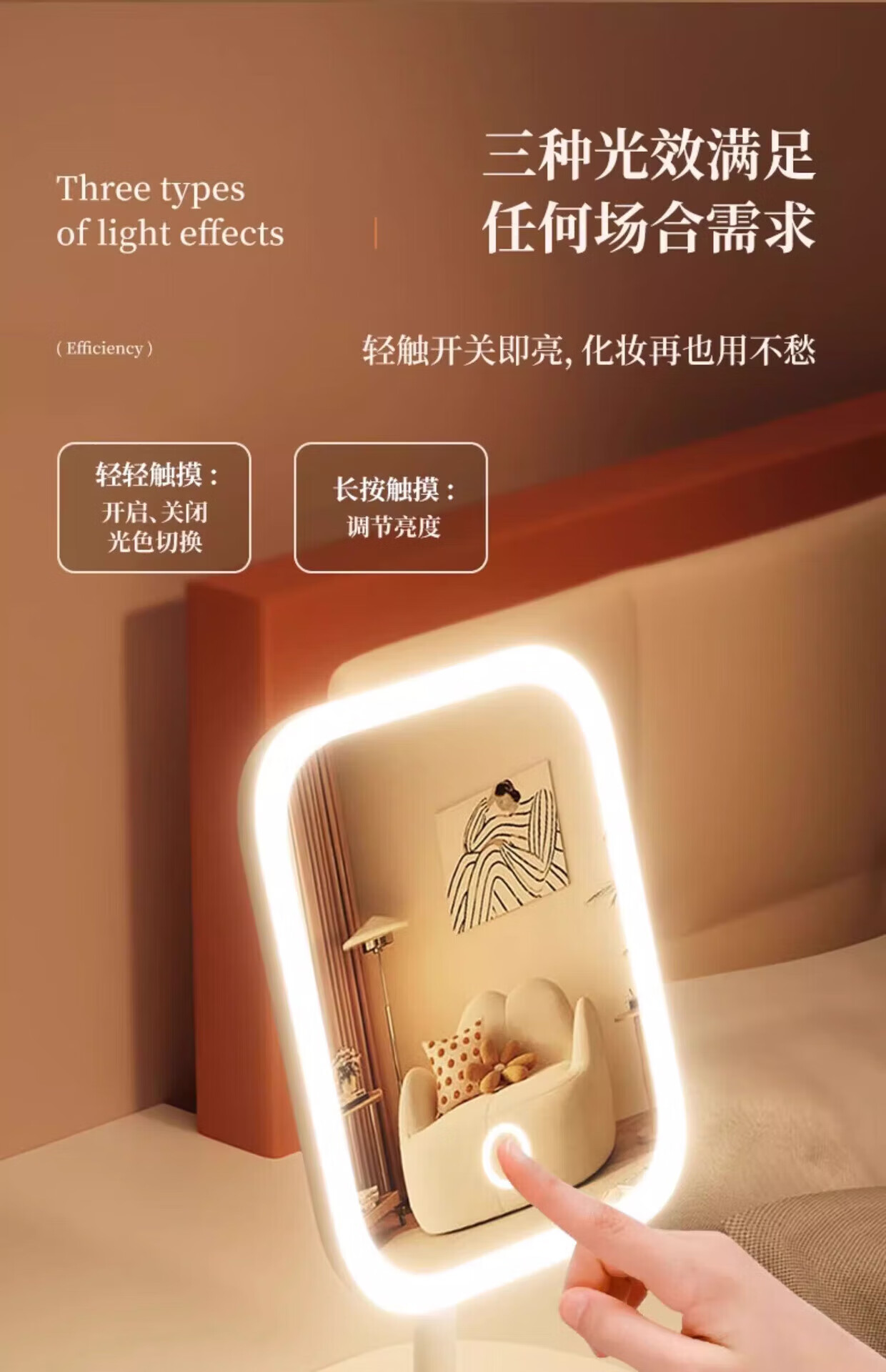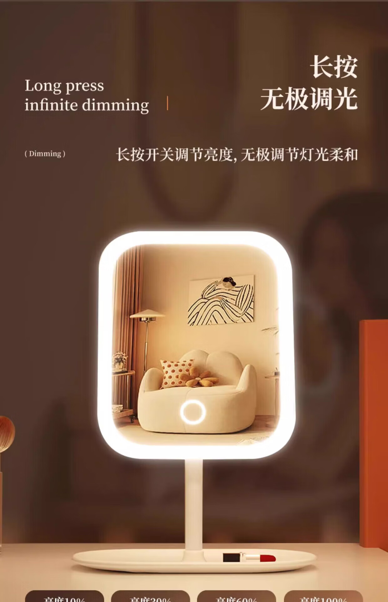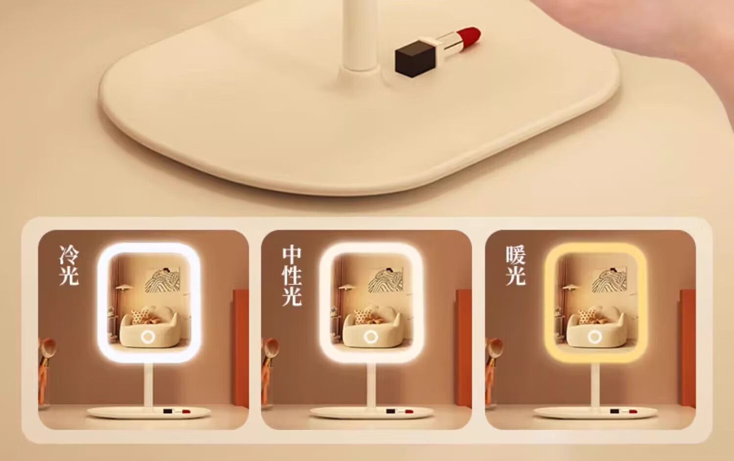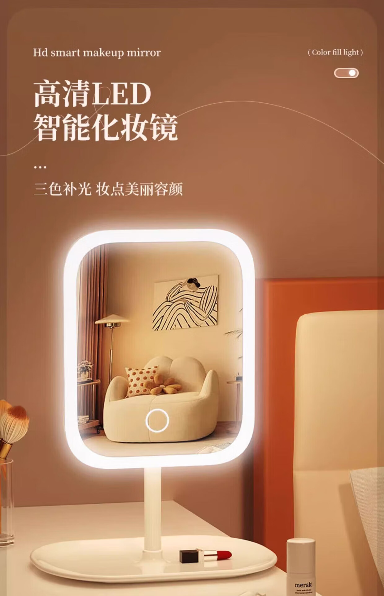 M Ecological Chain Series Same Style Makeup Mirror Portable Detachable LED Smart Luminous Lighted Makeup Beauty Mirror Desktop Beauty Makeup Mirror Desktop Fill-in Light Mirror Square Mirror White With Light Three Colors Three Gears/Clear Imaging