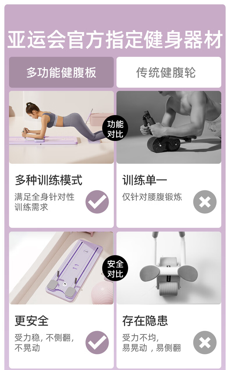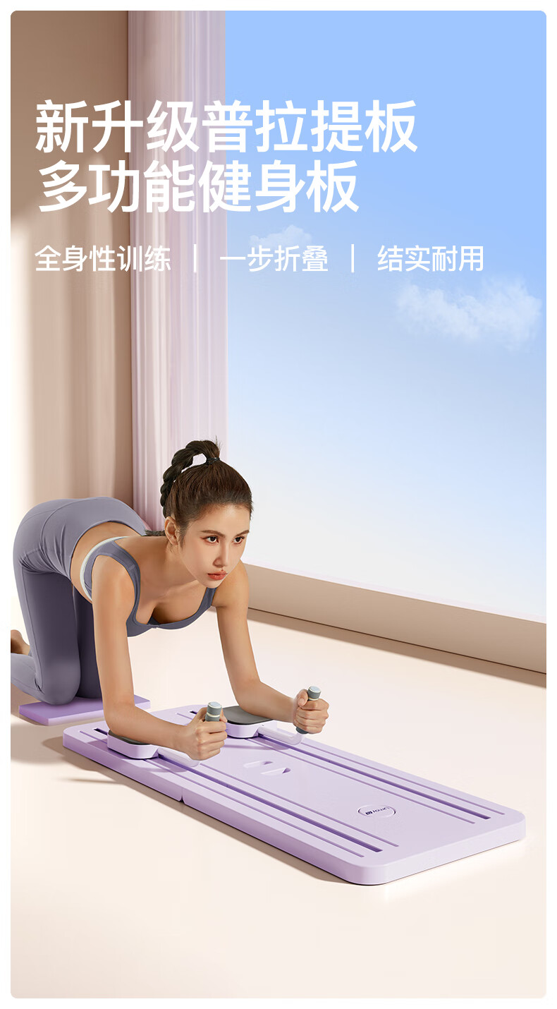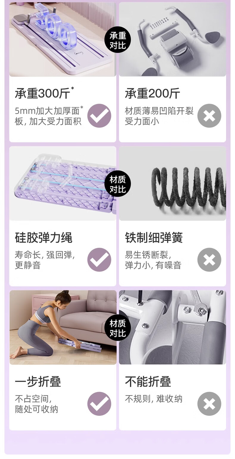 YOU MEI multifunctional fitness board, abdominal wheel, automatic rebound fitness equipment, Pilates board, second generation flagship model - hibiscus purple, upgraded tension rope + flat support grip, fast