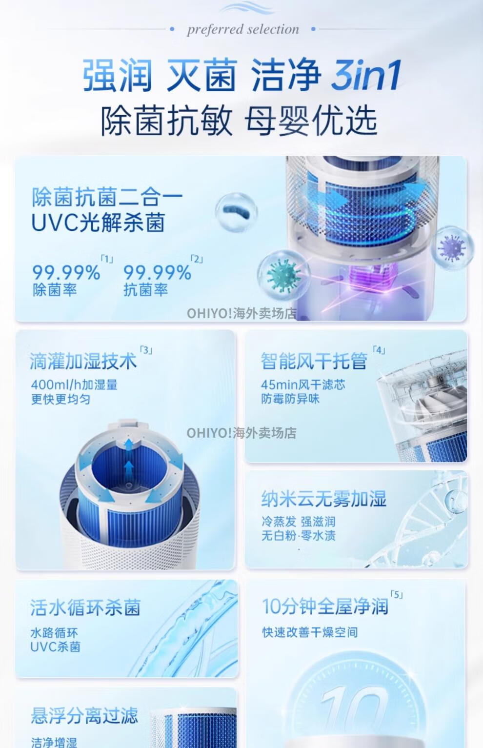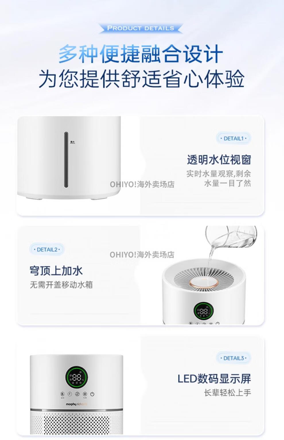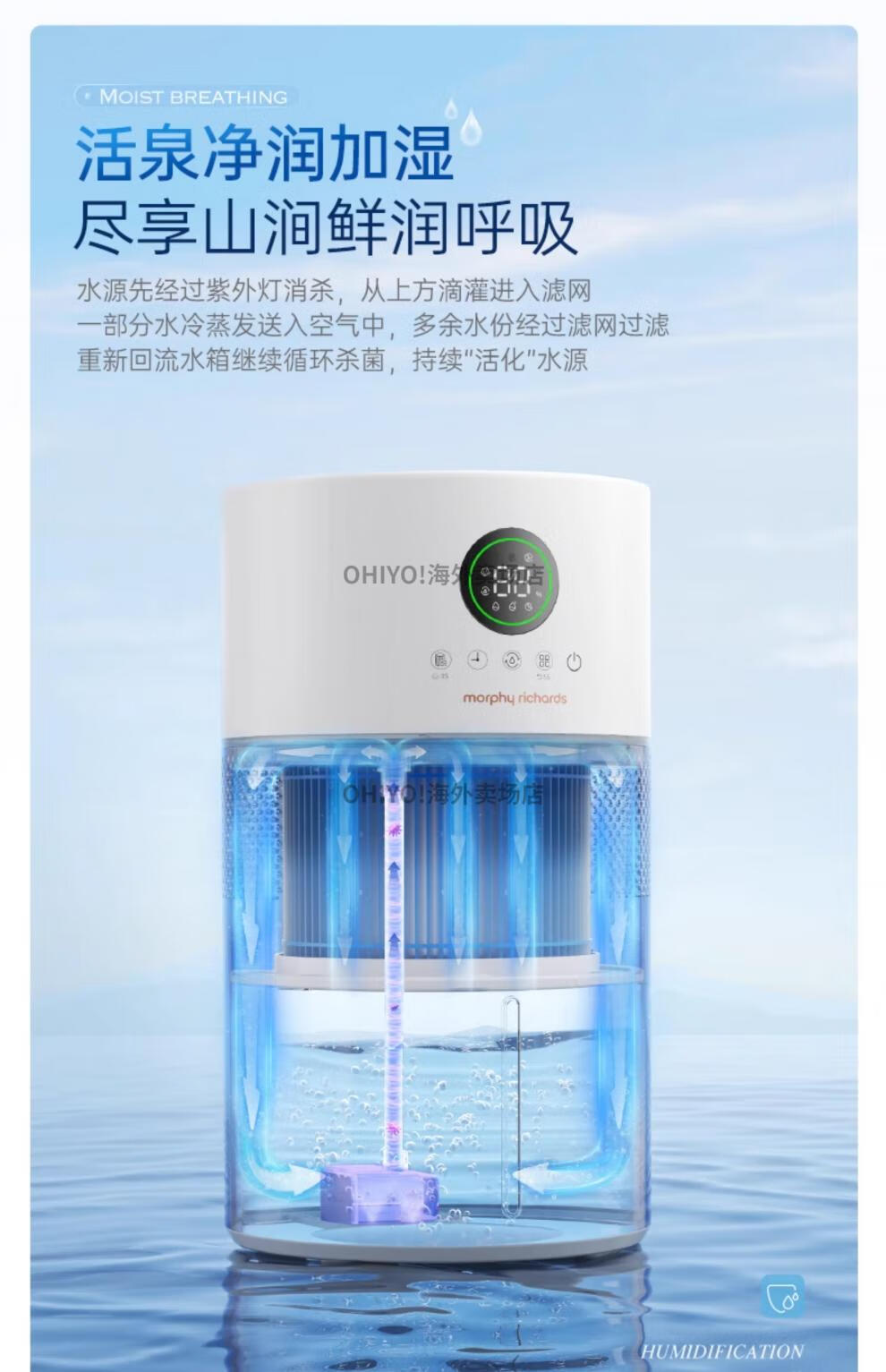Morphyrichards mist-free humidifier light sound bedroom pregnant women and infants cold evaporation mist-free antibacterial and sterilizing air humidifier white